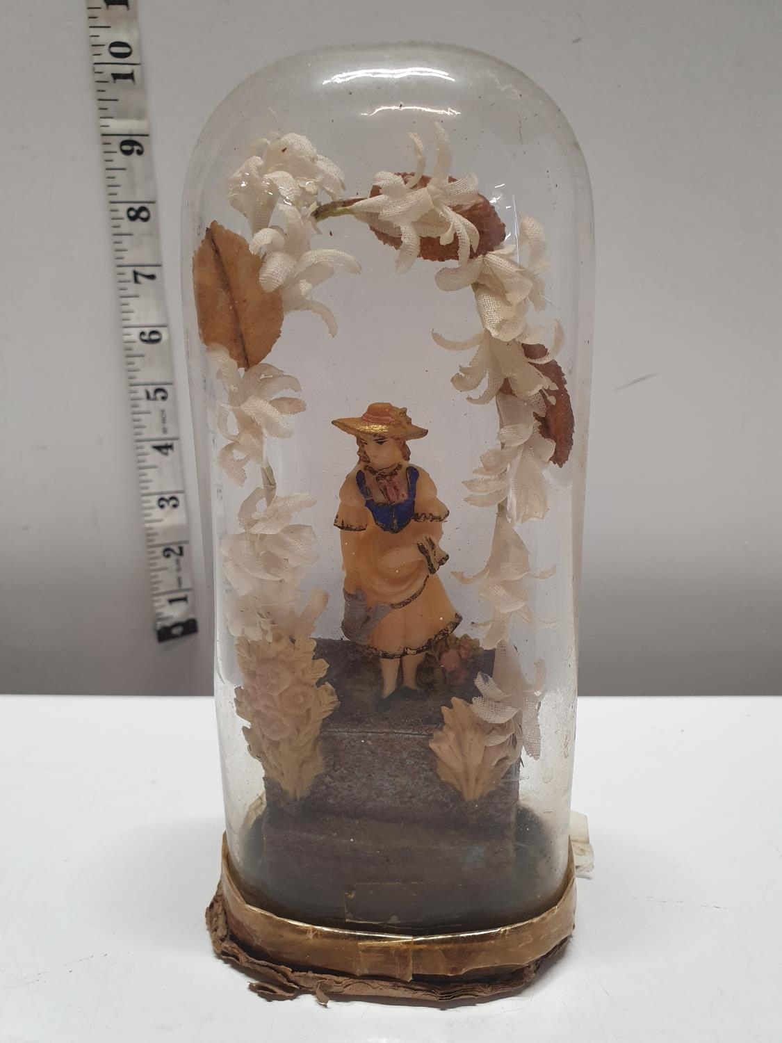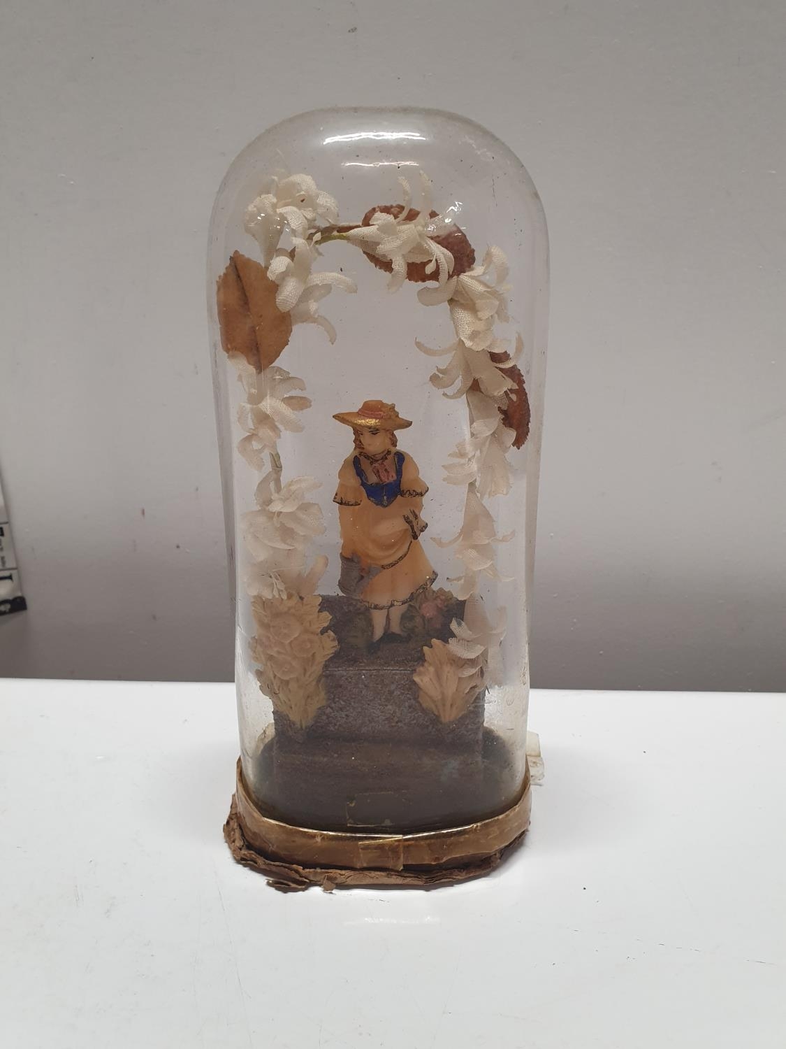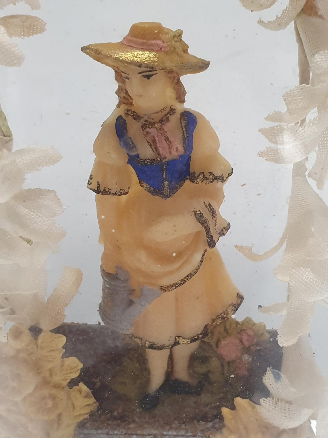 A French salt dough figure circa 1800 in glass dome