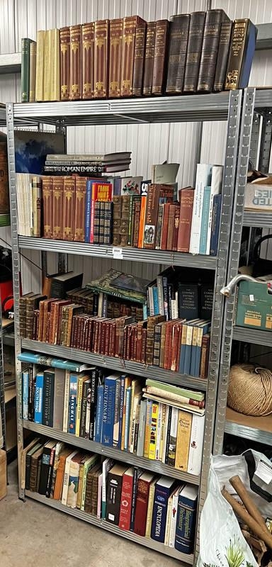 VARIOUS BOOKS TO INCLUDE VARIOUS CHARLES DICKENS, HAMLET ETC, ENCYCLOPEDIAS, RUSKINS HARBOURS ETC OVER ONE SHELVING UNIT
