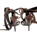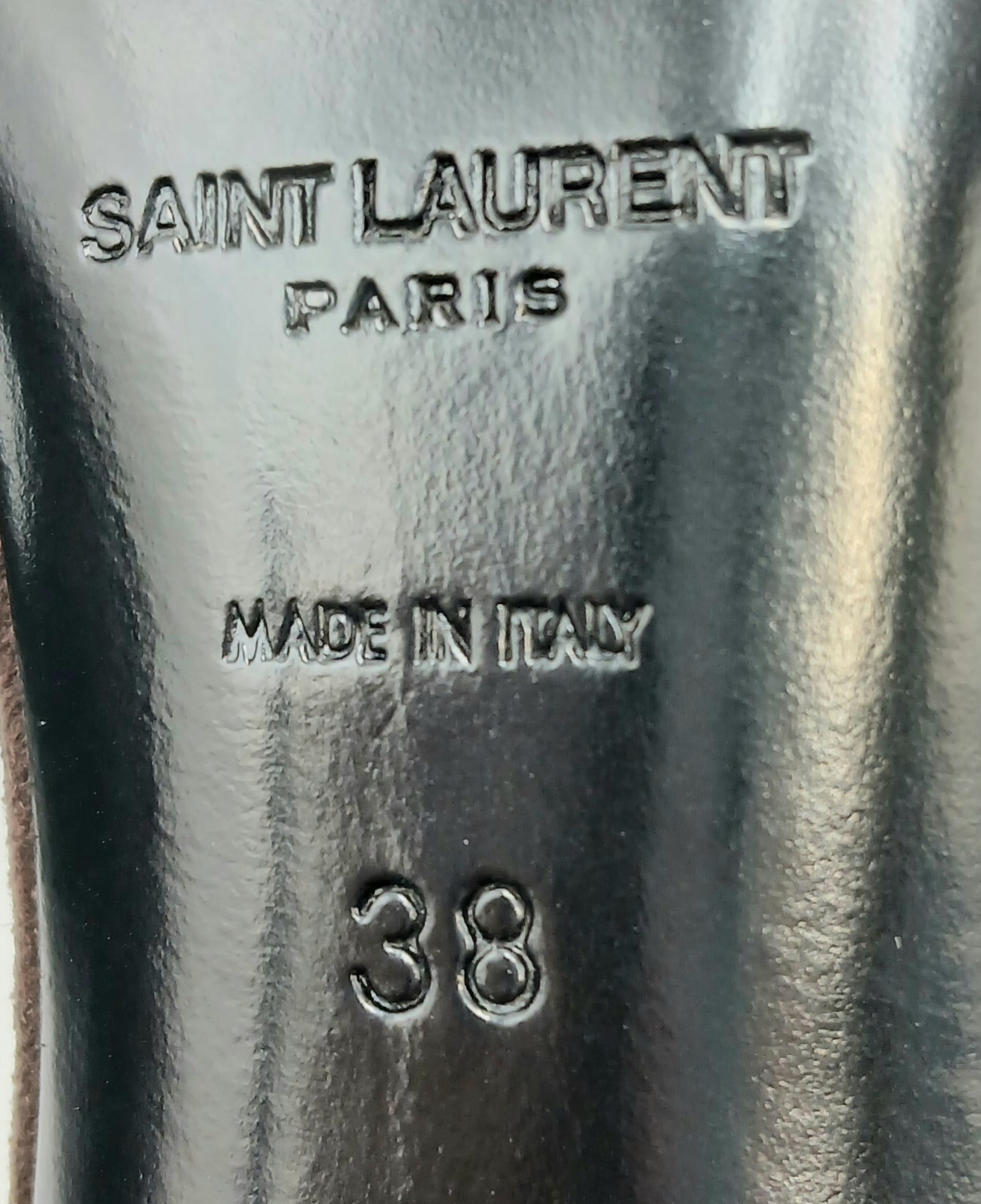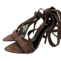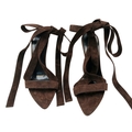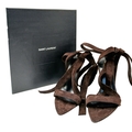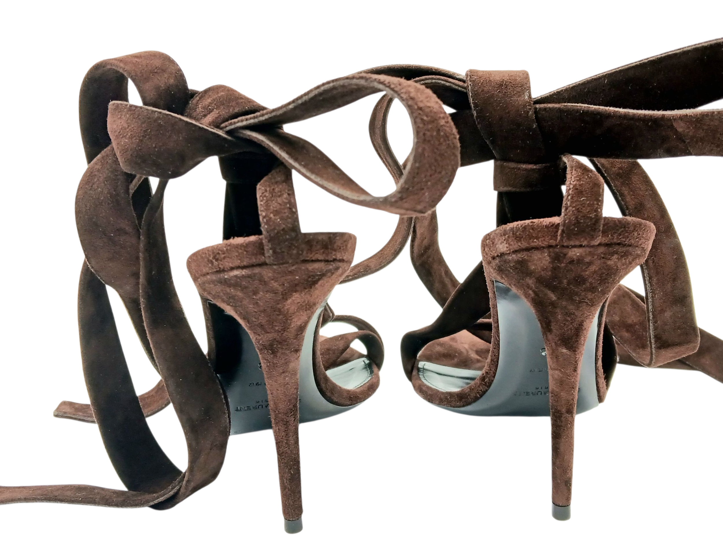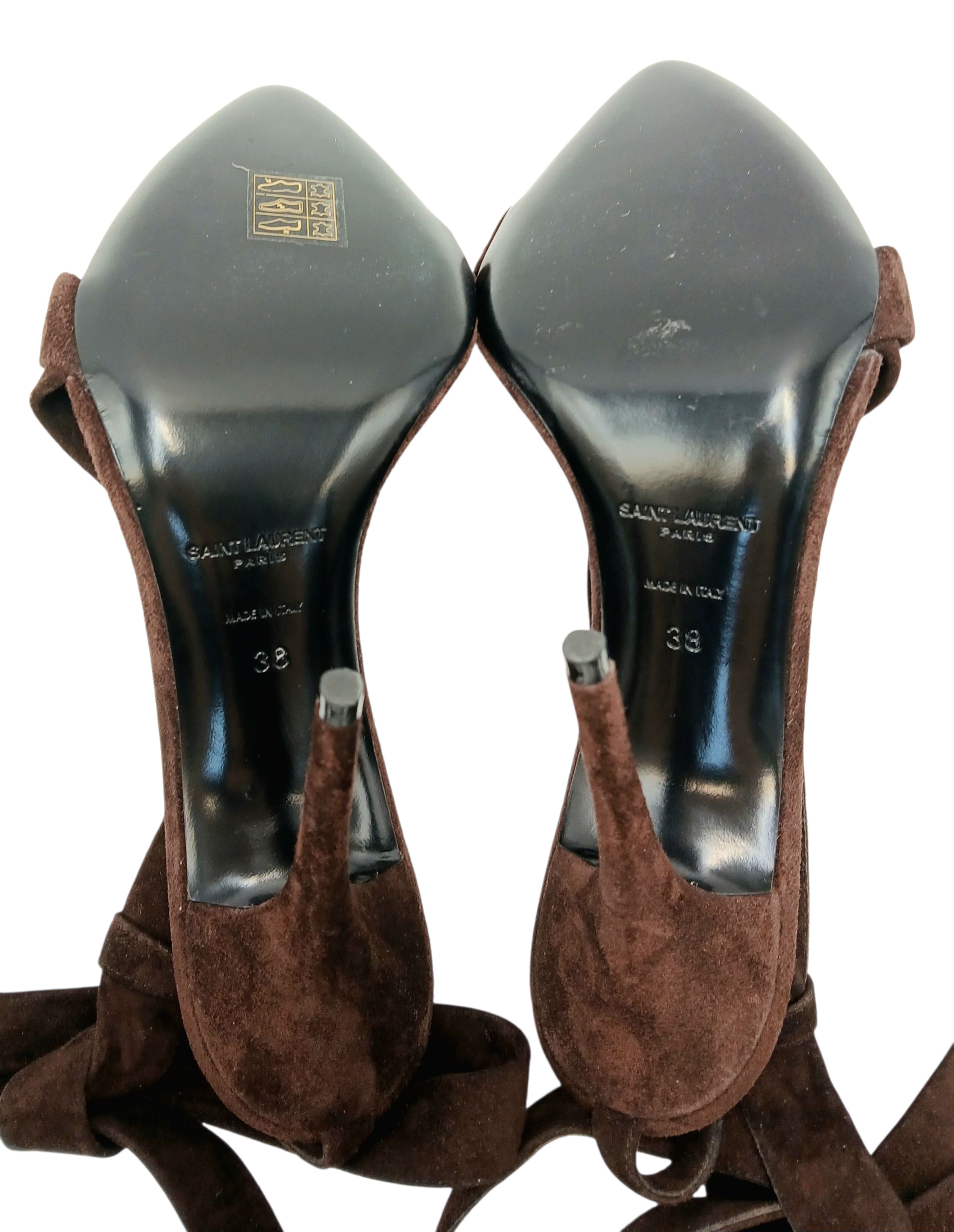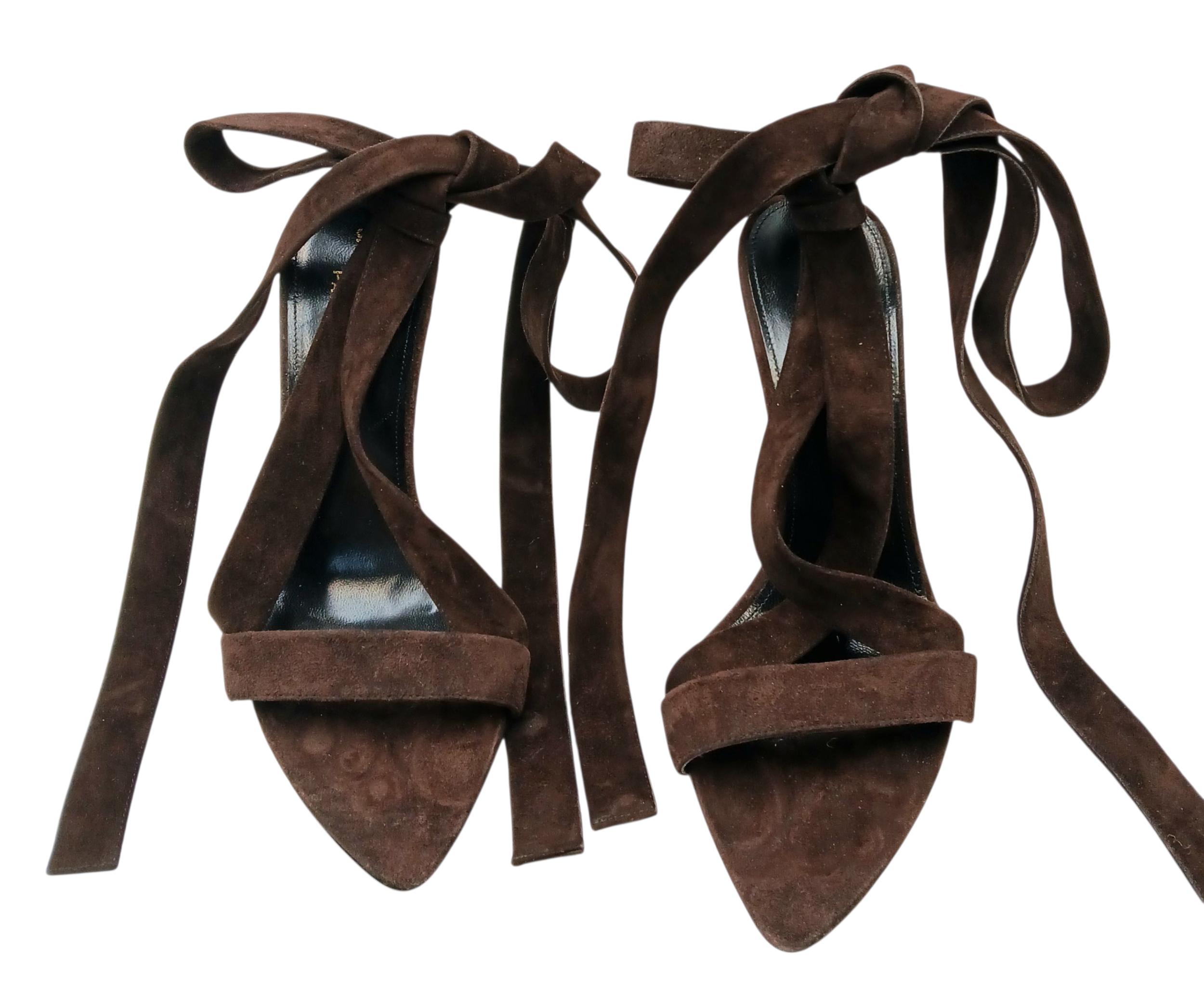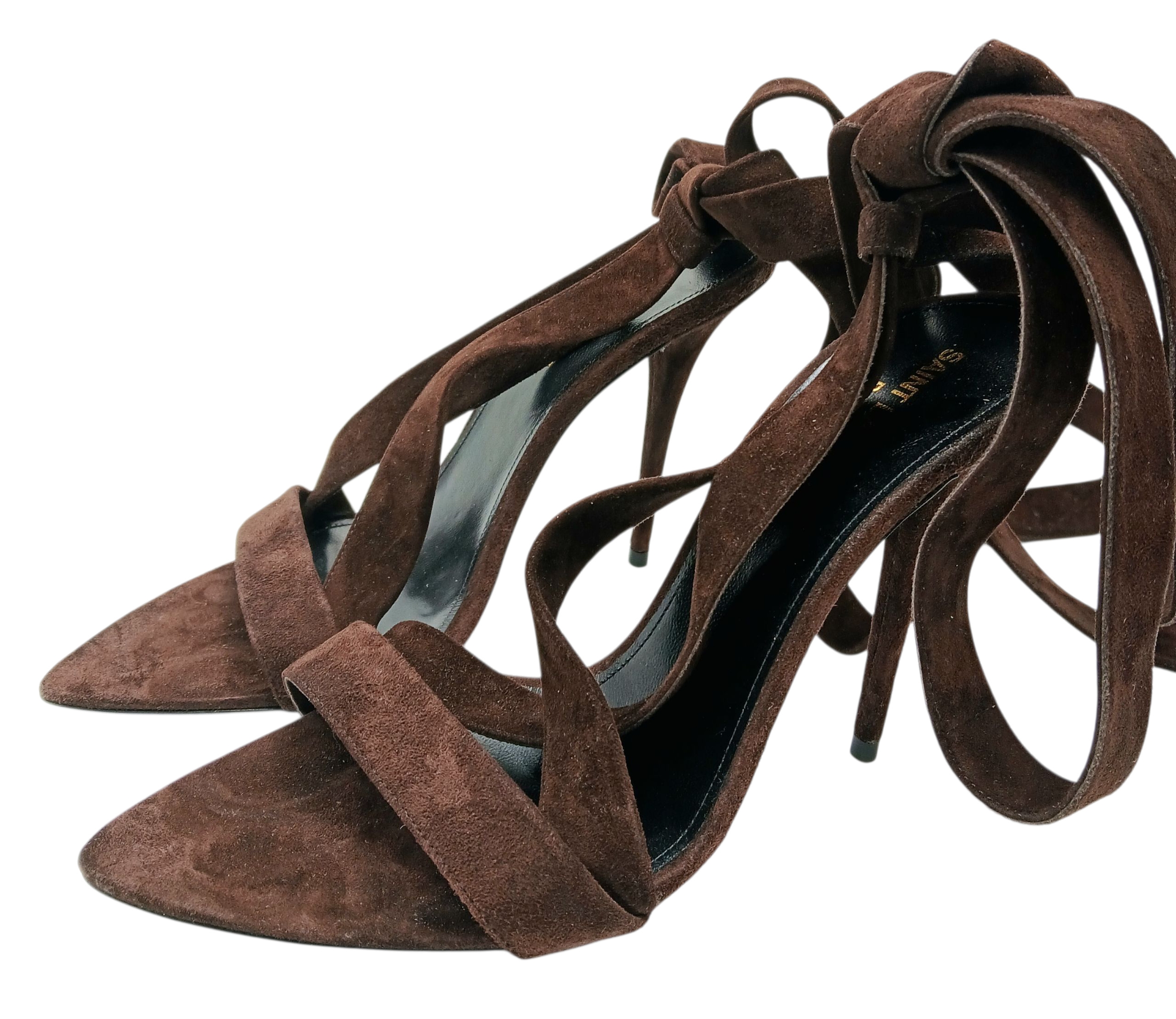 A pair of YSL pointed-toe leather Deva high heels in rich dark brown suede and elongated straps. Size 38/UK size 5. Comes with full original packaging. Ref J270