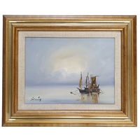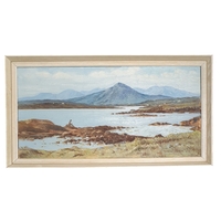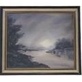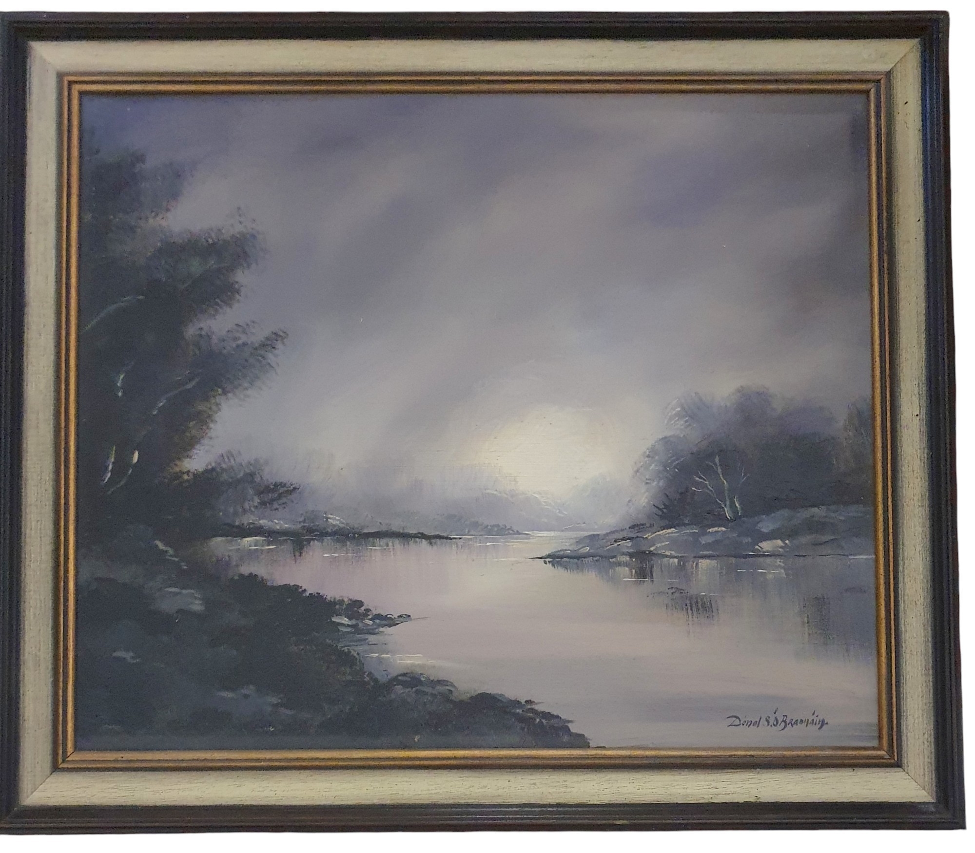 Donal O'Braonain (Irish) a 20th Century Oil on Canvas of a river and lake scene. Signed LR. 29 x 61 cm approx.