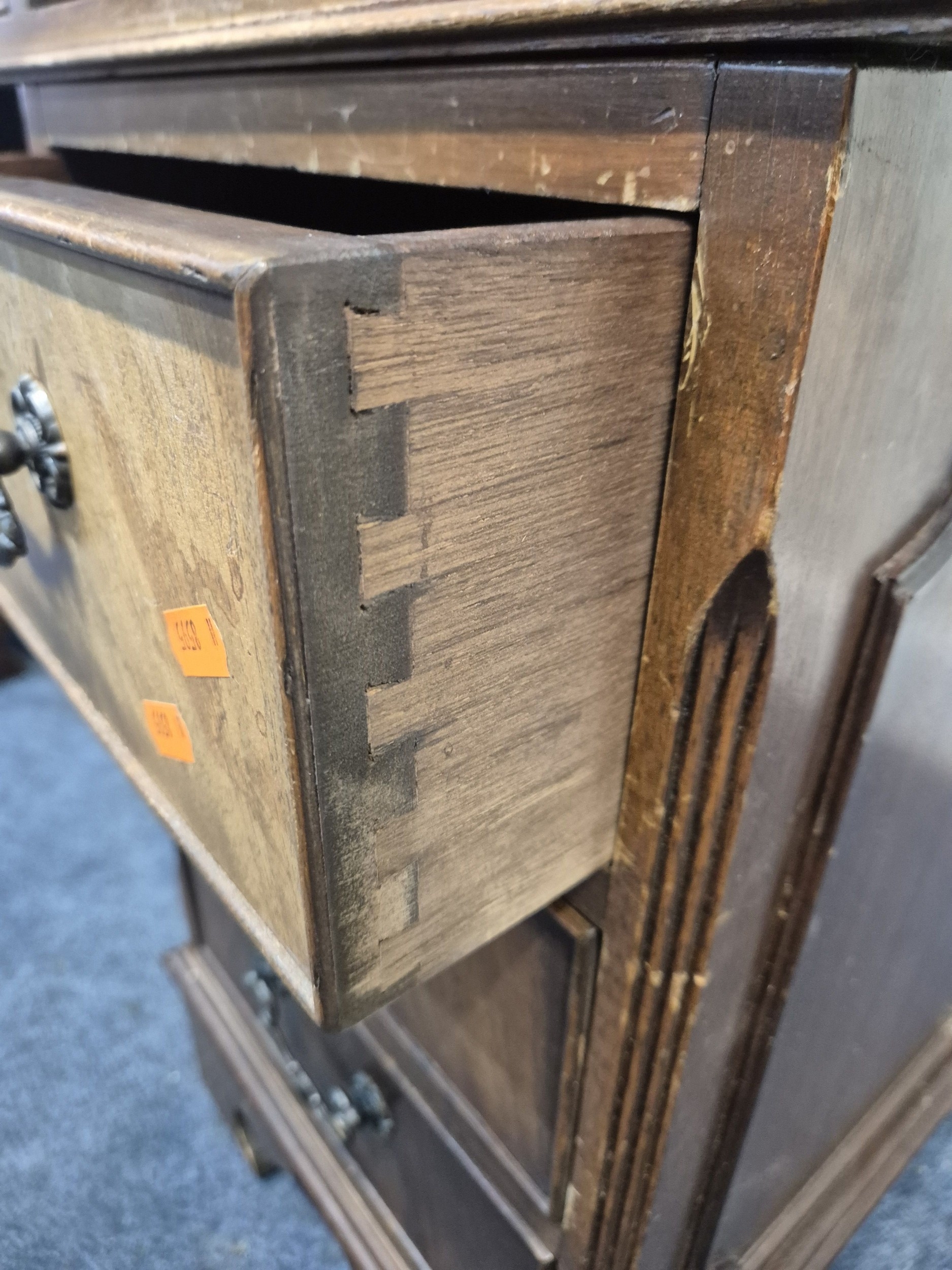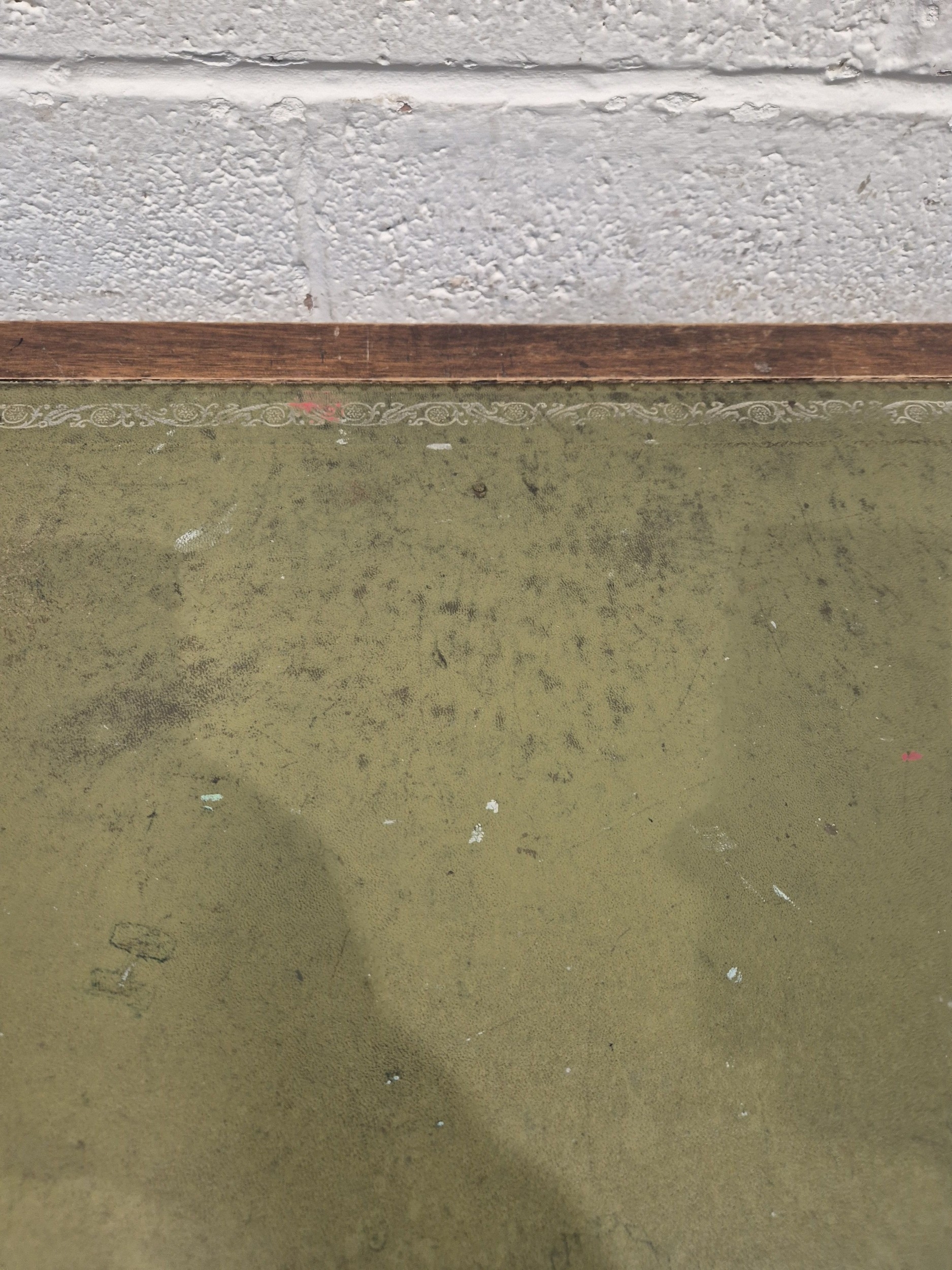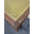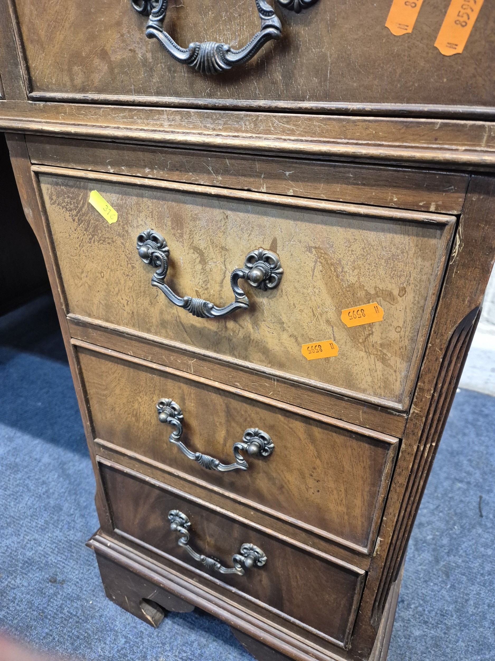 A 20TH CENTURY MAHOGANY TWIN PEDESTAL DESK, with a green leather writing surface, fitted with nine assorted drawers, raised on bracket feet, width 137cm x depth 77cm x height 77cm, condition report: marks, scuffs, stains, discolouration, other wear and usage (3 sections)