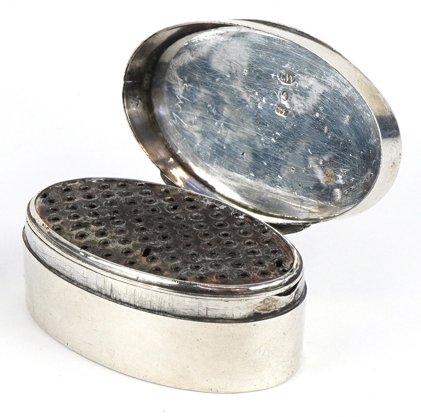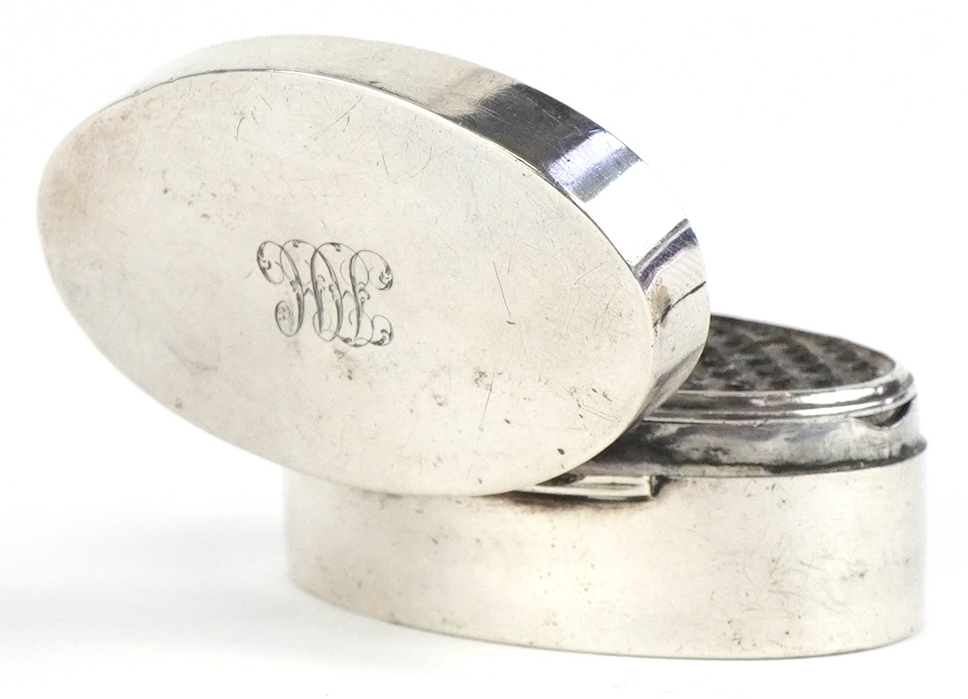 A George II silver nutmeg grater, possibly Thomas Willmore, 5cm wide, 36.7g.