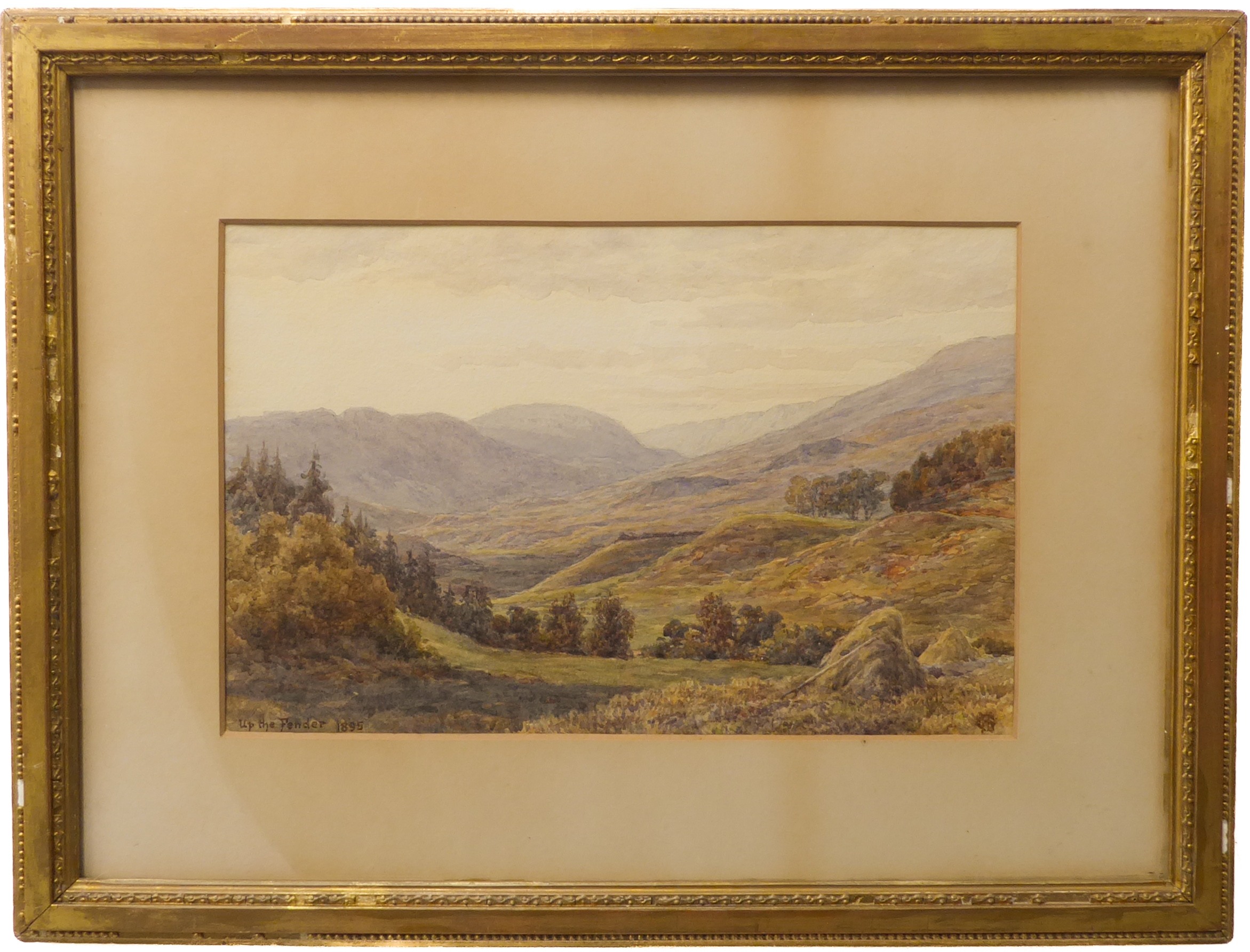 19th century English School - 'Up the Fender', watercolour, monogrammed HG lower right, signed, inscribed and dated 1895 (7½ x 11¾in;19 x 30cm). Faded, otherwise good condition