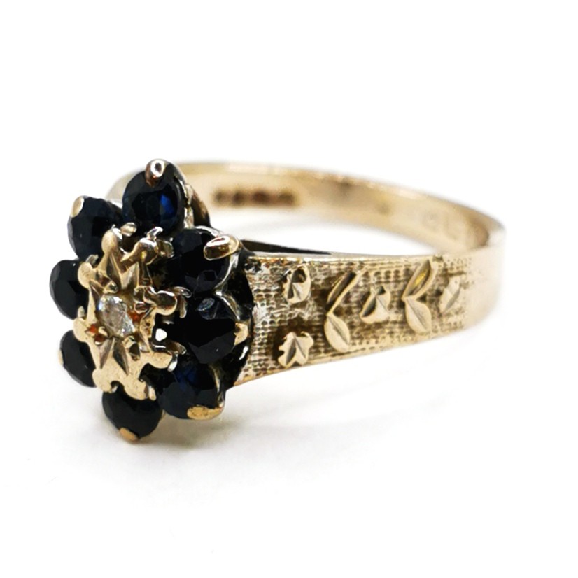 18ct hallmarked white gold sapphire (8) & diamond ring - size M½ & 4.5g total weight