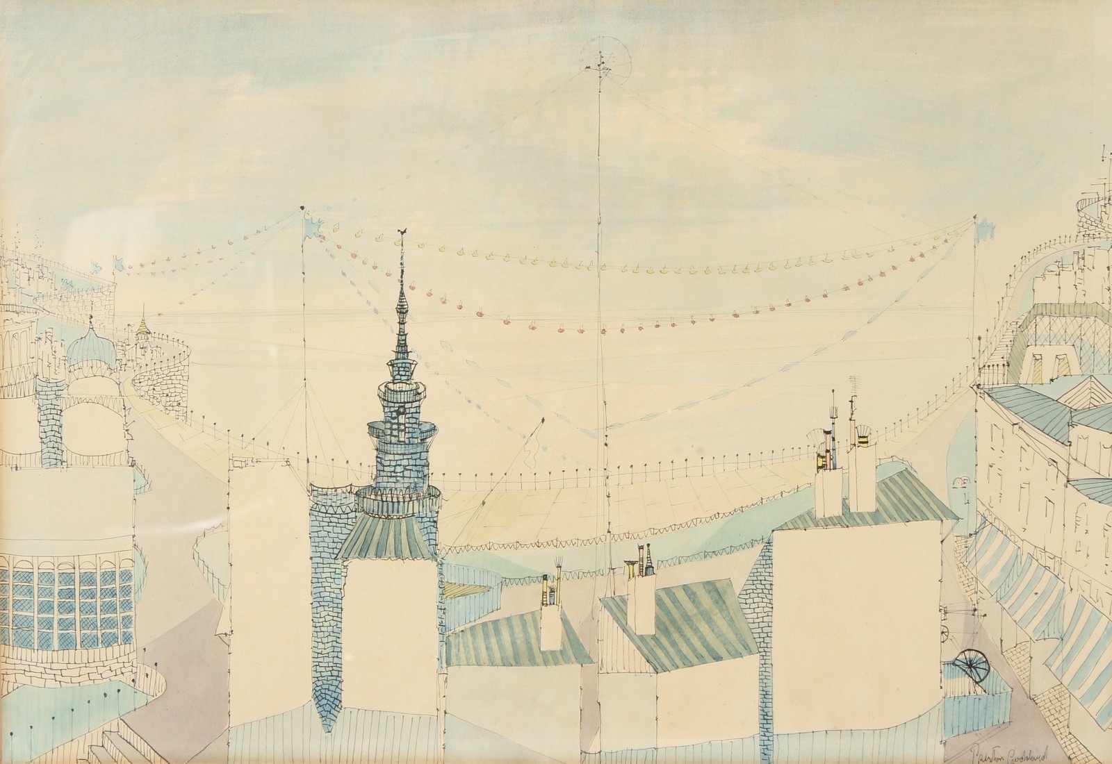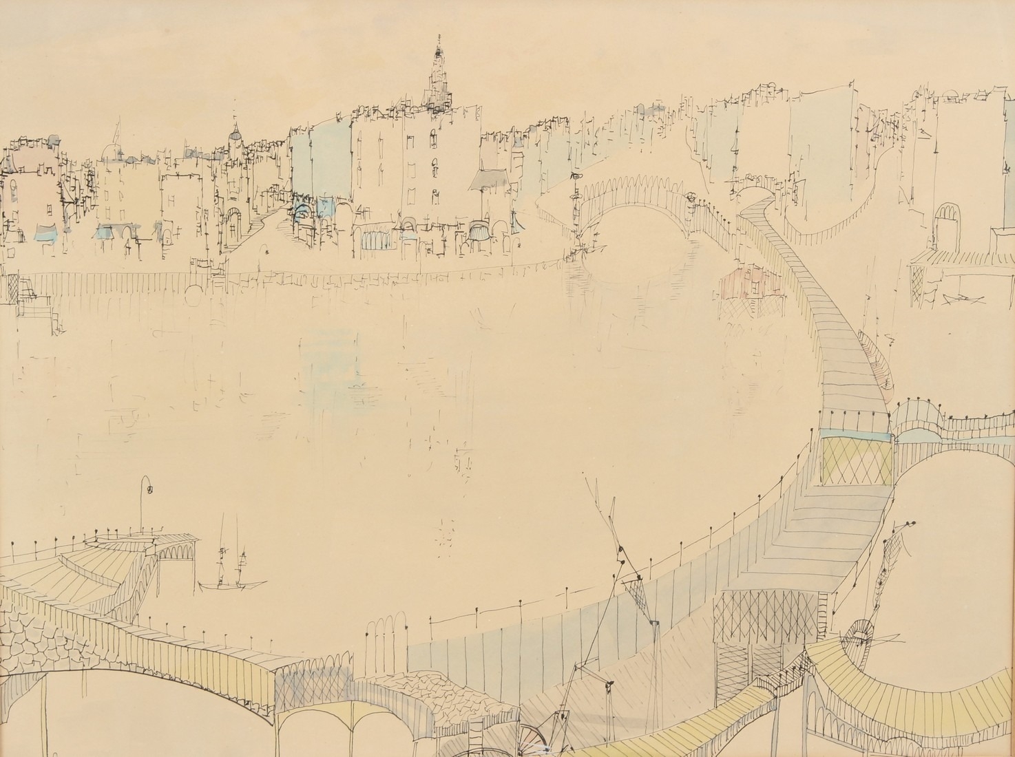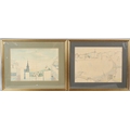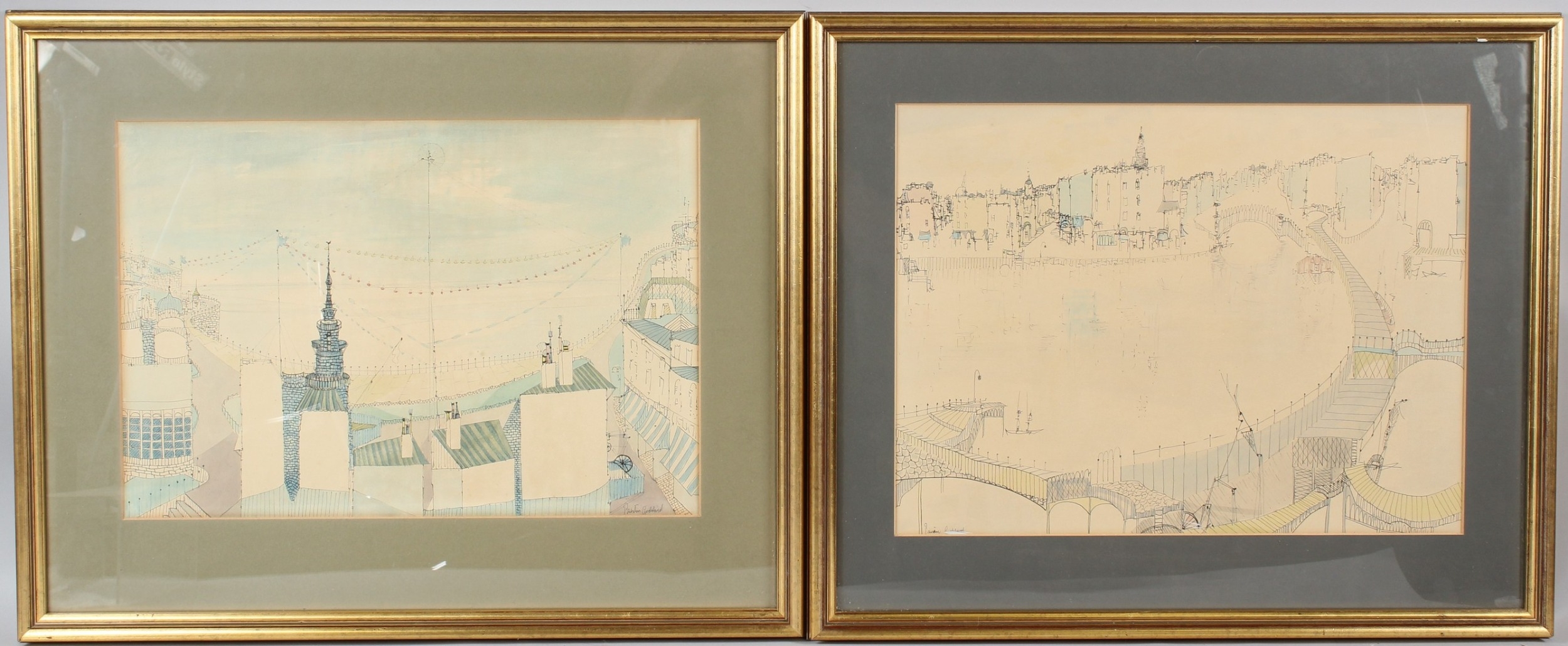 PRESTON GODDARD (1928-2009) Harbour view and another coastal scene two ink and wash drawings both signed 33 x 43.5cm and 30 x 44cm (2)