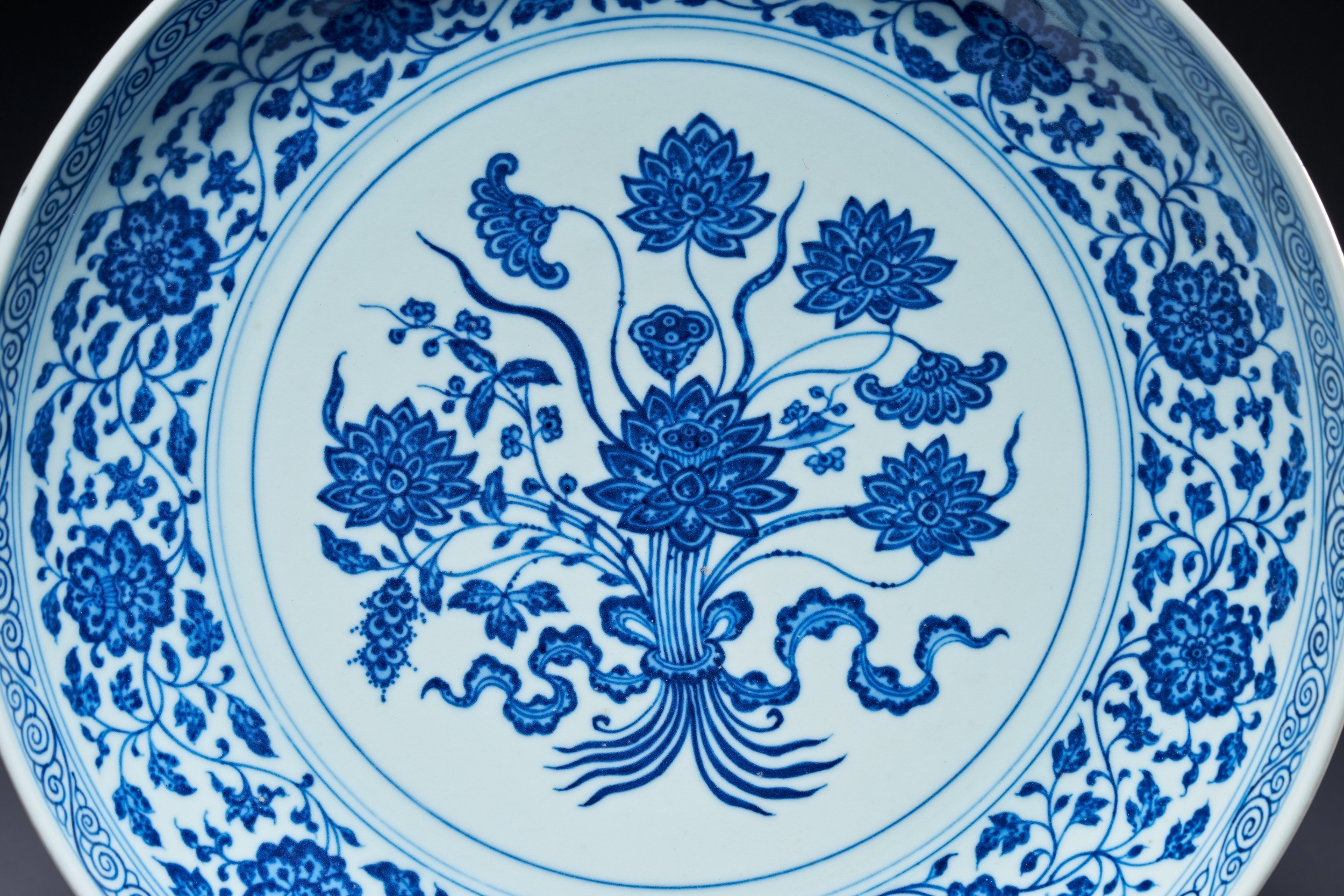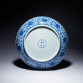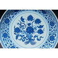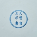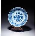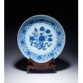 A MING-STYLE BLUE AND WHITE LOTUS BOUQUET DISH, YONGZHENG MARK AND PERIOD