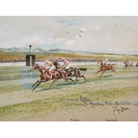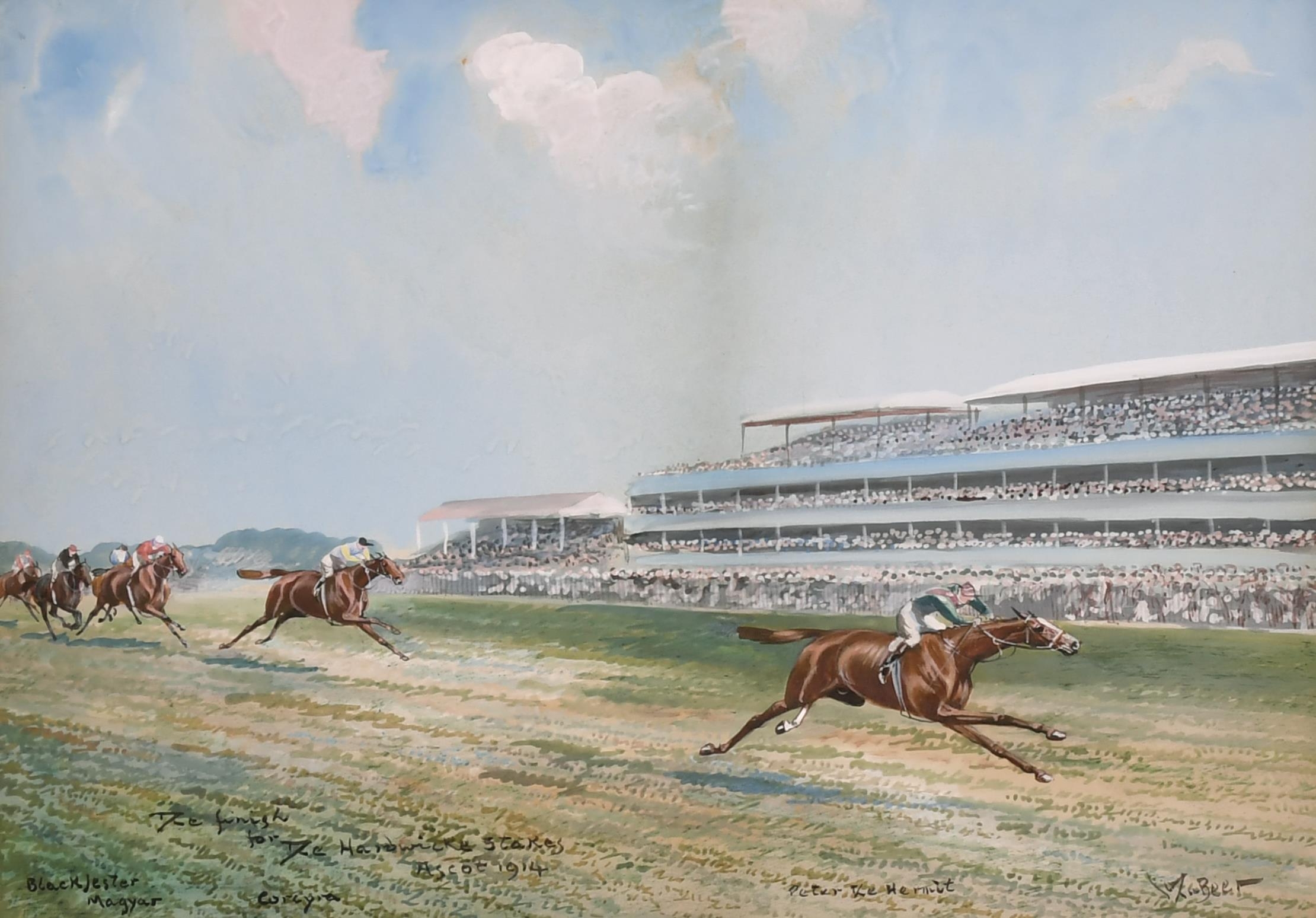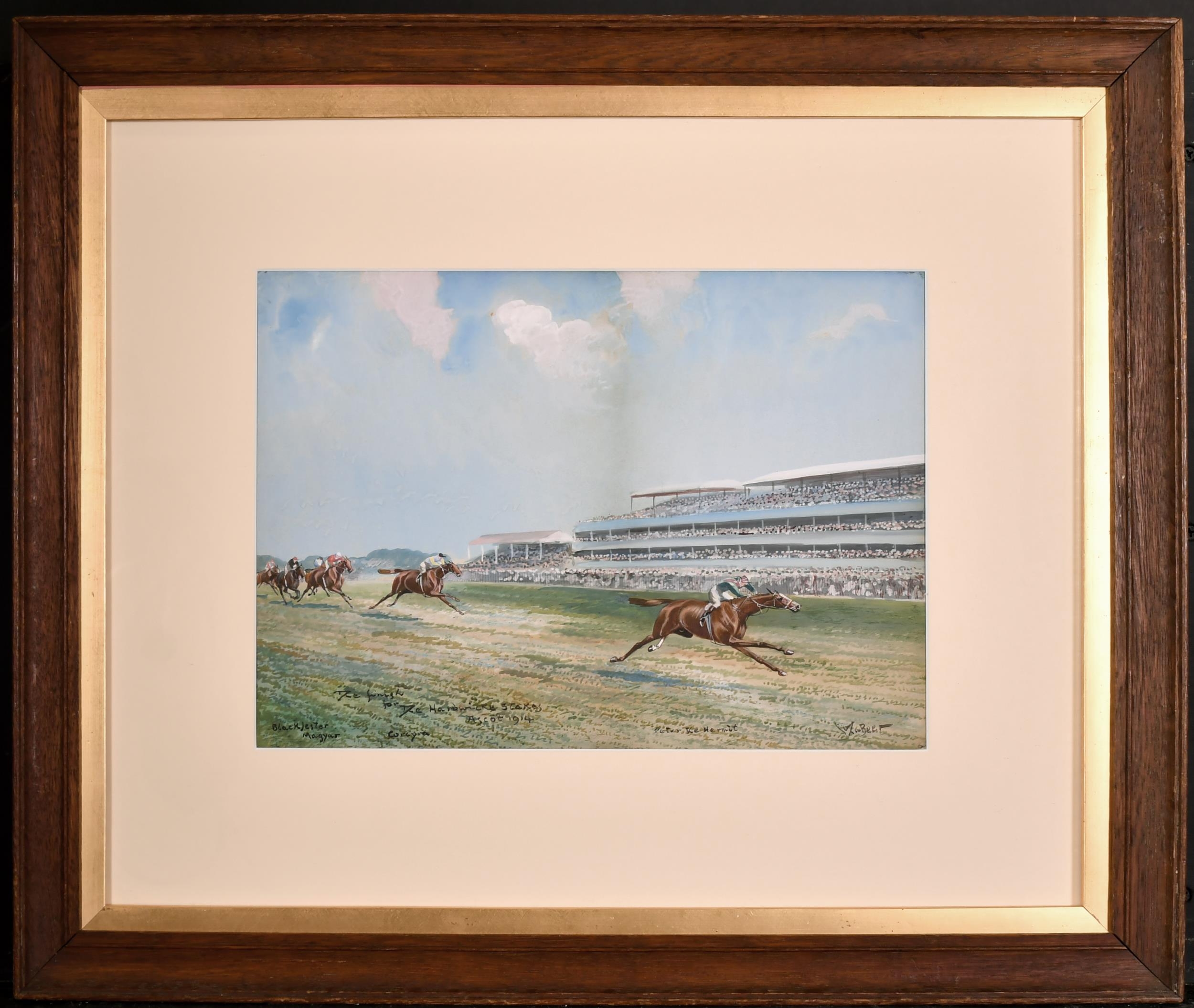 John Beer (c.1860-c.1930) British. "The Finish, for The Hardwicke Stakes, Ascot, 1914", Watercolour, Signed, and Inscribed, 9.75" x 13.75" (24.7 x 34.8cm)