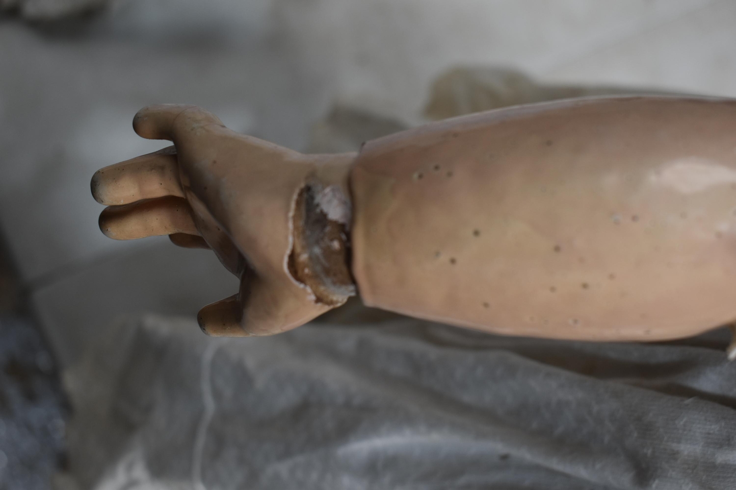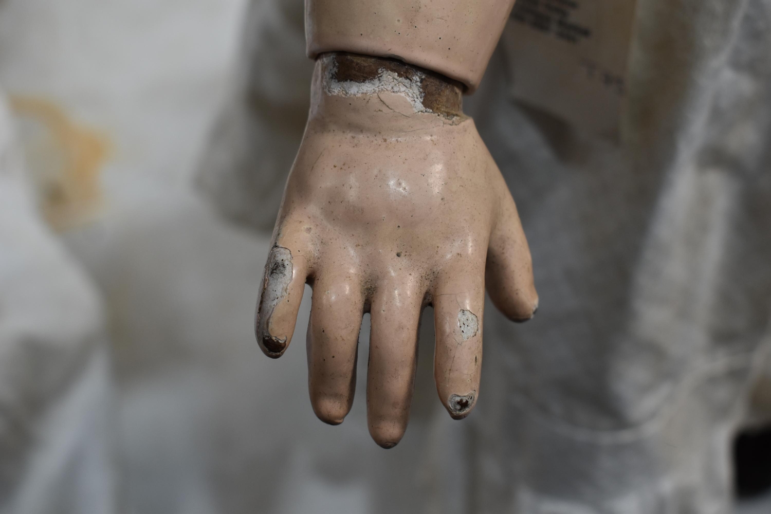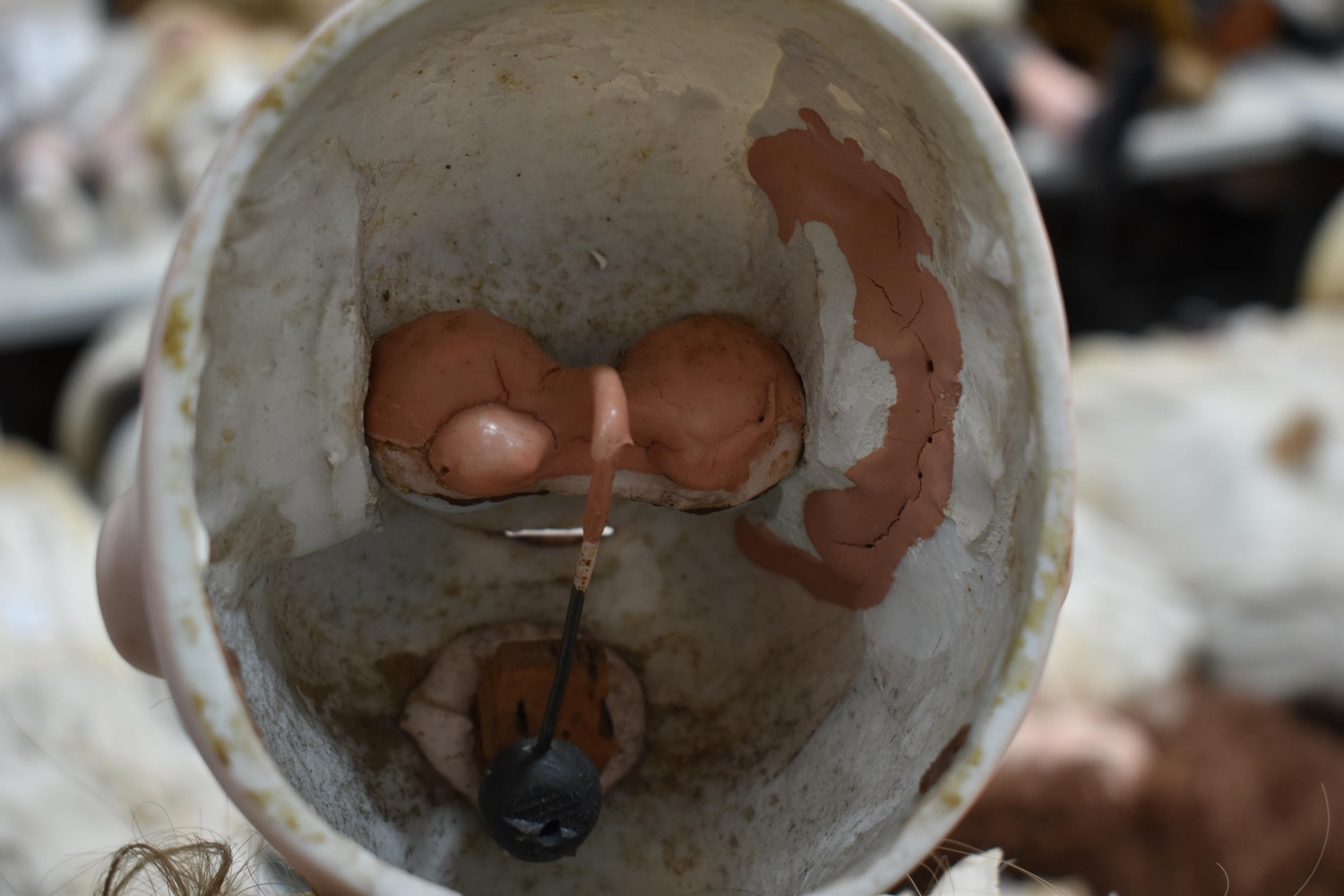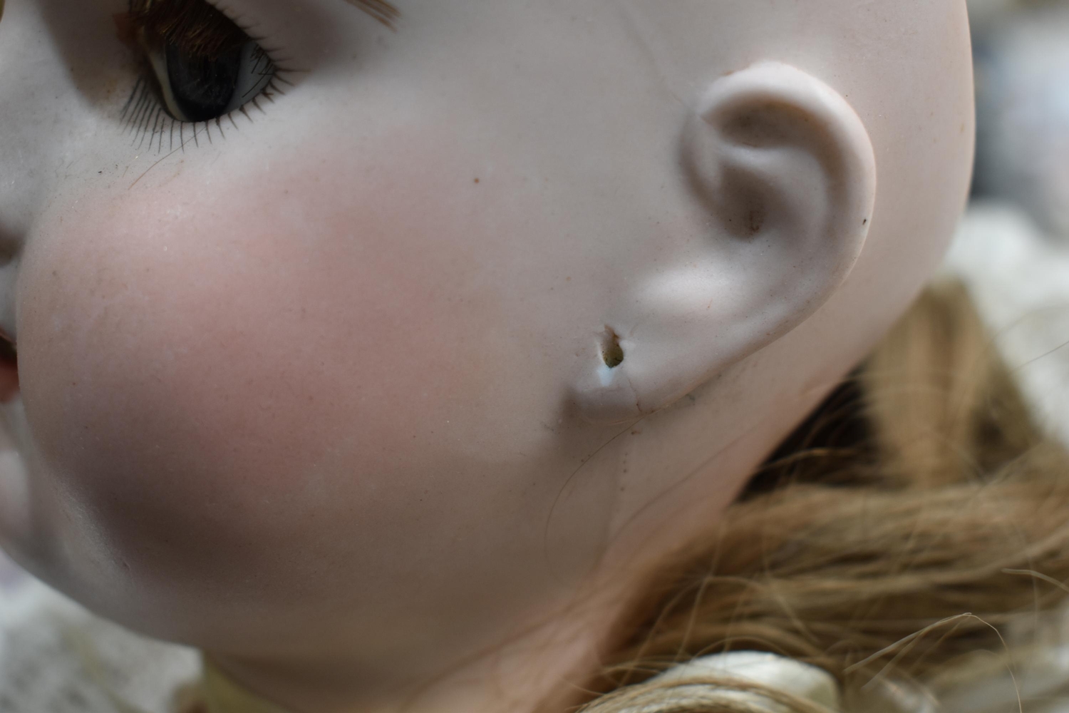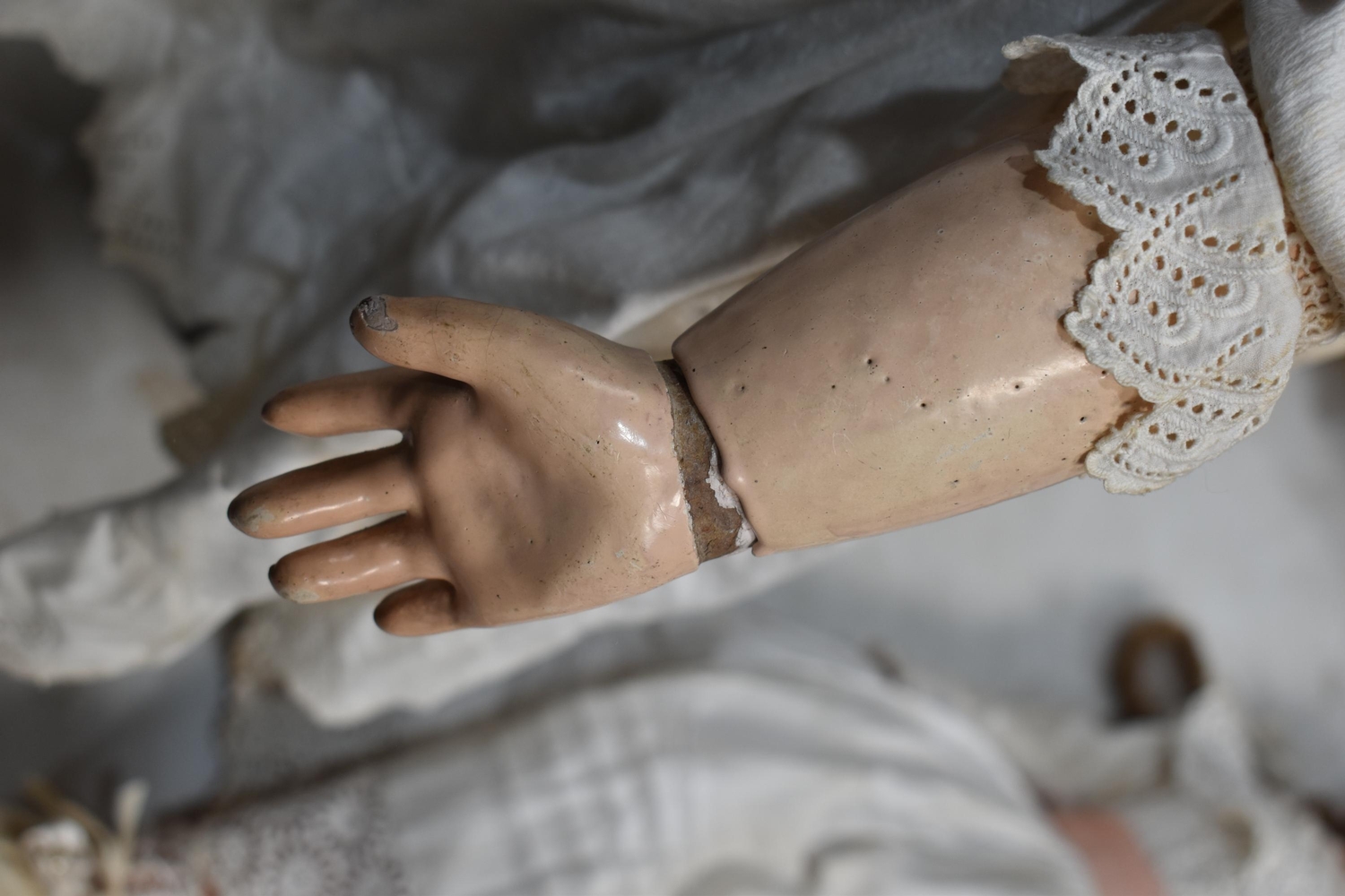 An Etienne Denamur Depose bisque porcelain head bebe companion doll, no. 13, with composition body and articulated limbs 73cm tall.