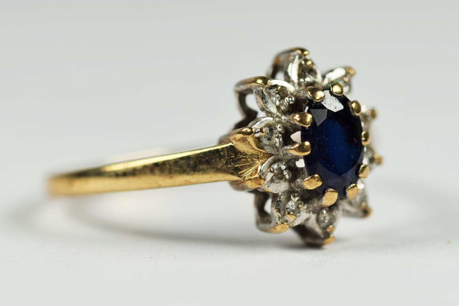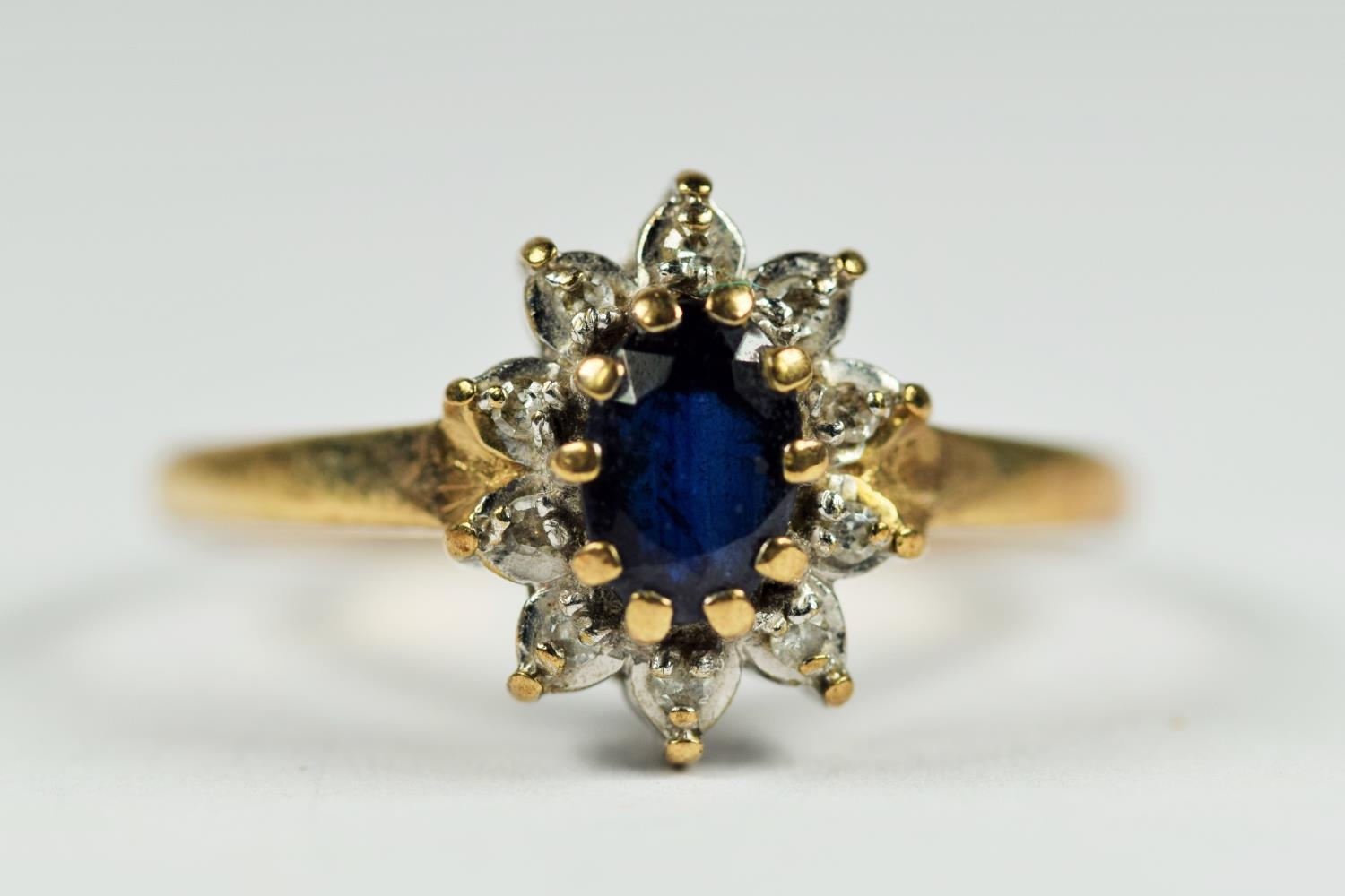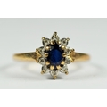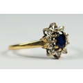 9ct white and yellow gold diamond and sapphire oval halo cluster dress ring (1.6g) 2041305
