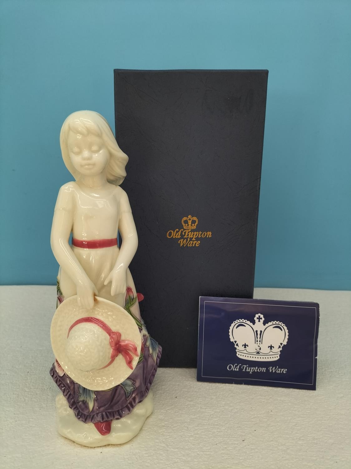 Boxed Old Tupton Ware Tubelined 22cm Figure of a Girl with Hat in the Hibiscus Pattern TW1258.