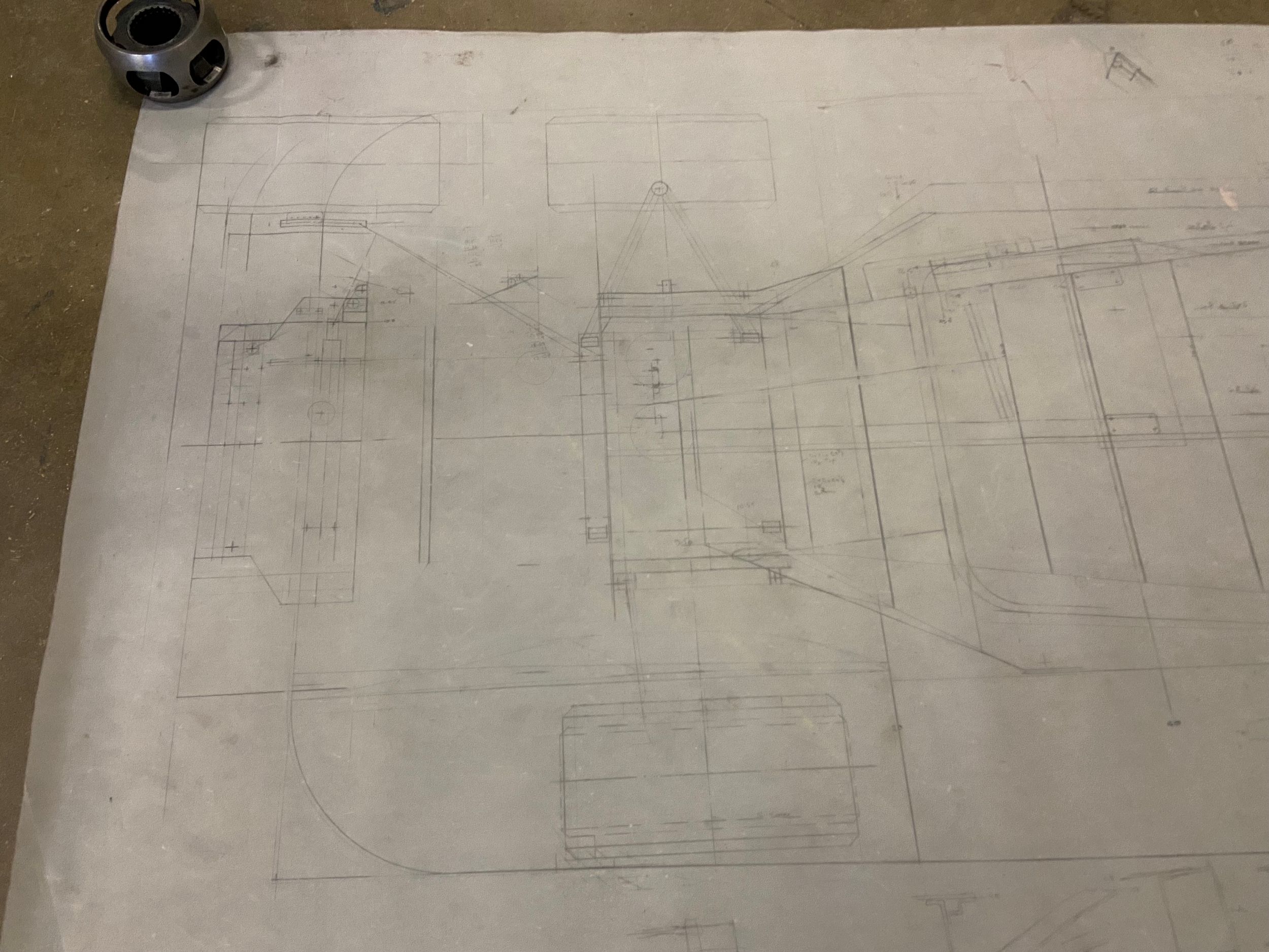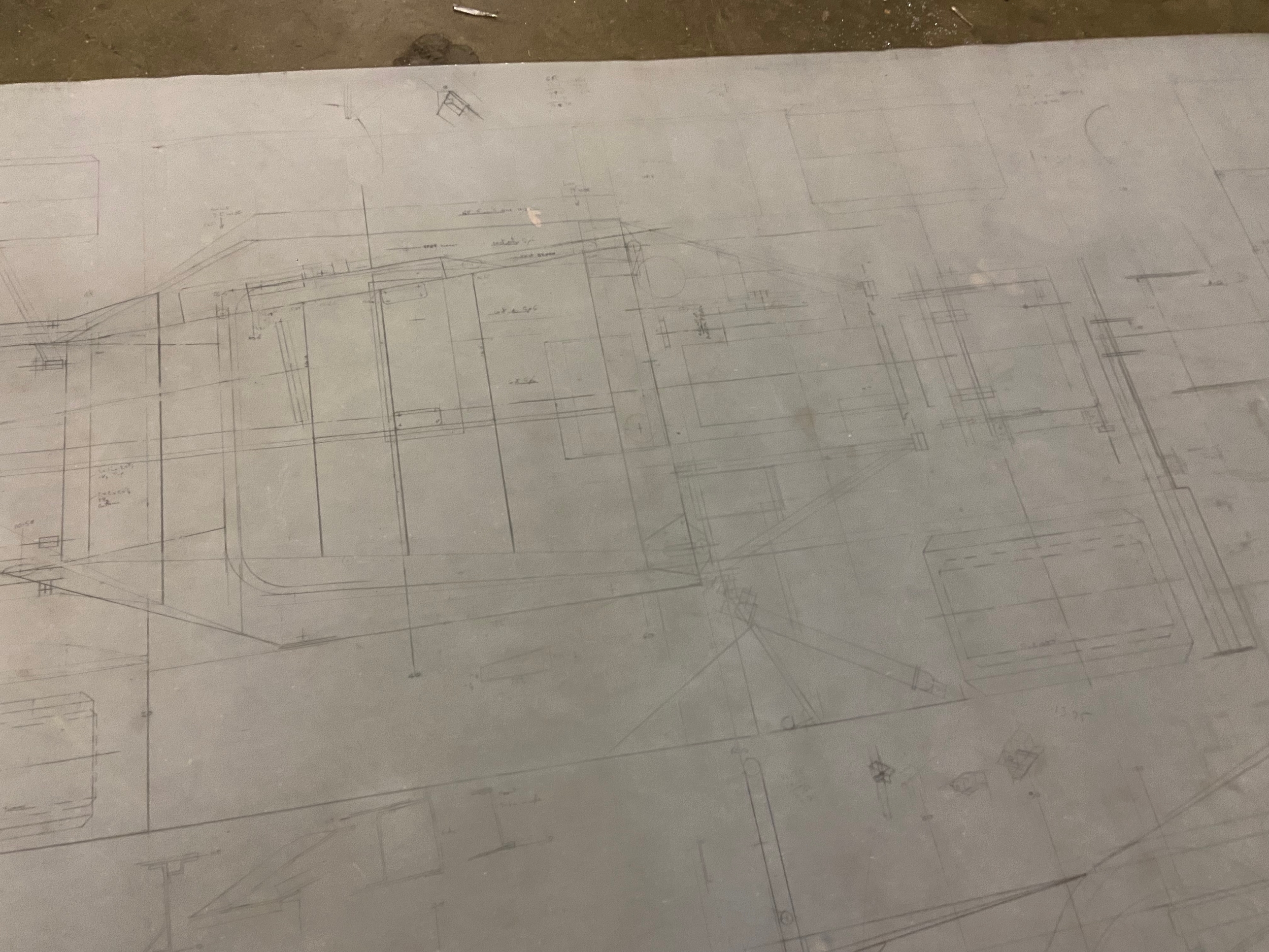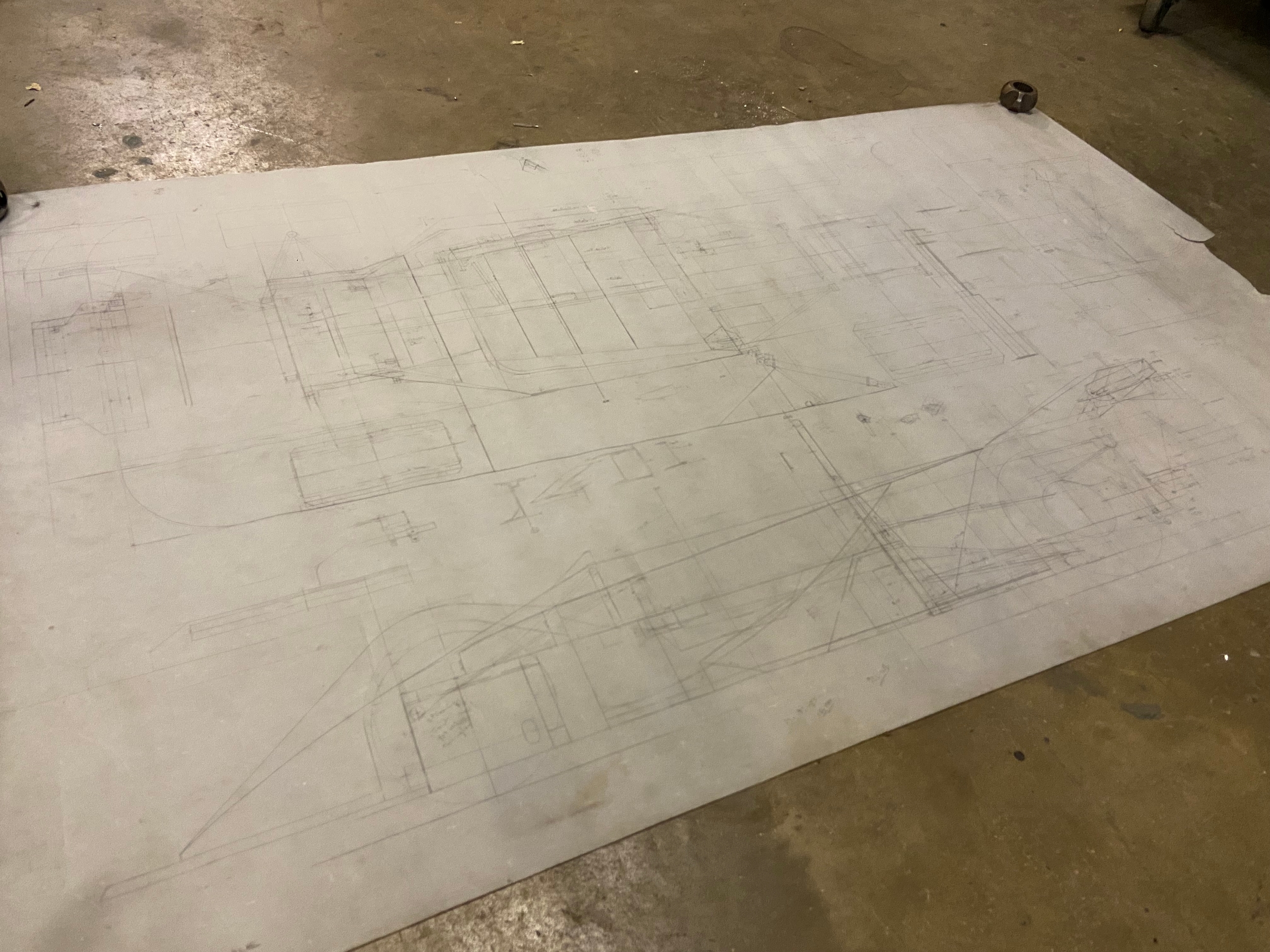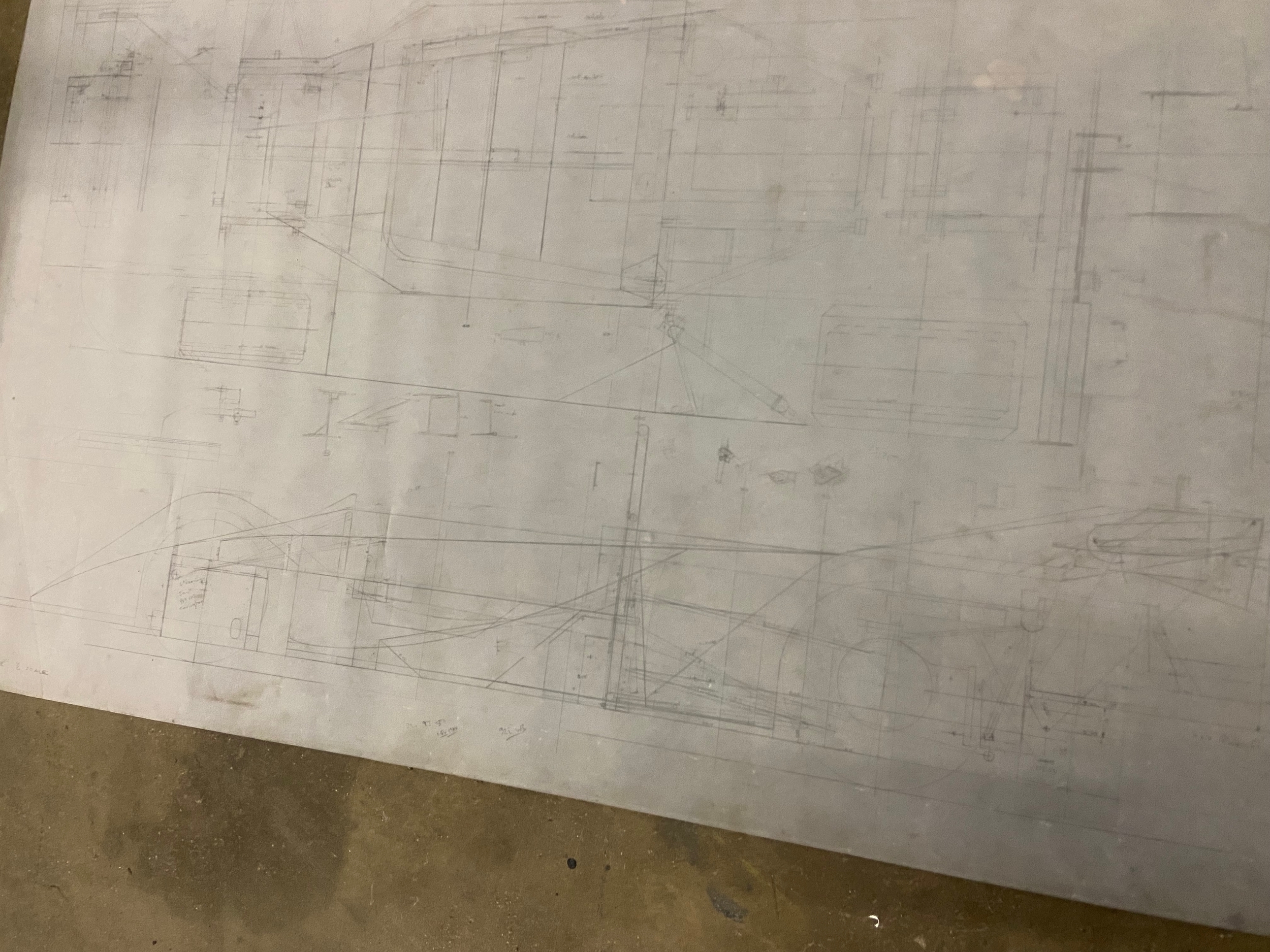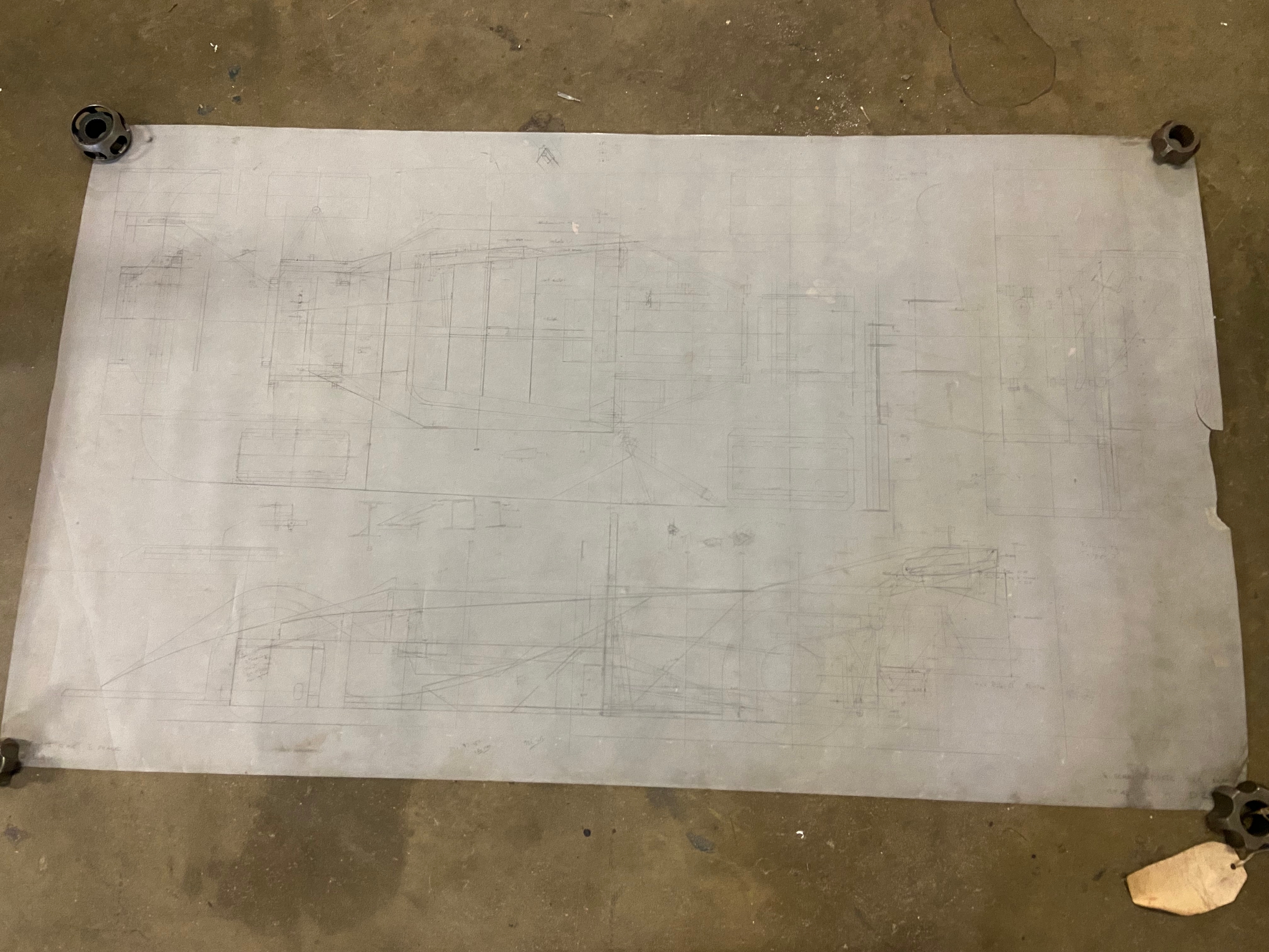 Original Mike Pilbeam 1/4 scale technical drawing for the MP43 hillclimb car. Dated Nov 79. Approx 136cm x 76cm.