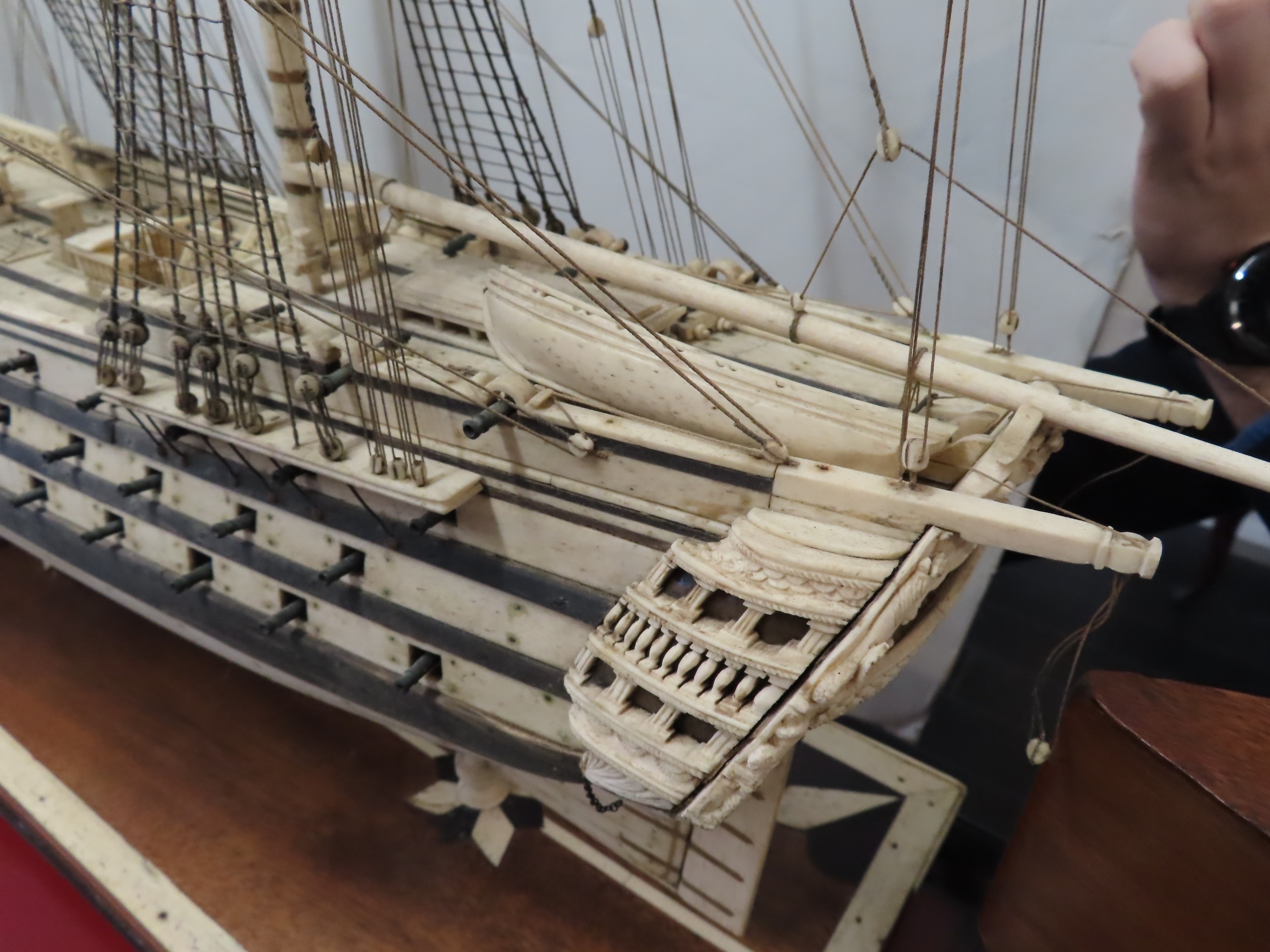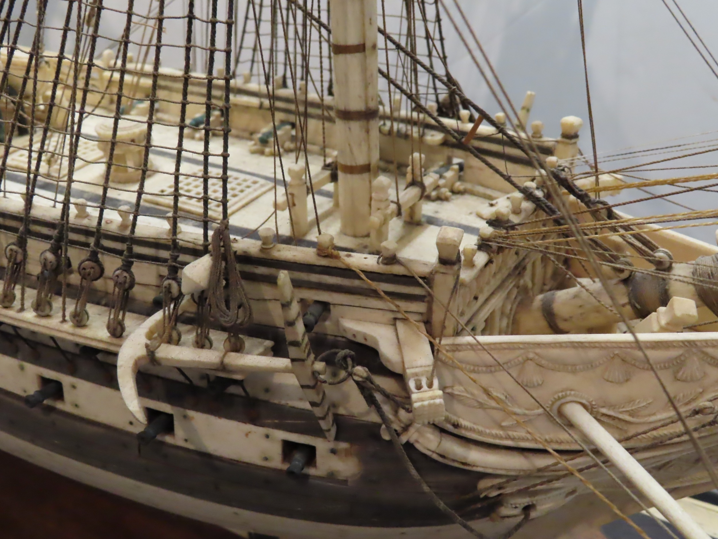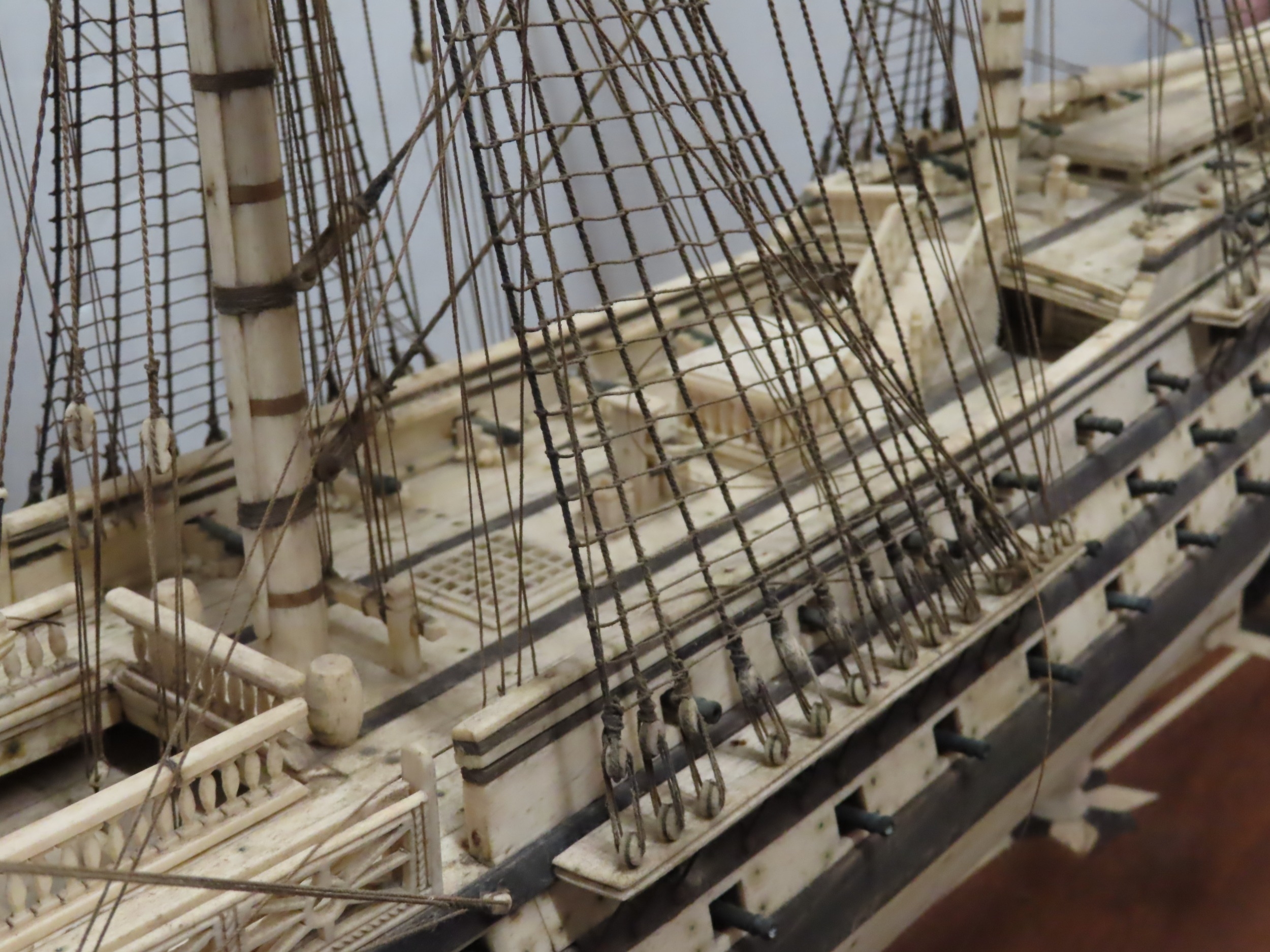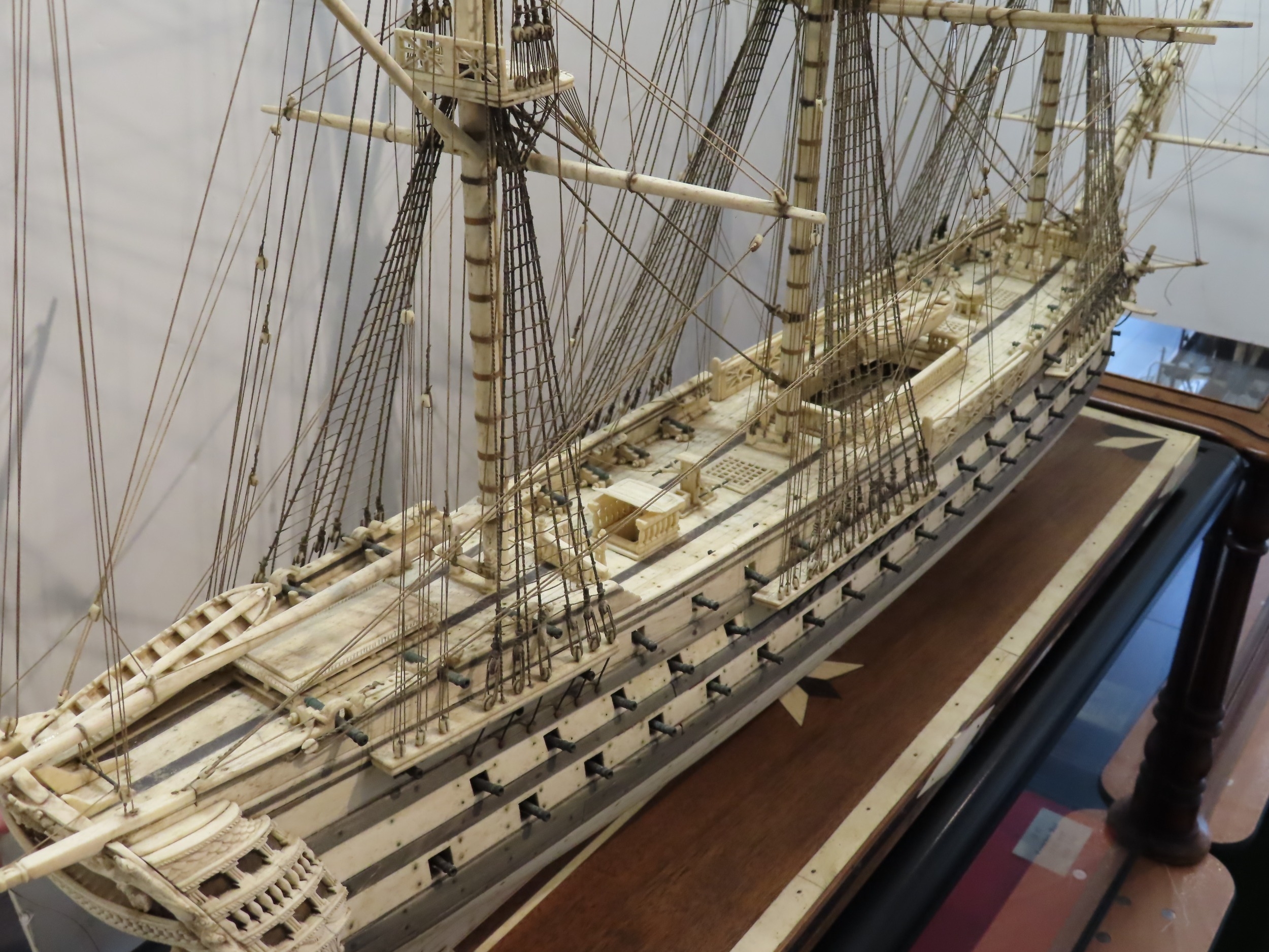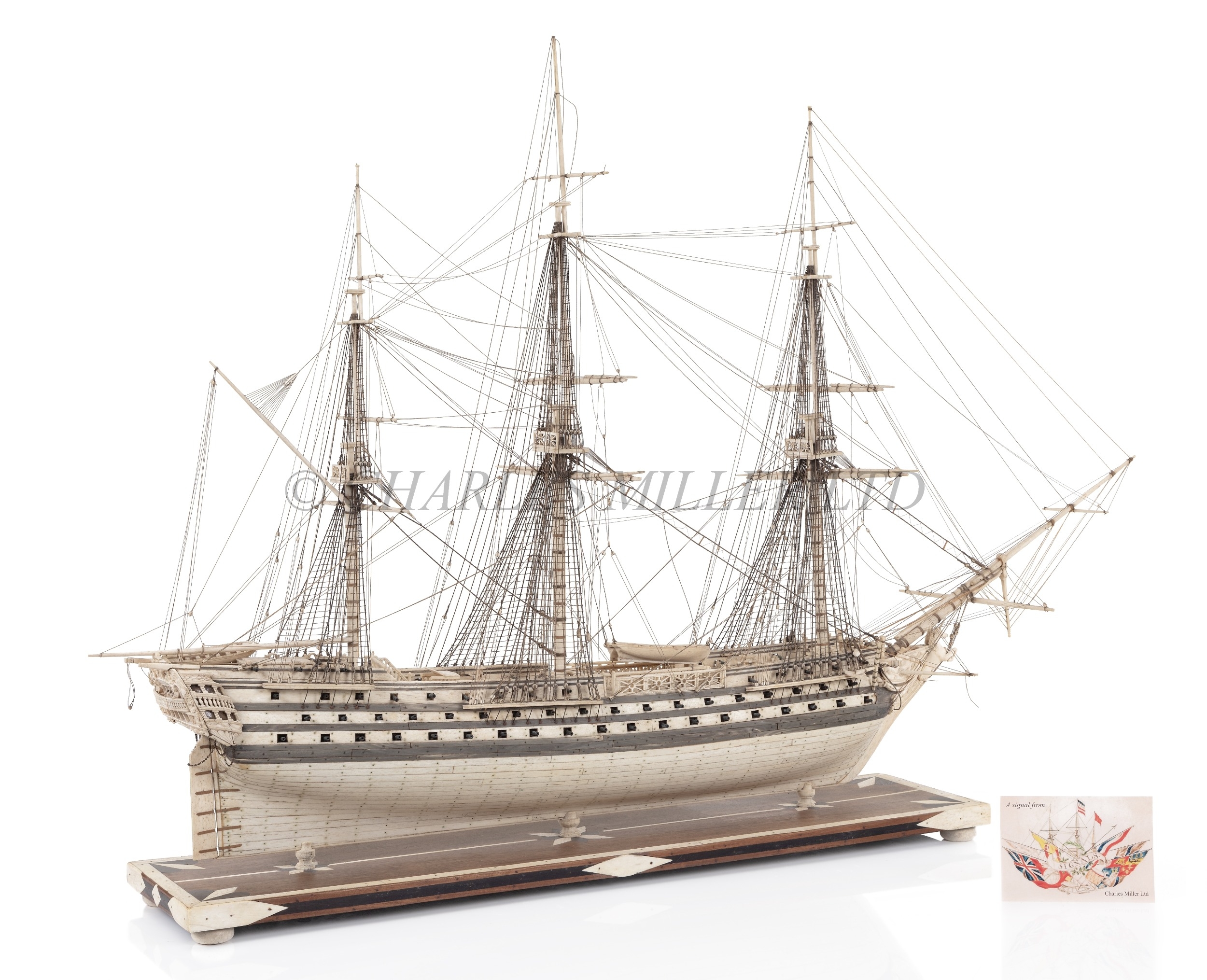A LARGE FULLY RESTORED NAPOLEONIC PRISONER-OF-WAR BONE SHIP MODEL FOR H.M.S. UNICORN