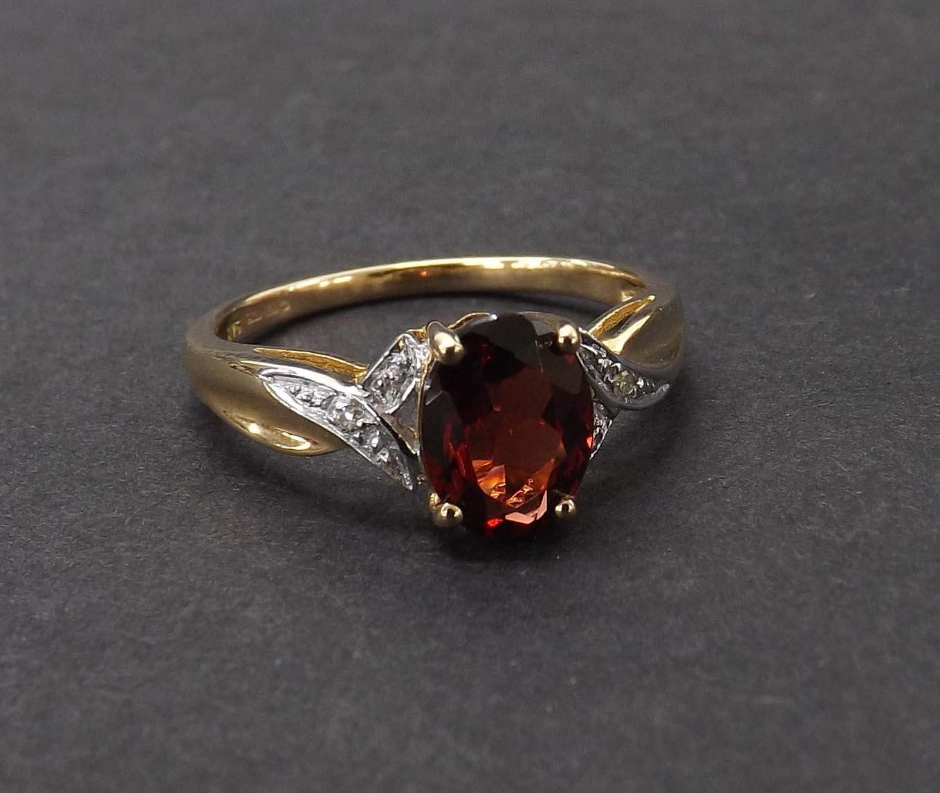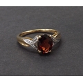 Garnet and diamond dress ring in 9ct yellow gold, 2gm, ring size L-/M