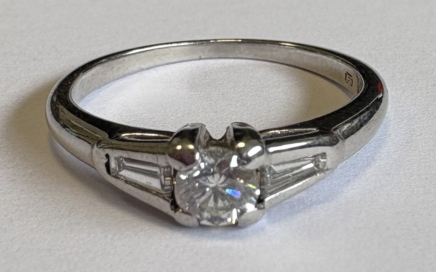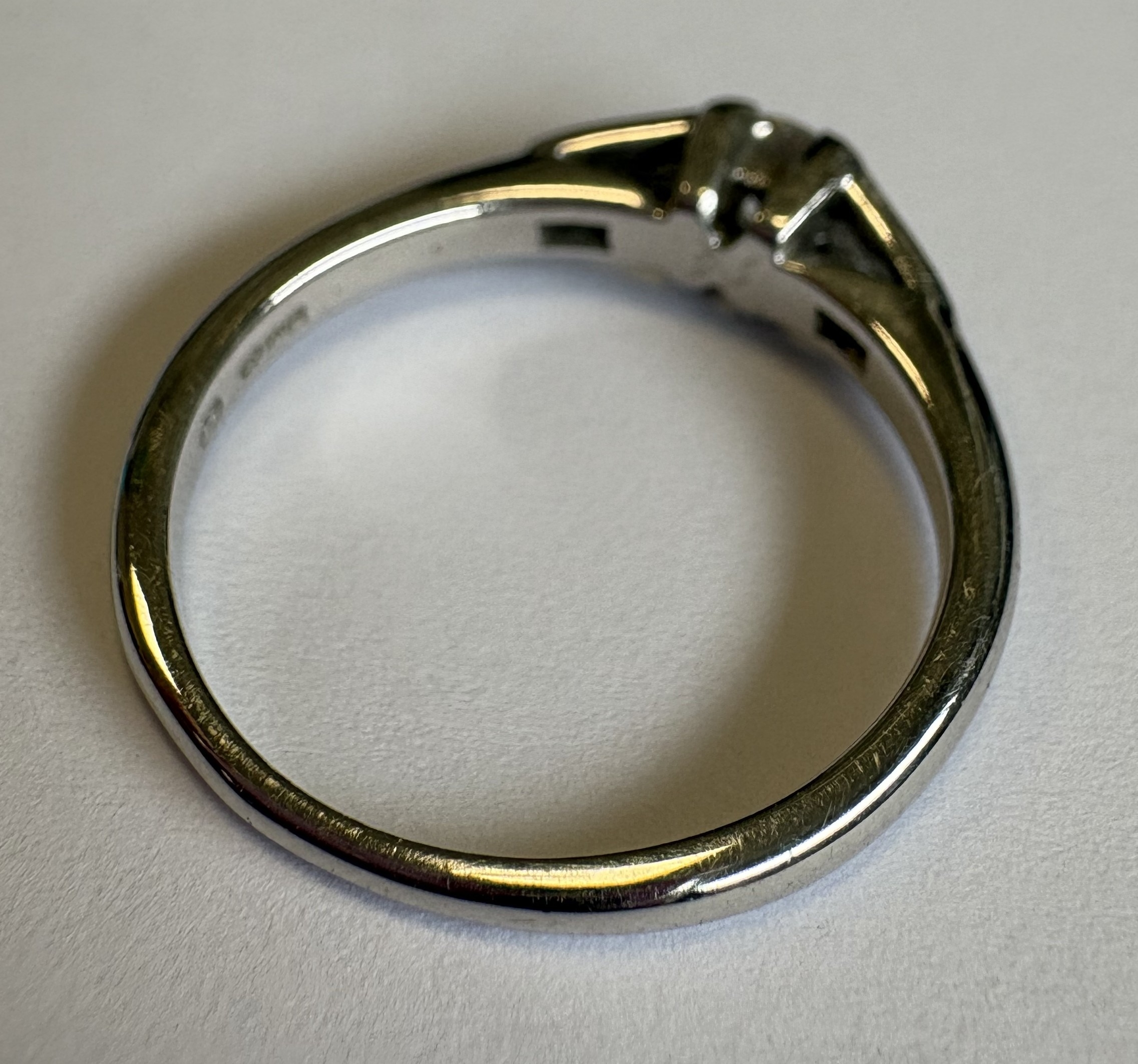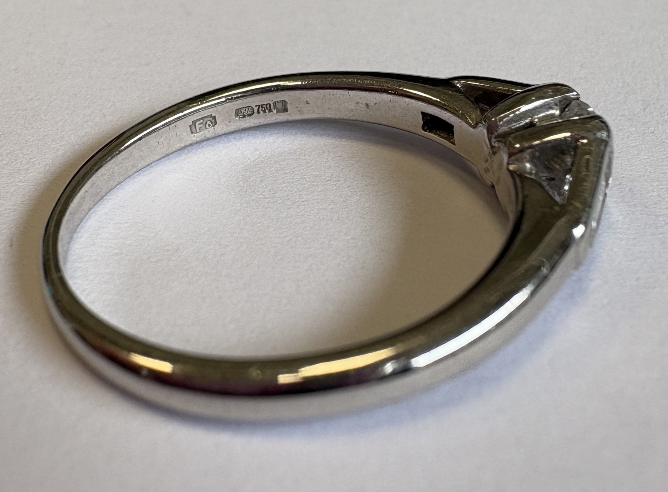 A single-stone diamond ring in 18 carat white gold tapering mount. Approx. 4 grams. Est. £250 - £300.