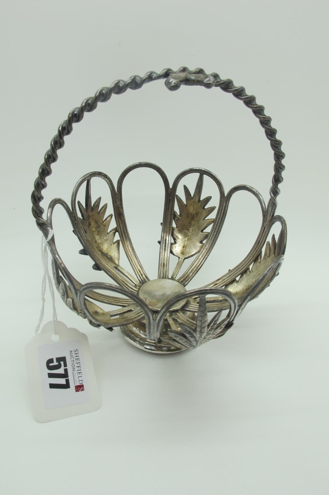 A Victorian Hallmarked Silver Sugar Basket, Joseph & Edward Bradbury, London 1869, of openwork design with stylised leaf detail and twisted overhead handle (lacking glass liner and spoon) (240grams).