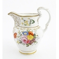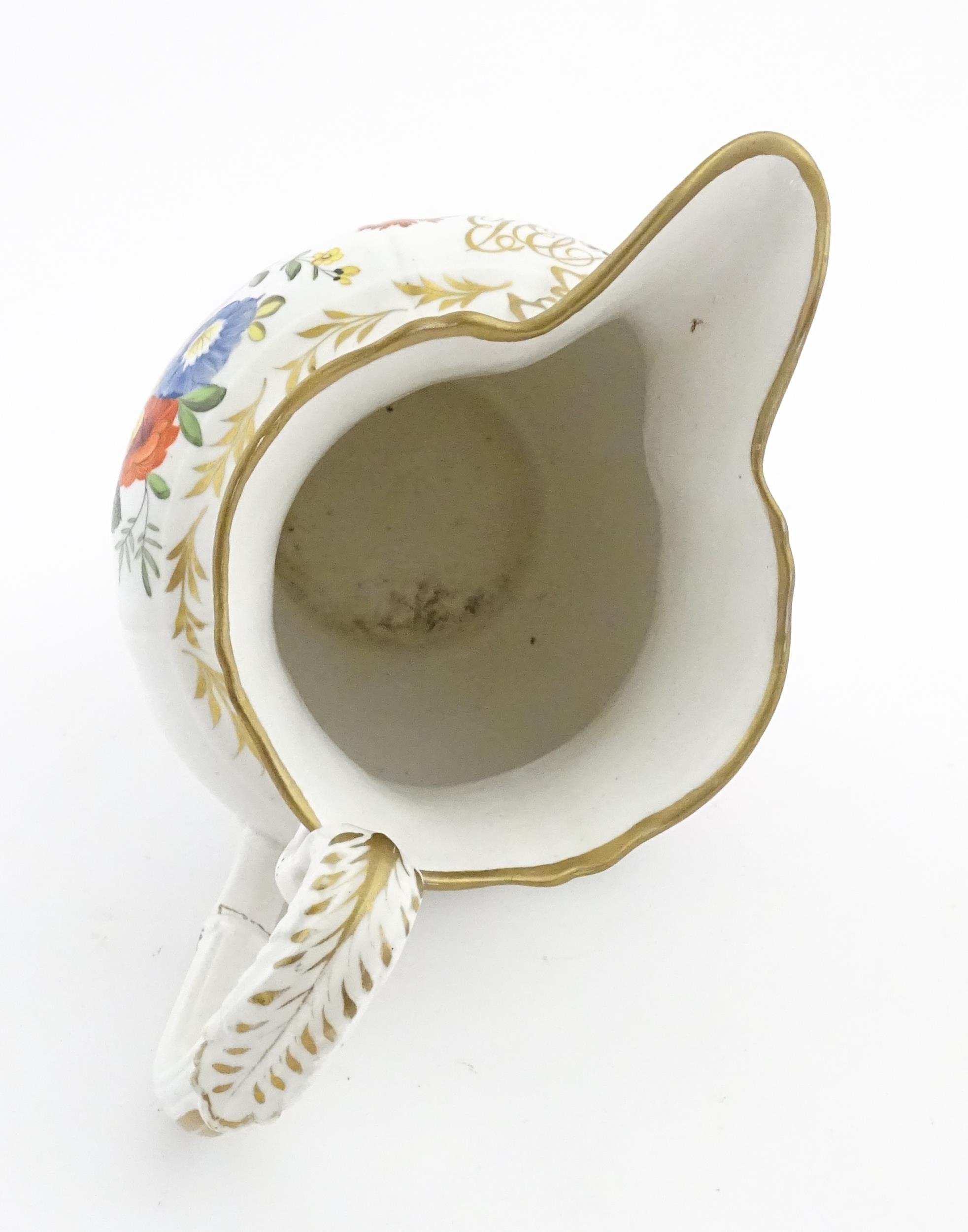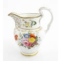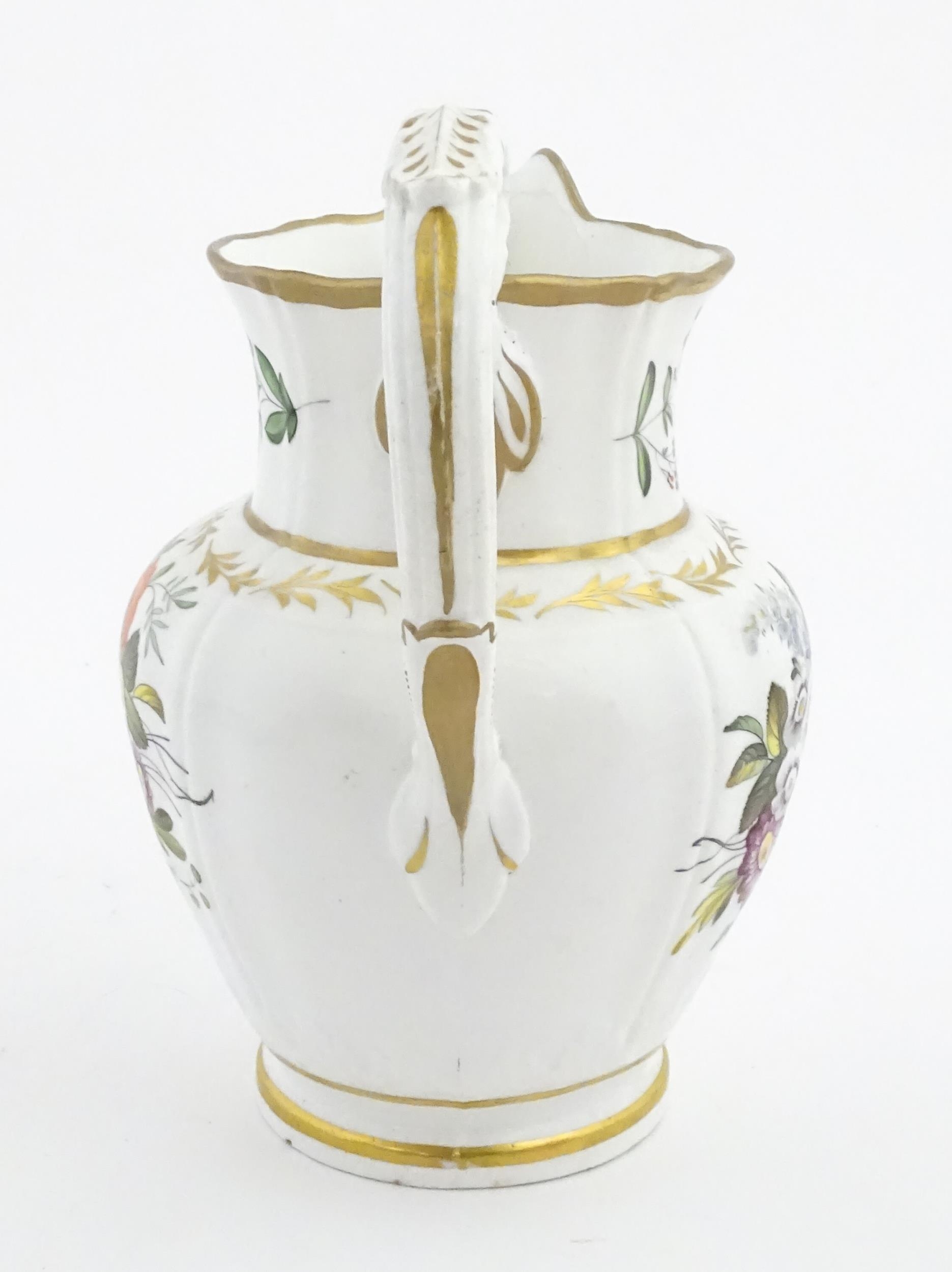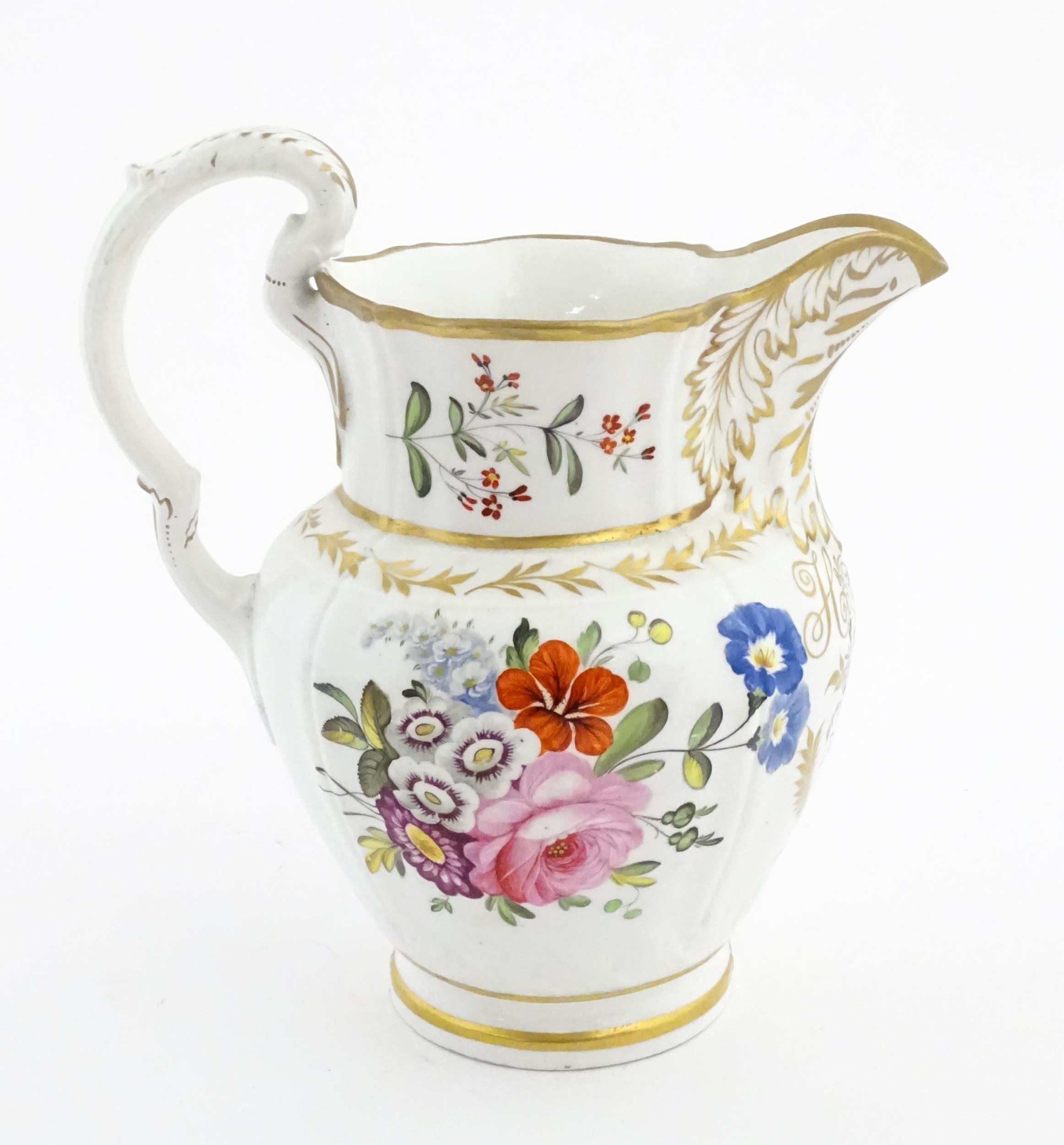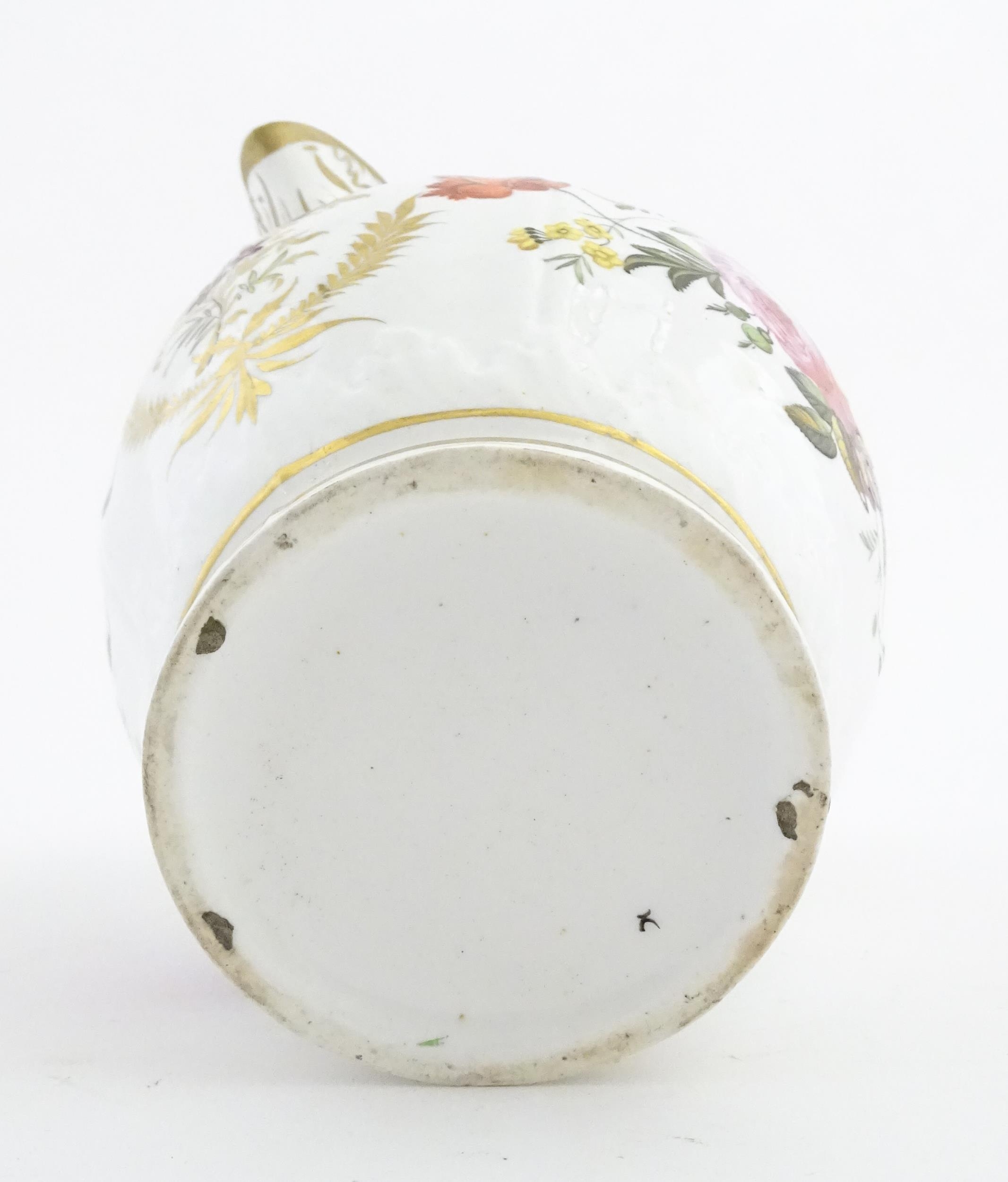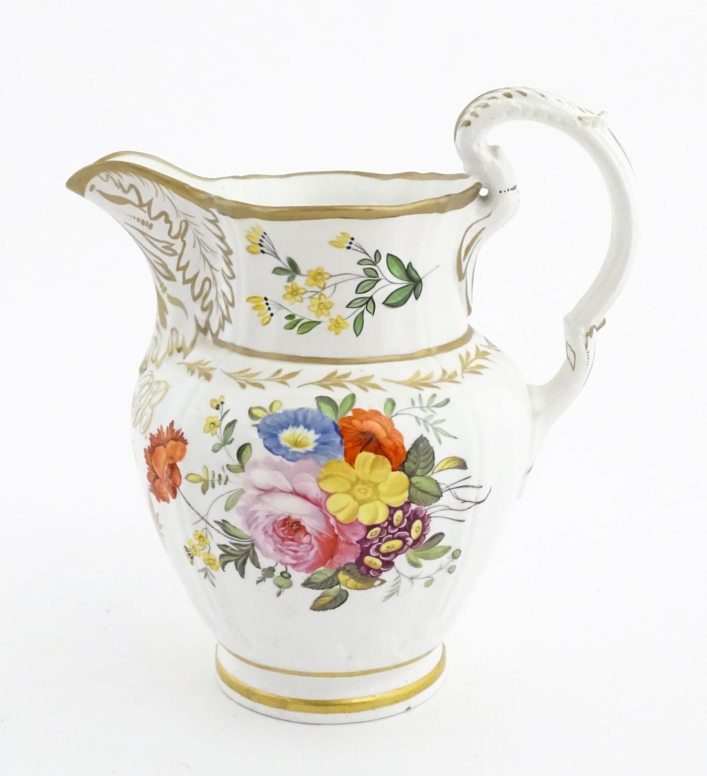 A Victorian jug / pitcher with hand painted flower decoration and gilt initials HABB. Approx. 9 1/4" high