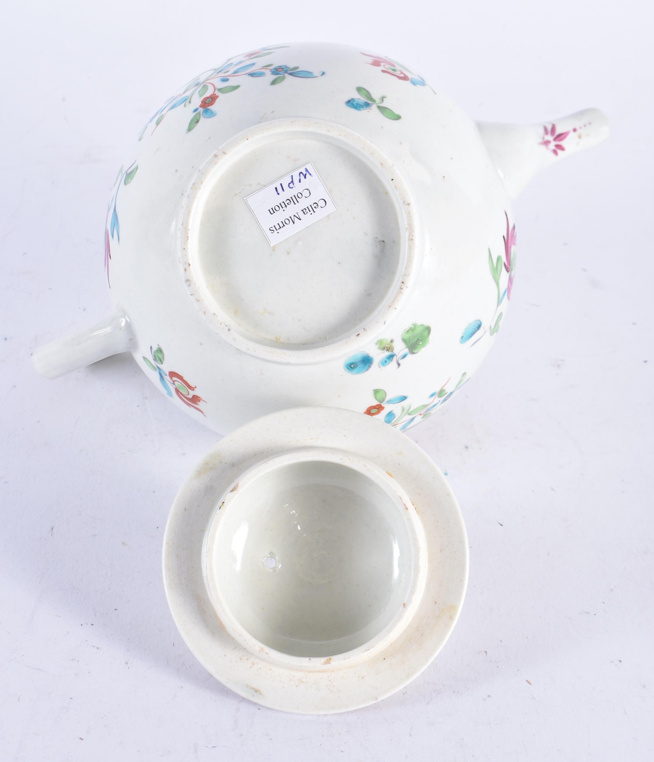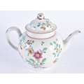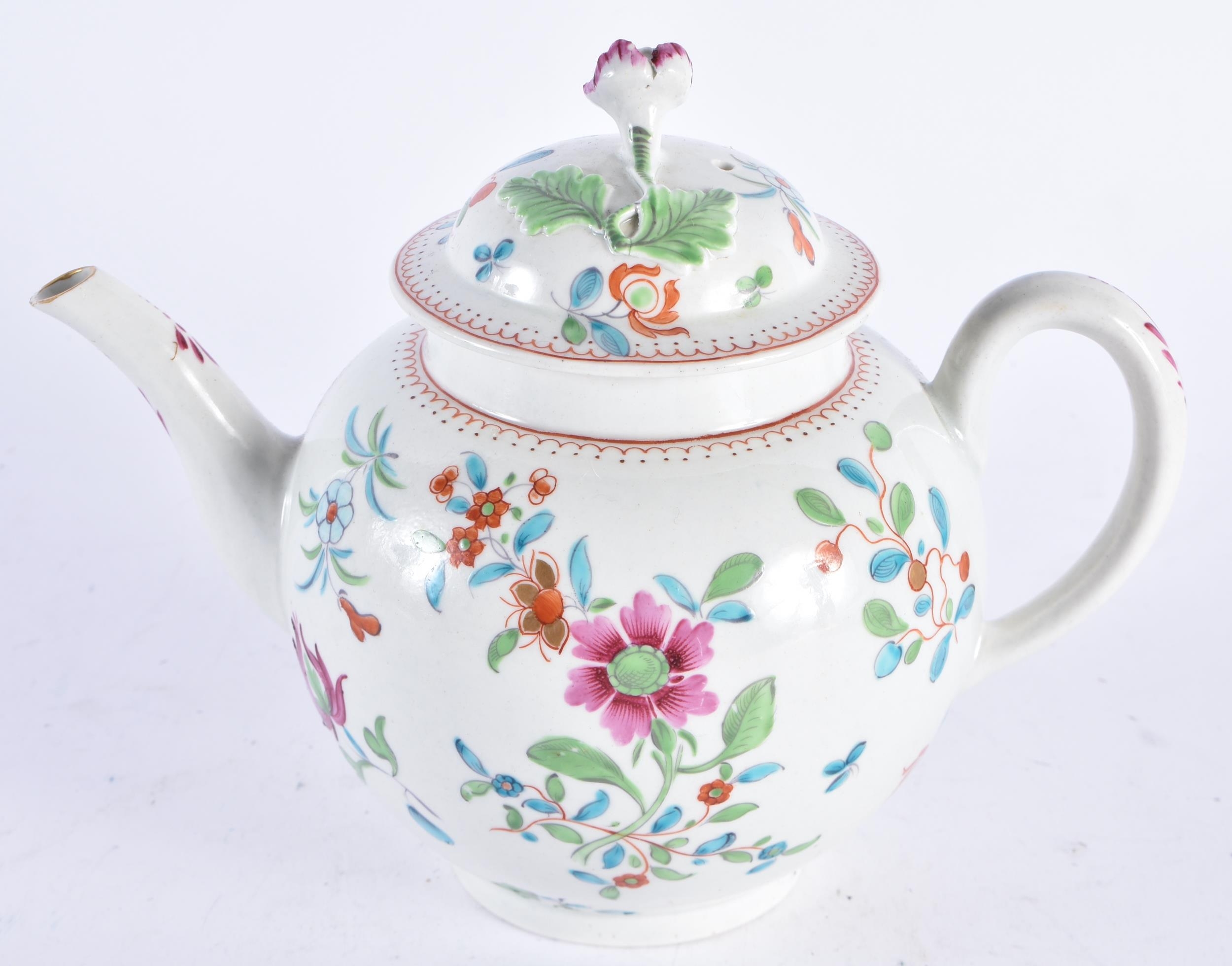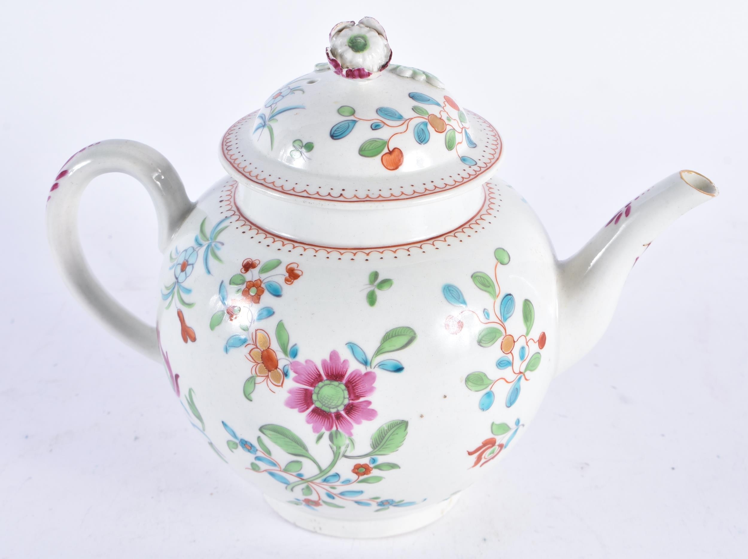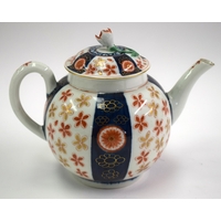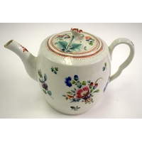18th century Worcester teapot and cover enameled with oriental style flowers. 15cm high