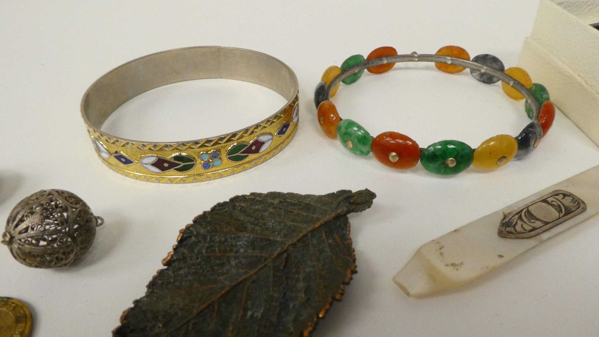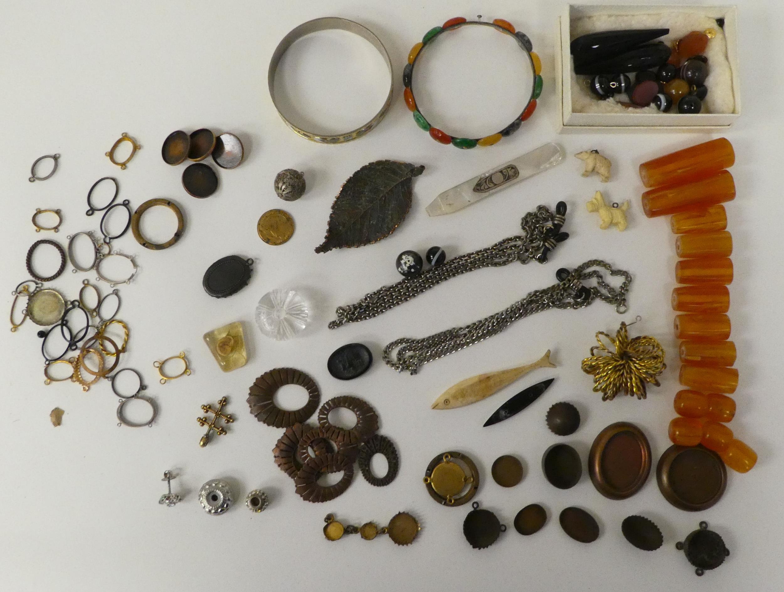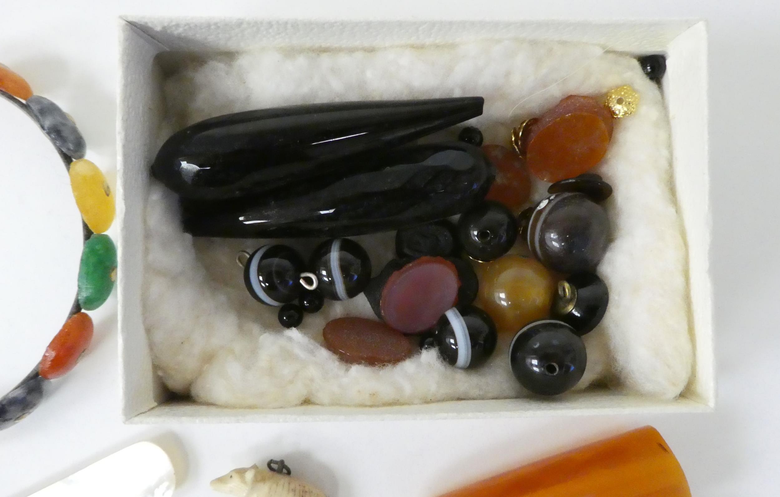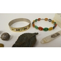Items of personal ornament: to include amber coloured loose stones; and bangles