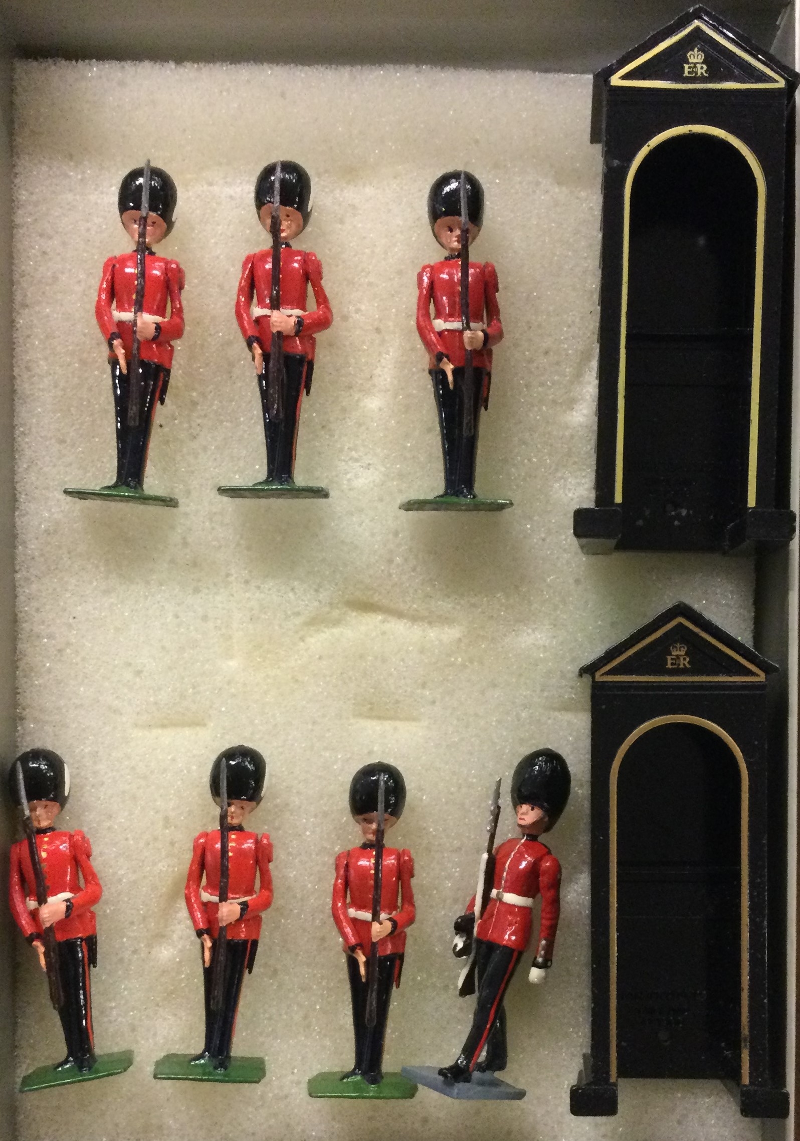 Seven lead Queen's Guard figures. Est. £20 - £30.