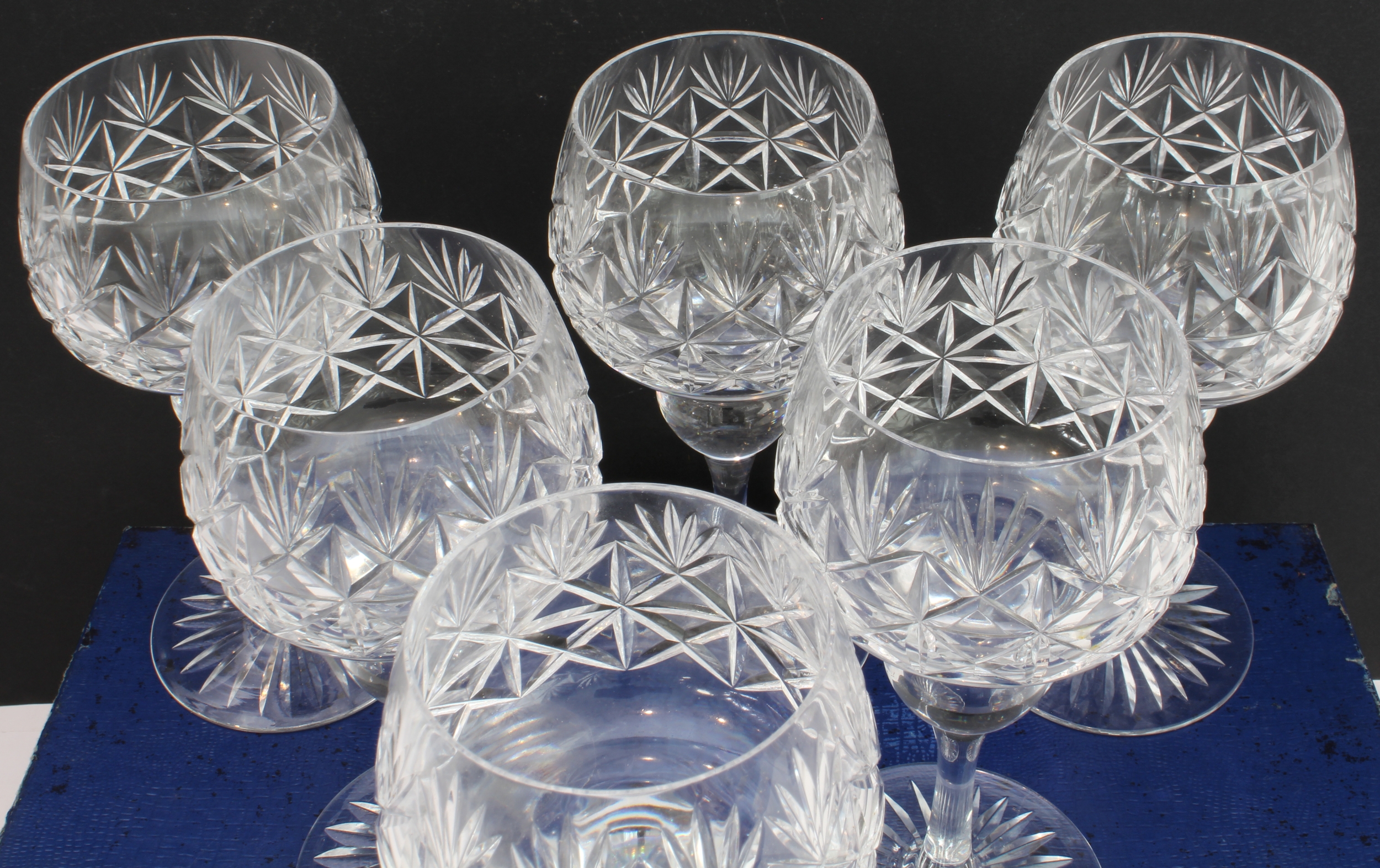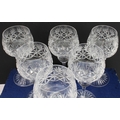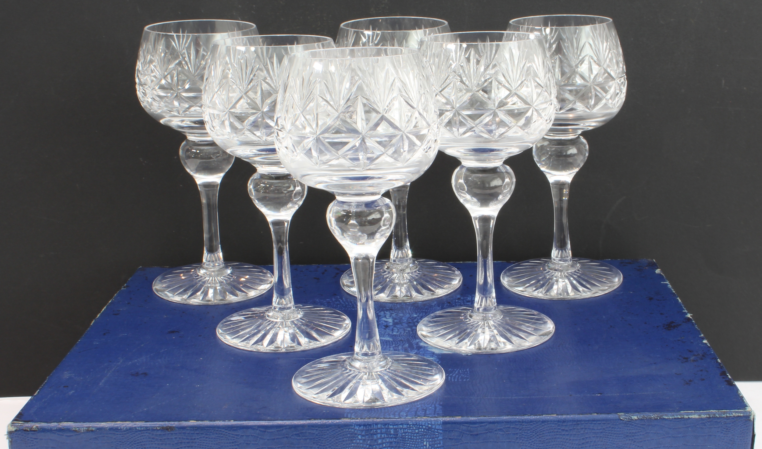 A boxed set of six finely cut clear-glass hock glasses with star-cut bases