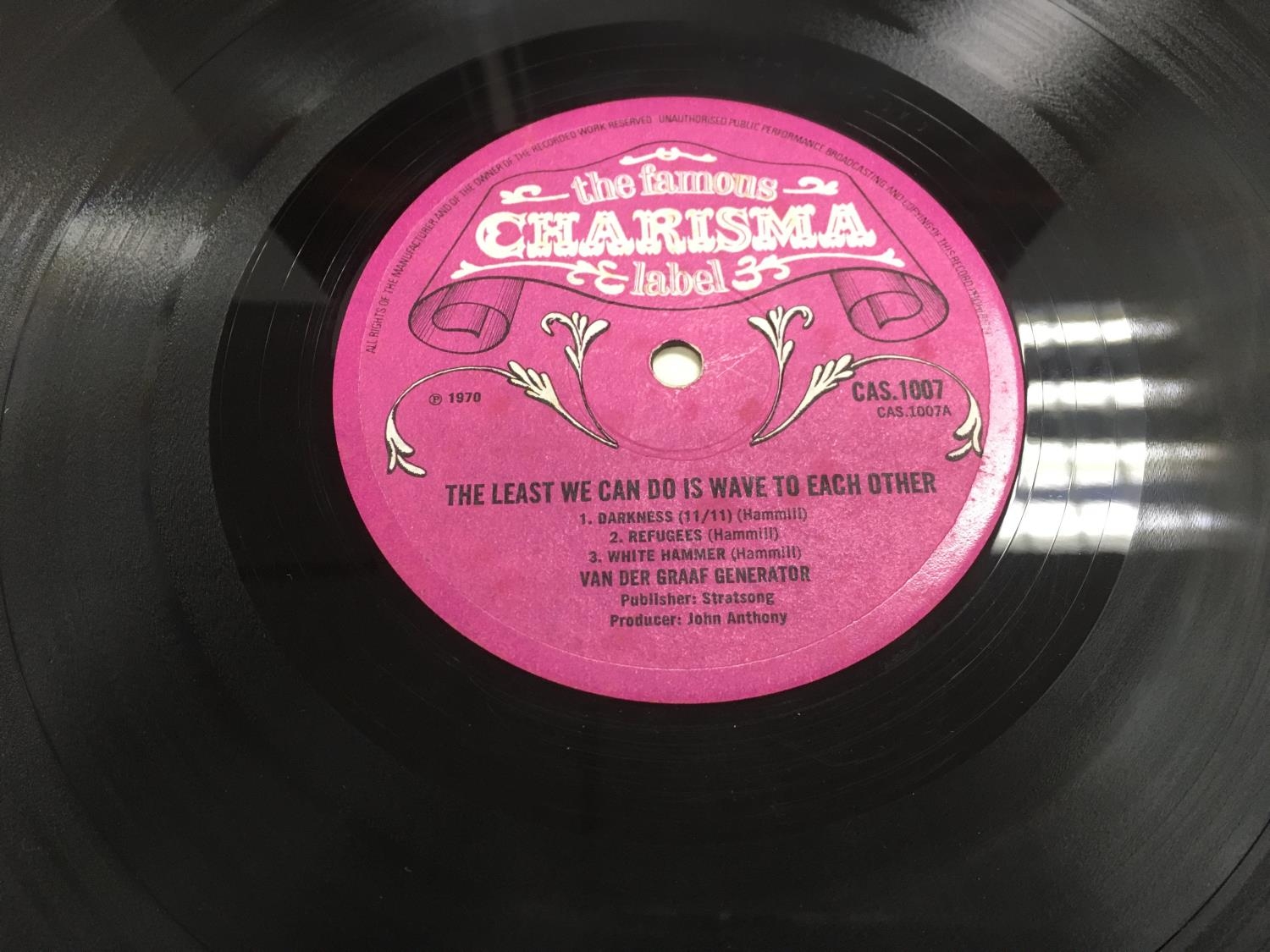 An early pressing of 'The Least We Can Do Is Wave To Each Other' by Van Der Graaf Generator, this is the second mix with a matrix number ending in G. Some light hairline scratches to vinyl, sleeve is worn with splits and ringwear. No poster.