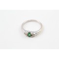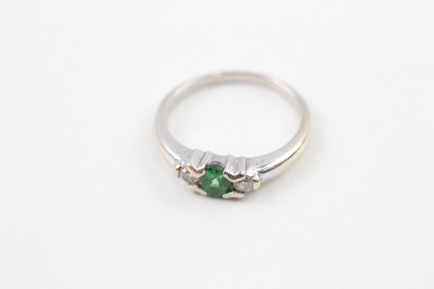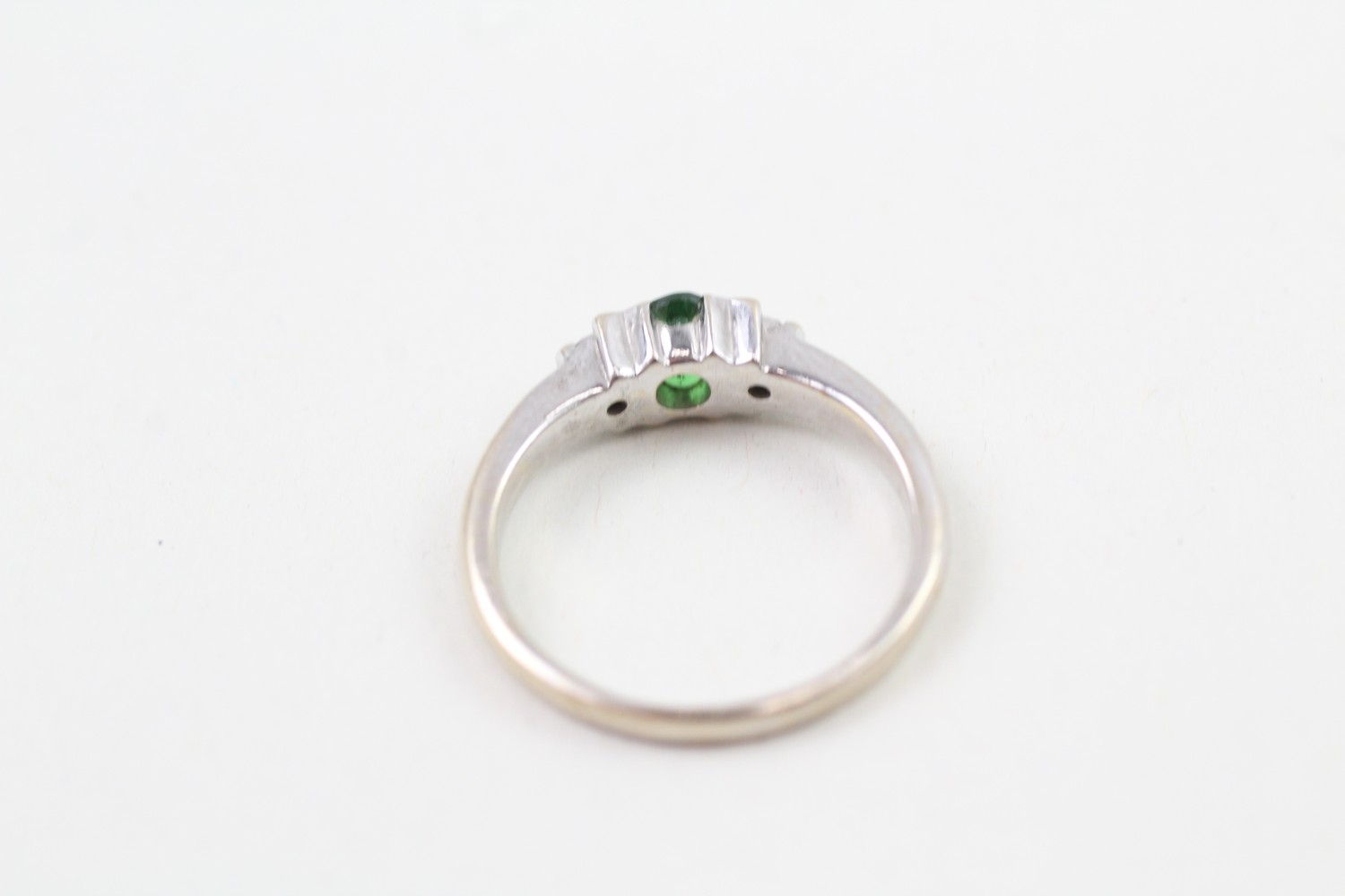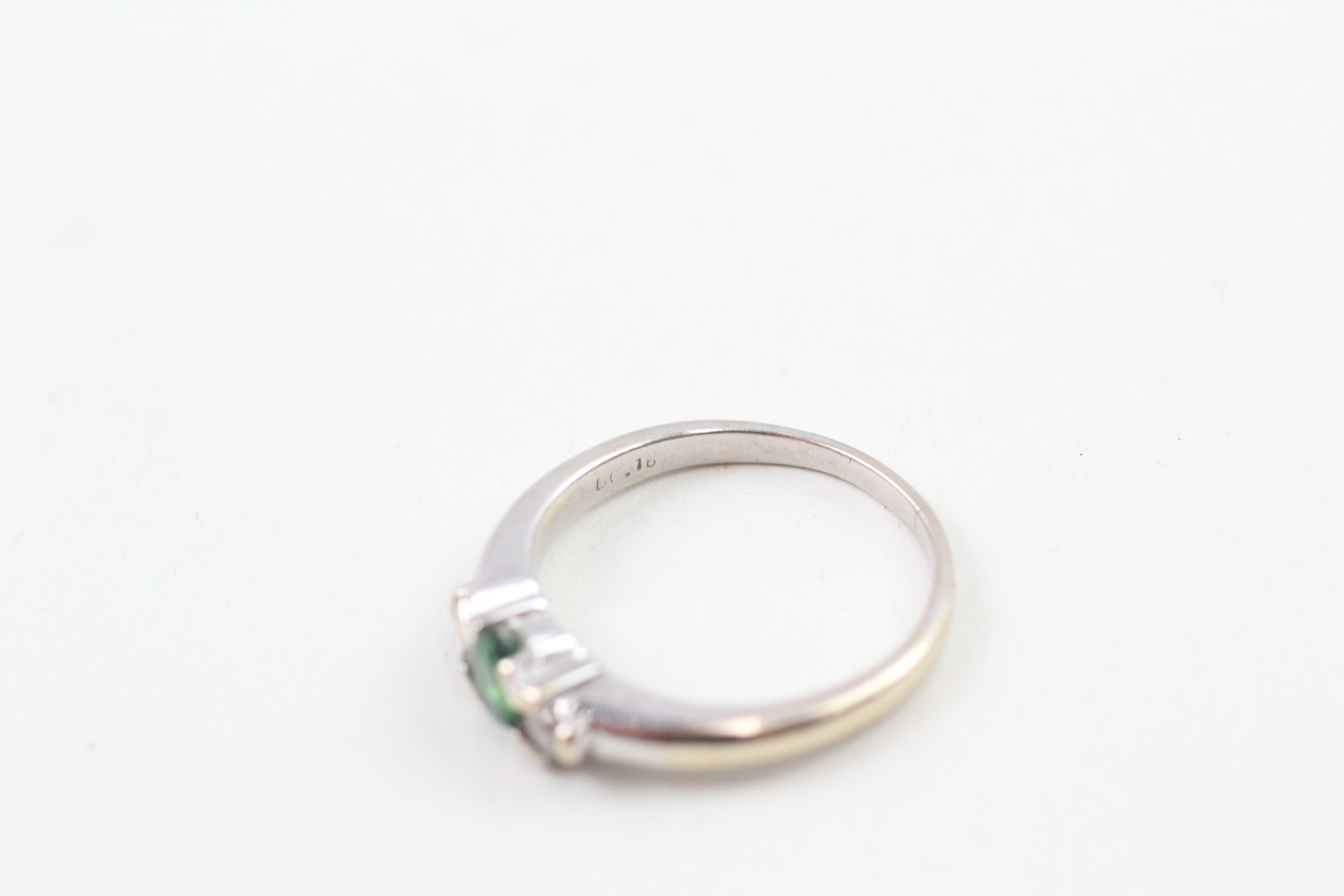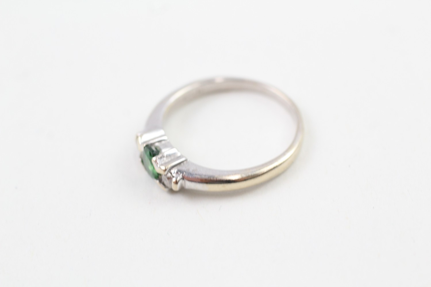 AN 18CT GOLD, DIAMOND AND GARNET THREE STONE RING, Weight: 4.1gms