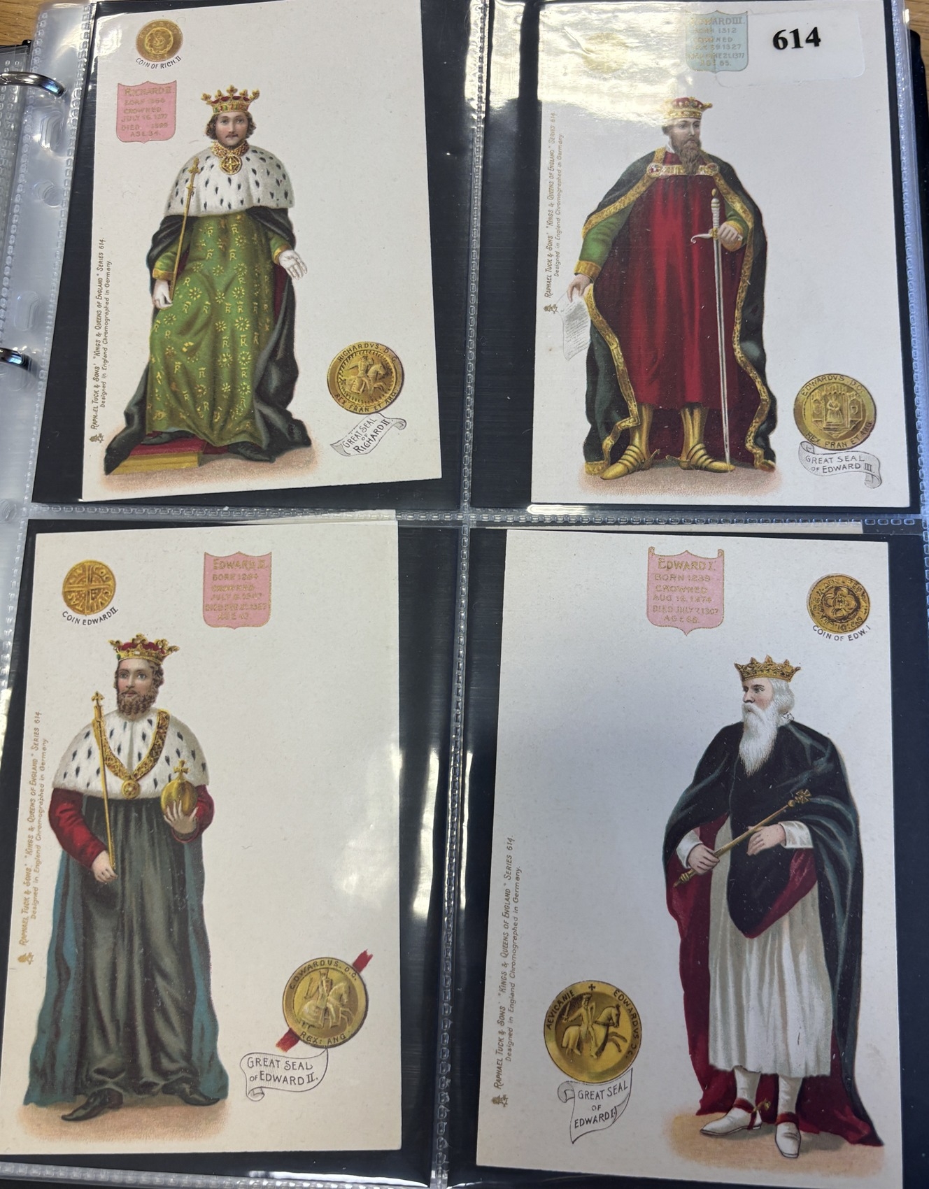 Royalty. Misc. coln. of ptd, R.P's and artist drawn cards in one modern slipcase album, incl. palaces, national anthems, Royal Wedding 1981 and Tuck sets 614, 615, 652 and 653. Qty. approx. 300+. (V)