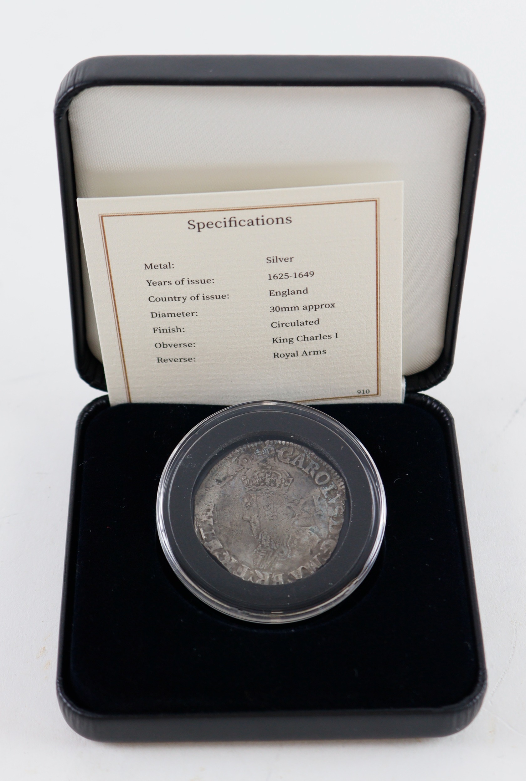 Charles I group D, type 3a hammered silver Shilling mm. tun. S.2791, 5.69g, GF in a Harrington & Byrne case with cert.