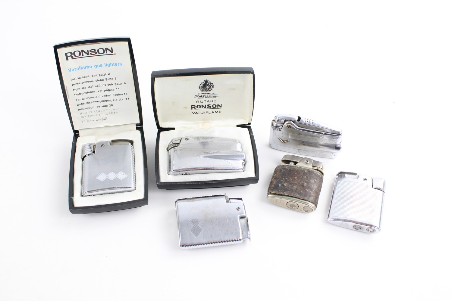 6 x Vintage RONSON Cigarette LIGHTERS Inc Varaflame, Leather, Boxed Etc