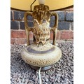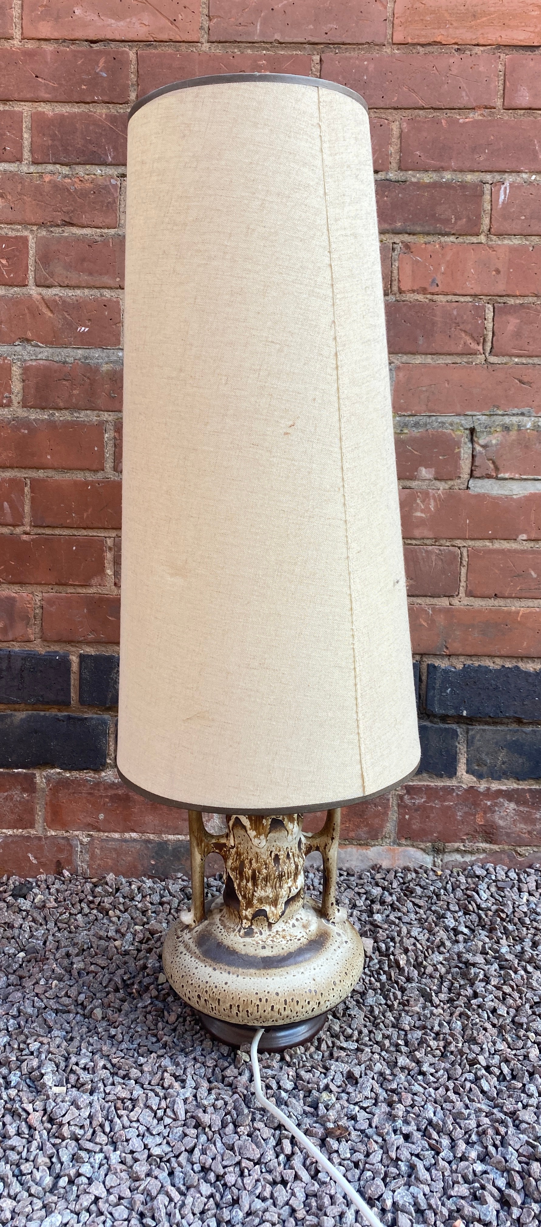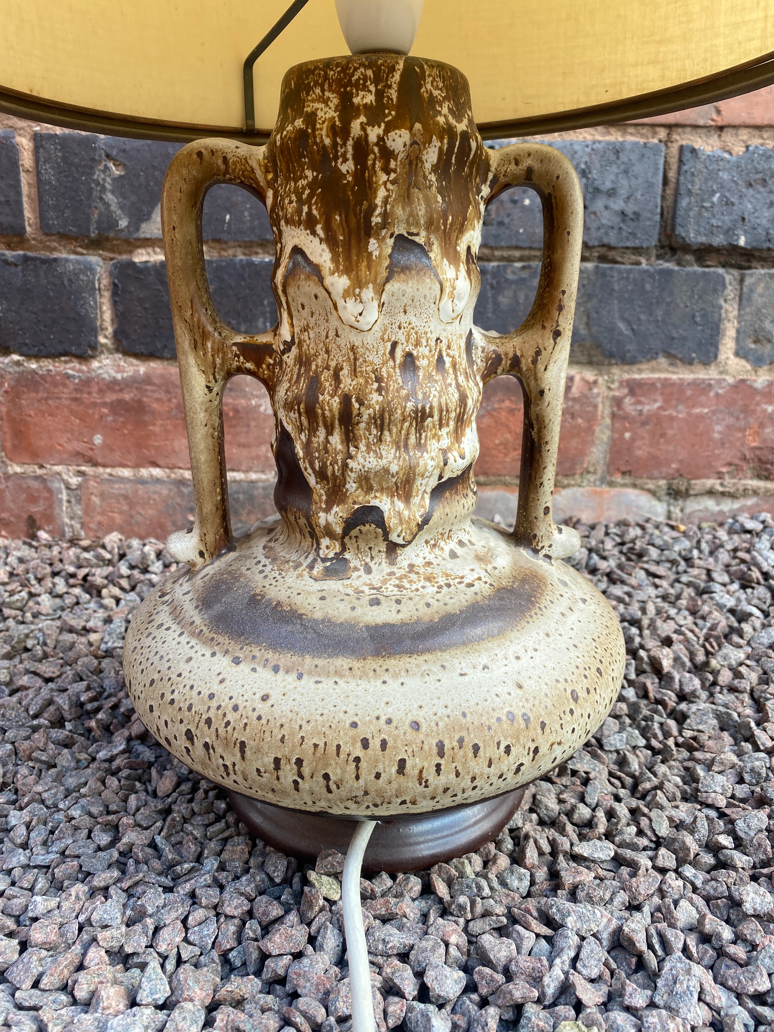 MOTTLED POTTERY TWIN HANDLED TABLE LAMP WITH CONICAL SHADE