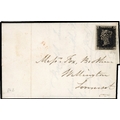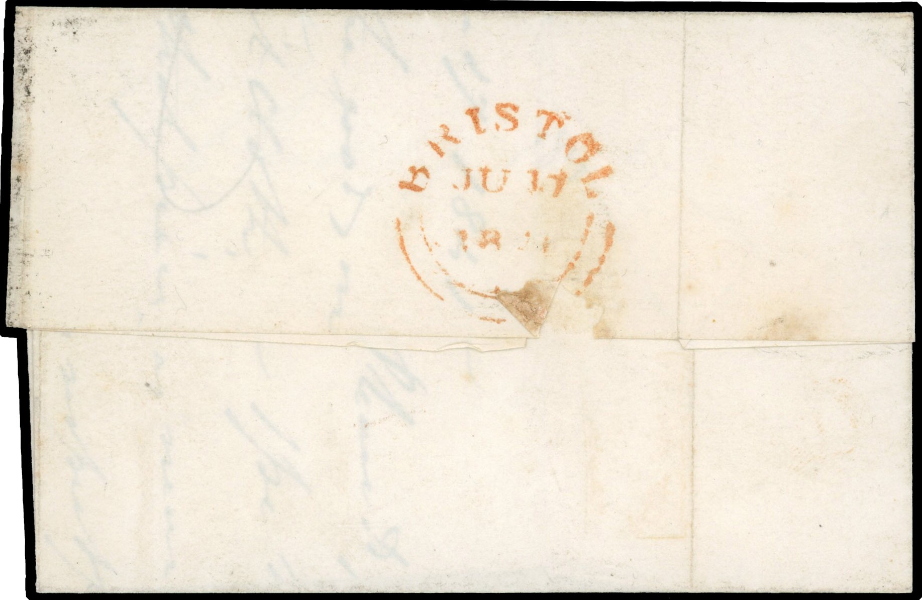 1840 entire addressed to Somerset, franked by 1d black Plate 2 (GA), four good to large margins, and tied by black MC, backstamped with orange Bristol ds for JU 17. SG 2, Spec. AS47Â