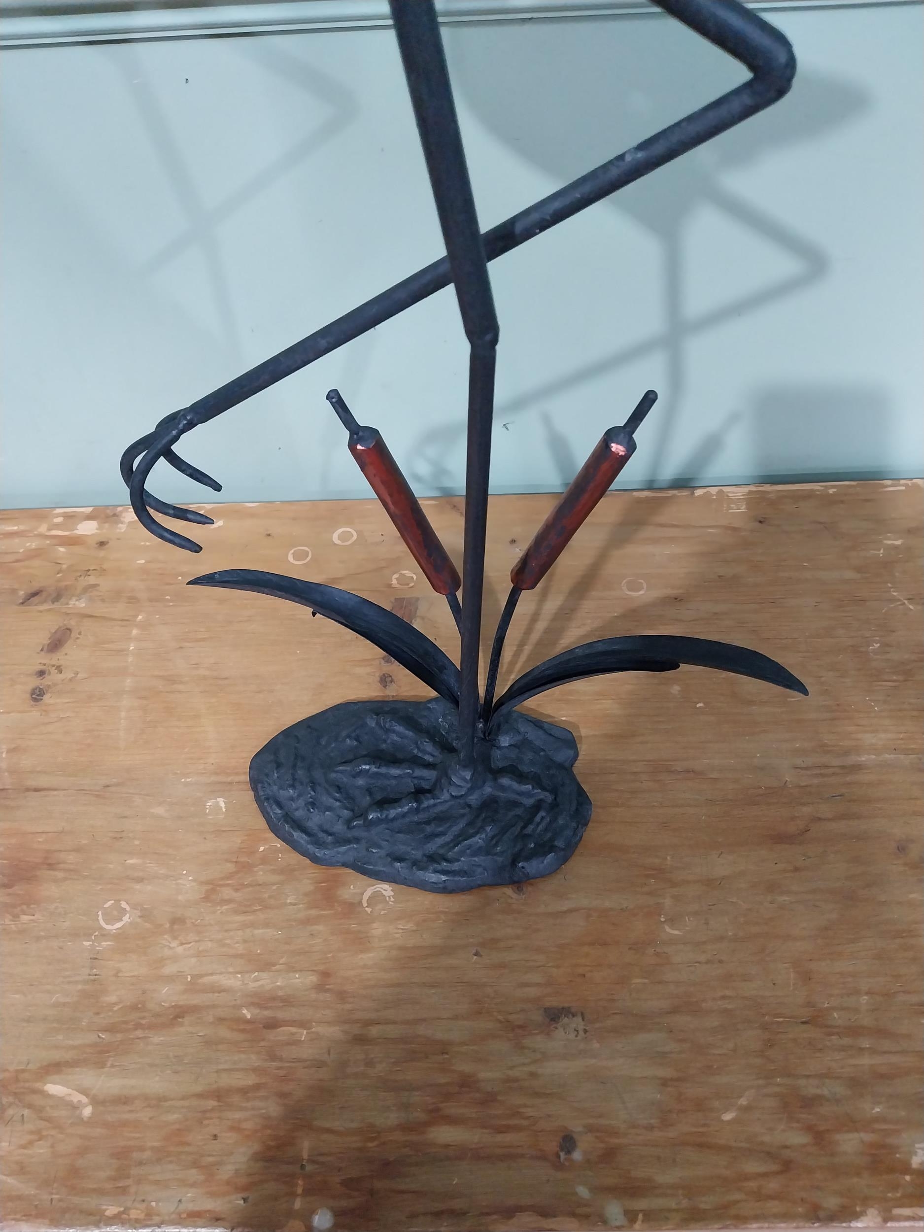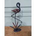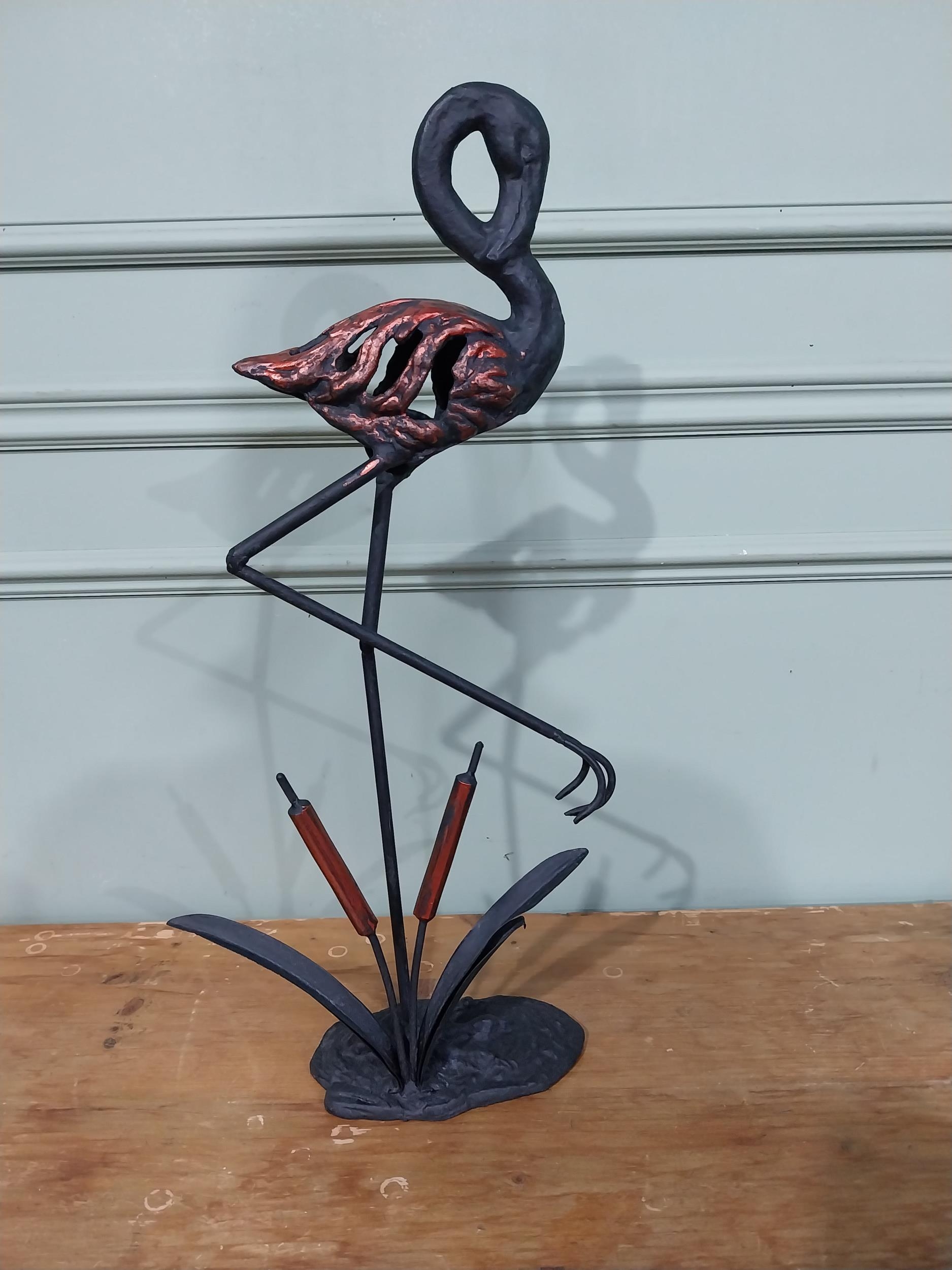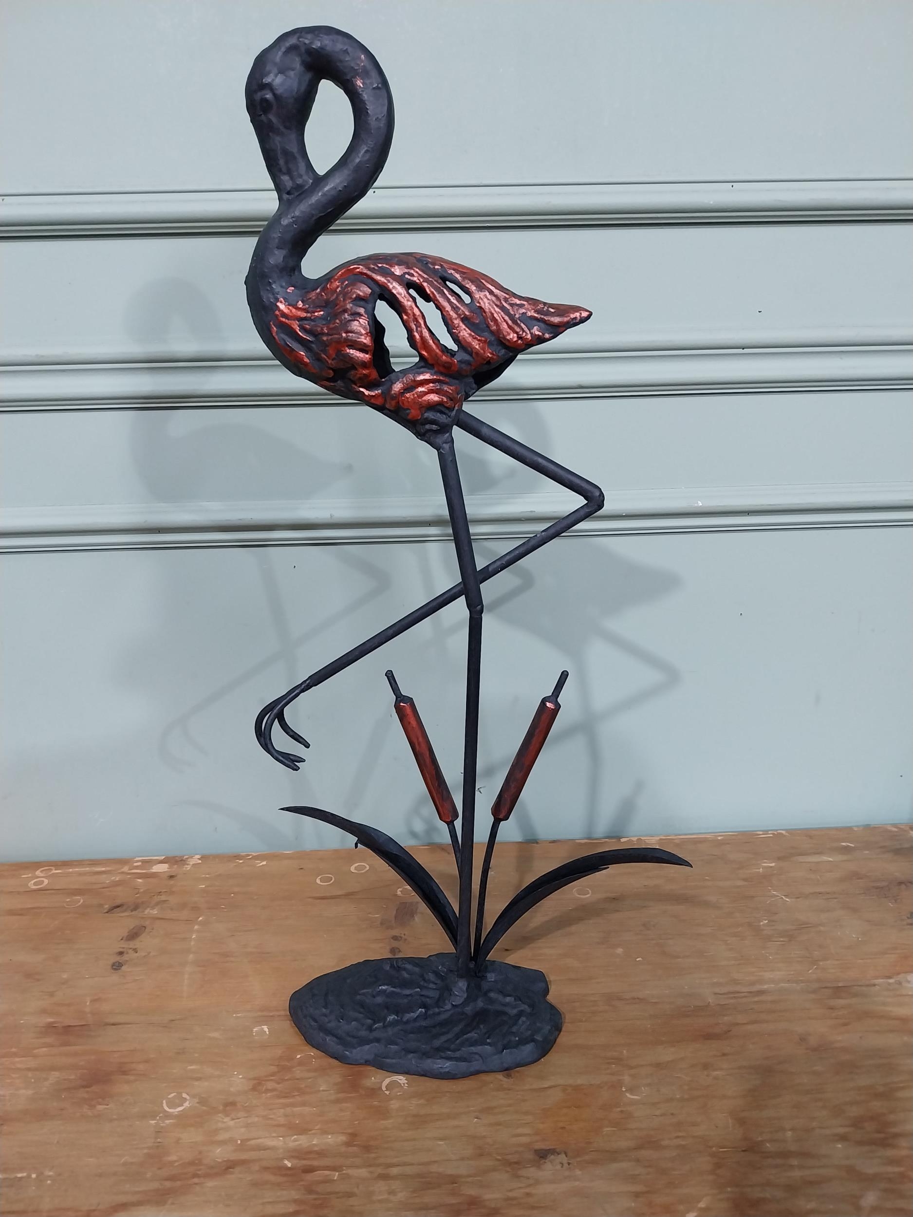 Good quality cast iron sculpture of a Flamingo. {61 cm H x 30 cm W x 10 cm D}.