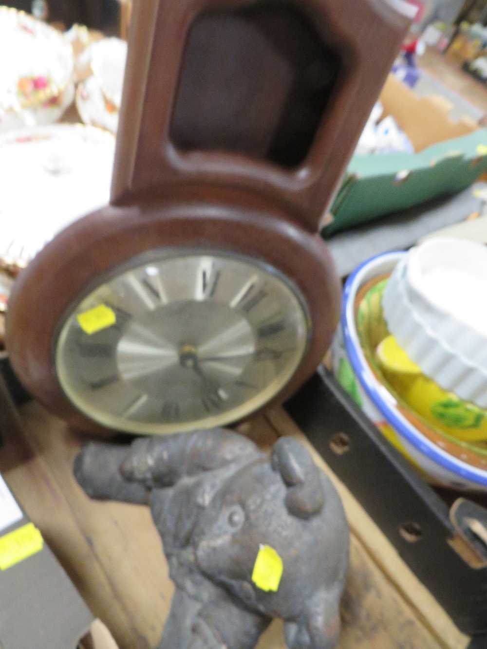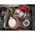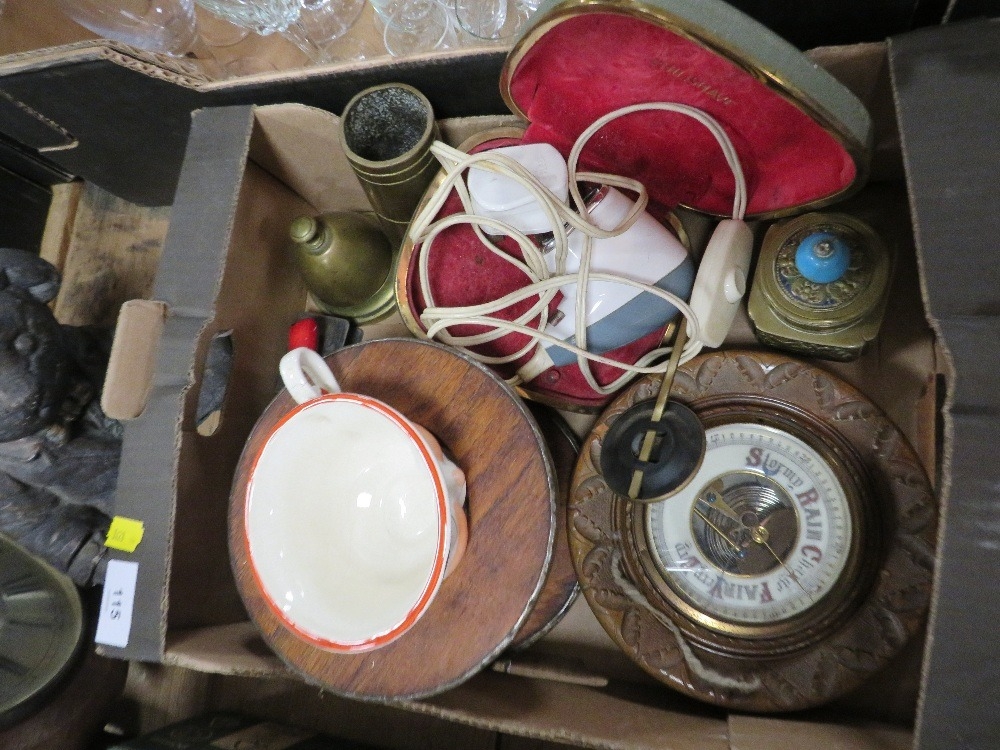 A small tray of collectables to include barometer, inkwell etc