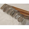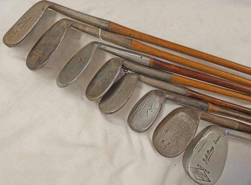8 HICKORY SHAFTED GOLF CLUBS TO INCLUDE, NIBLICK BY J.A. BRAY, EXCELSIOR BY T. FORREST BICESTER ETC -8-