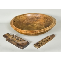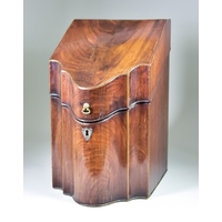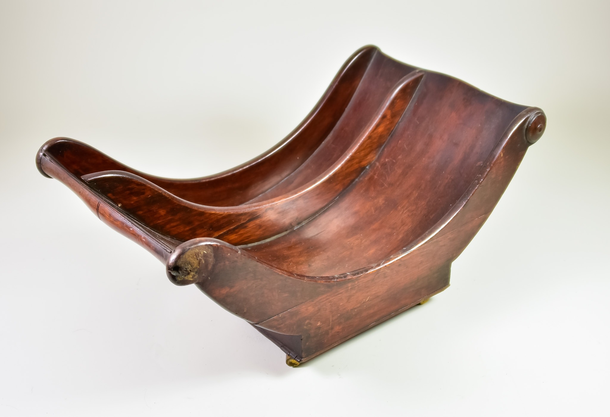 A George III Mahogany Cheese Boat of Scroll Form, on rectangular base with castors, 17ins wide x 10ins deep x 7ins high