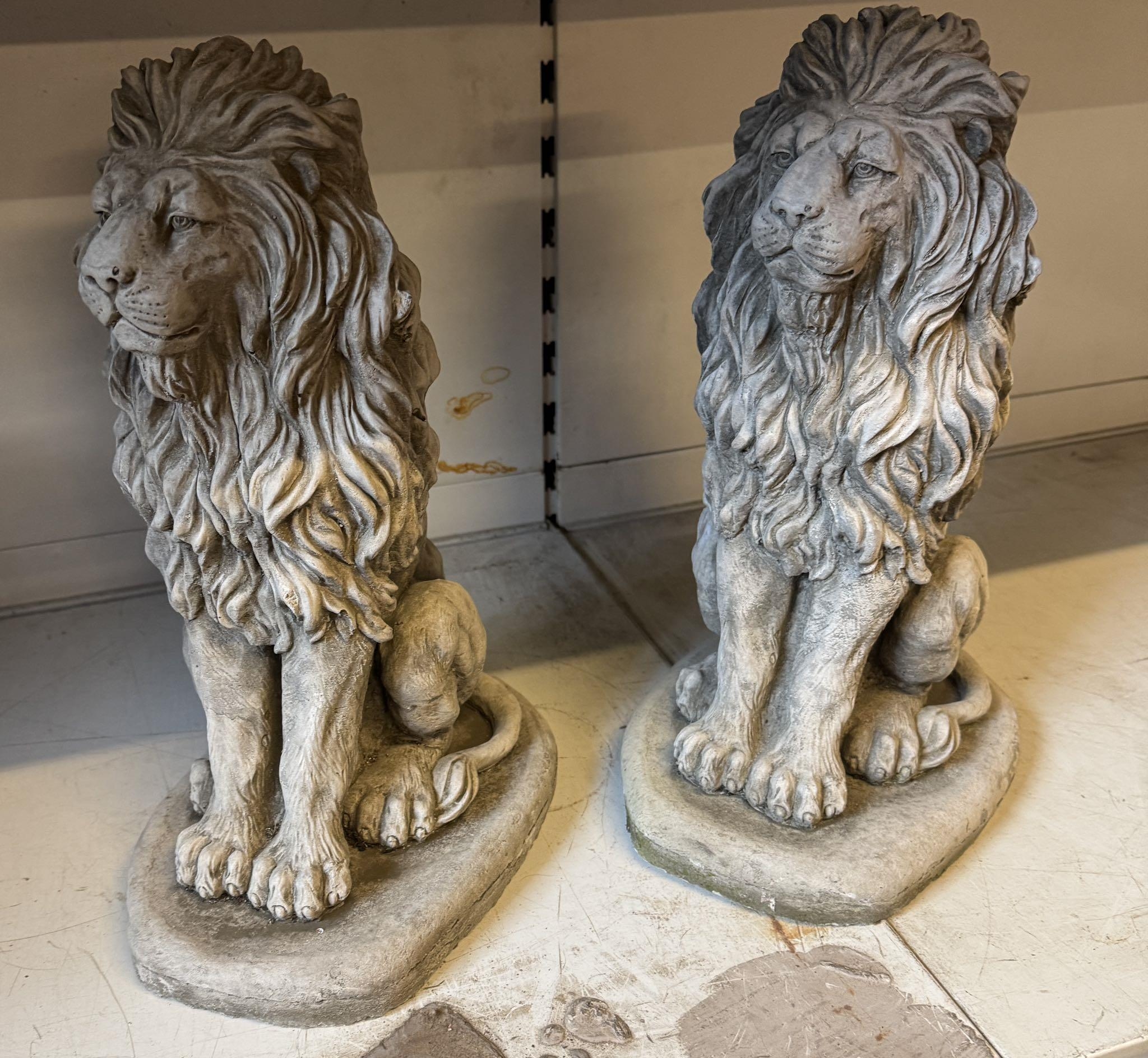 Pair stoneware seated Lions