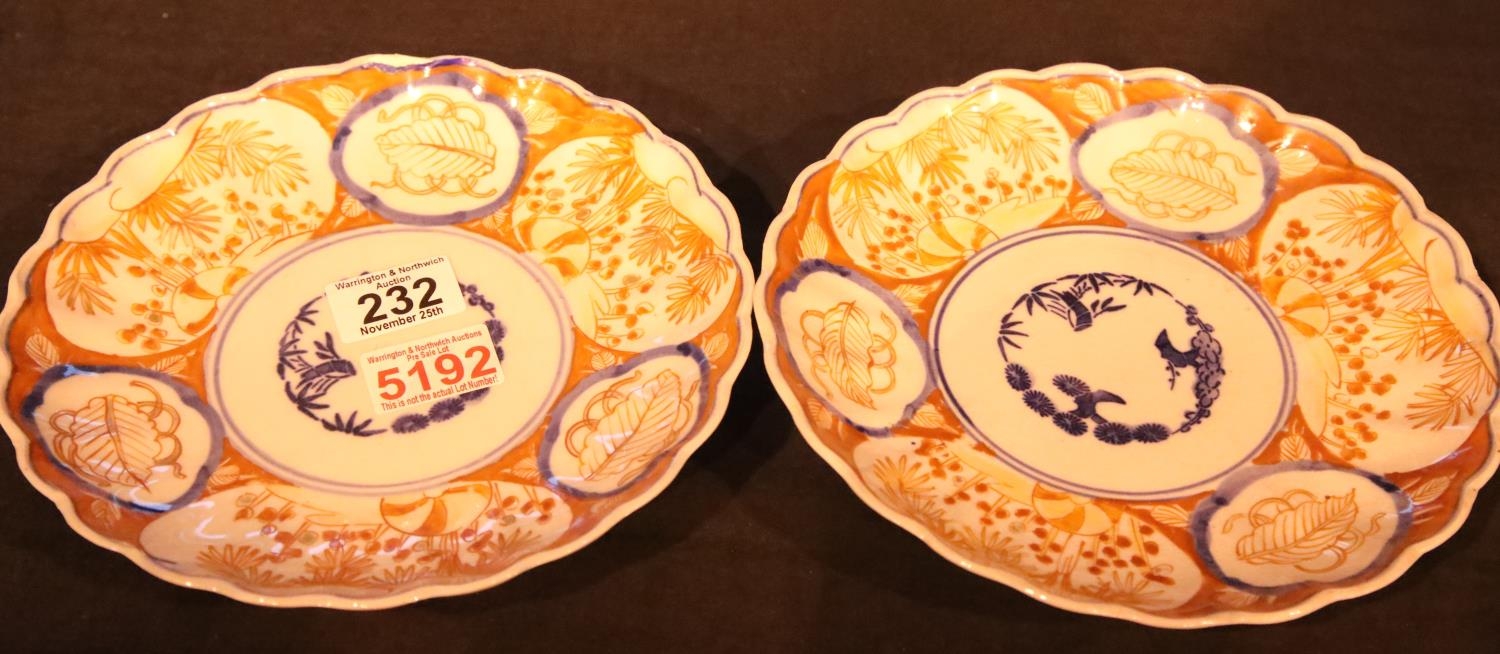Pair of decorative Imari plates. Not available for in-house P&P