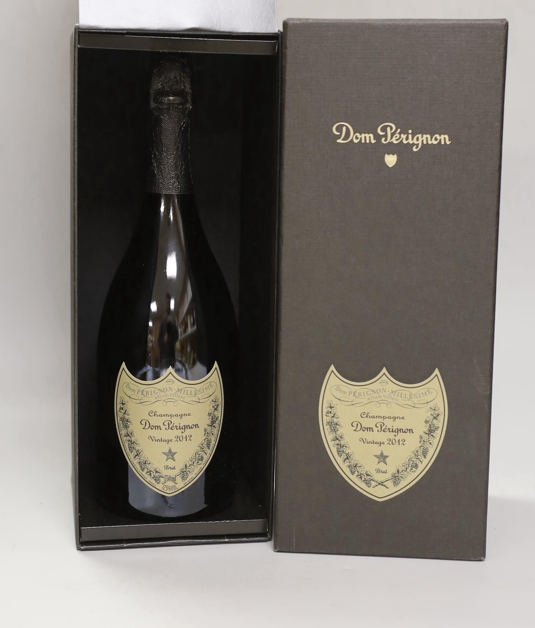 A bottle of Dom Perignon 2012, boxed
