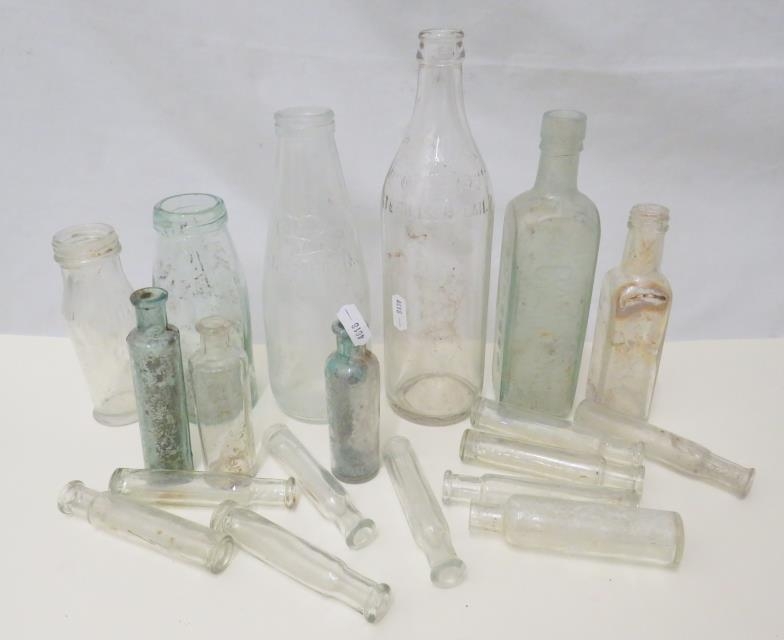 Dug Bottles incl. Coronet milk bottle, Northern Dairies Milk Bottle, Camp coffee etc.