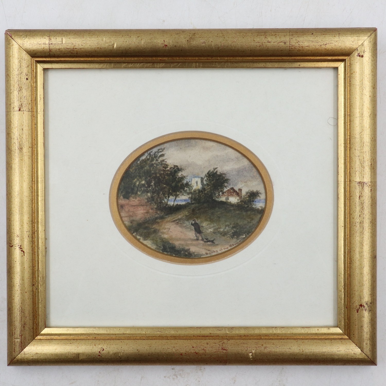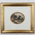 Framed miniature watercolour, J. Pulman 1835-1898, L: 24 cm. UK P&P Group 2 (£24+VAT for the first lot and £5+VAT for subsequent lots)