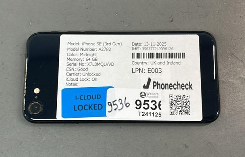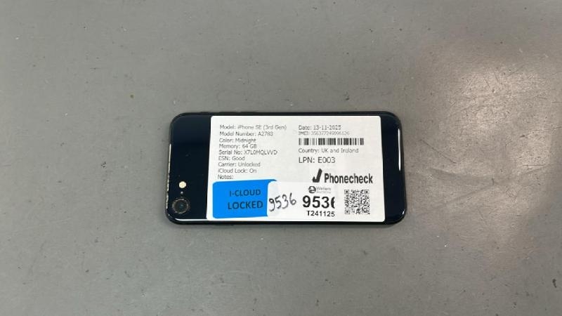 IPHONE SE(3RD GEN) A2783/ MIDNIGHT/64GB/ IMEI-356377249096126 (I-CLOUD LOCKED)