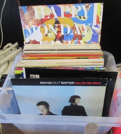 BOX OF LP RECORDS INCLUDING DAVIE BOWIE, HAPPY MONDAYS AND SWING OUT SISTER