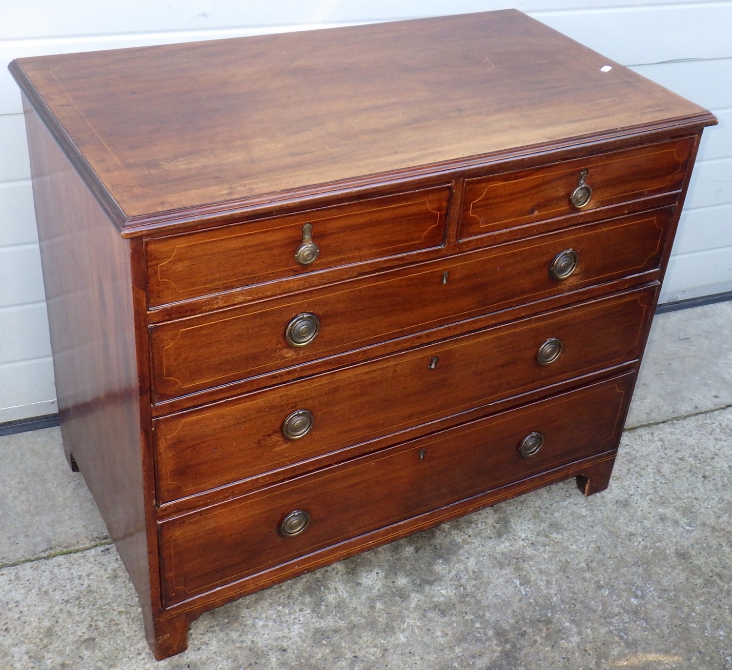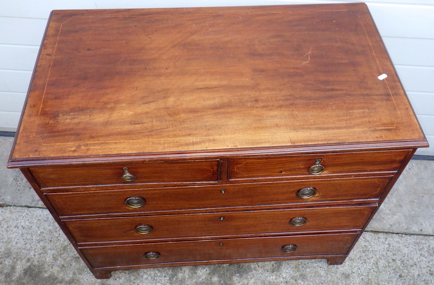 A mahogany chest of drawers, missing one handle, 94cm wide
