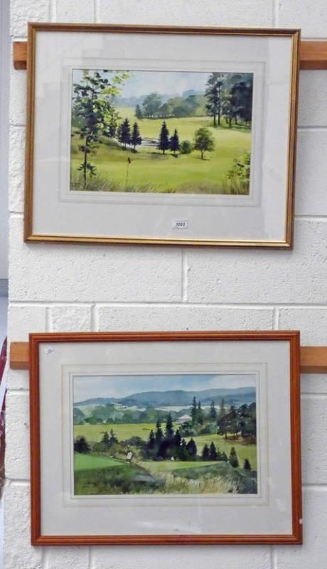 ALISON EWAN, 13TH TEE ABOYNE & 15TH GREEN ABOYNE, BOTH SIGNED, PAIR OF GILT FRAMED WATERCOLOURS, 30 X 45 CM