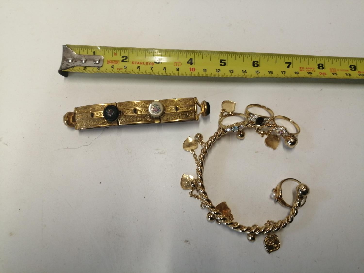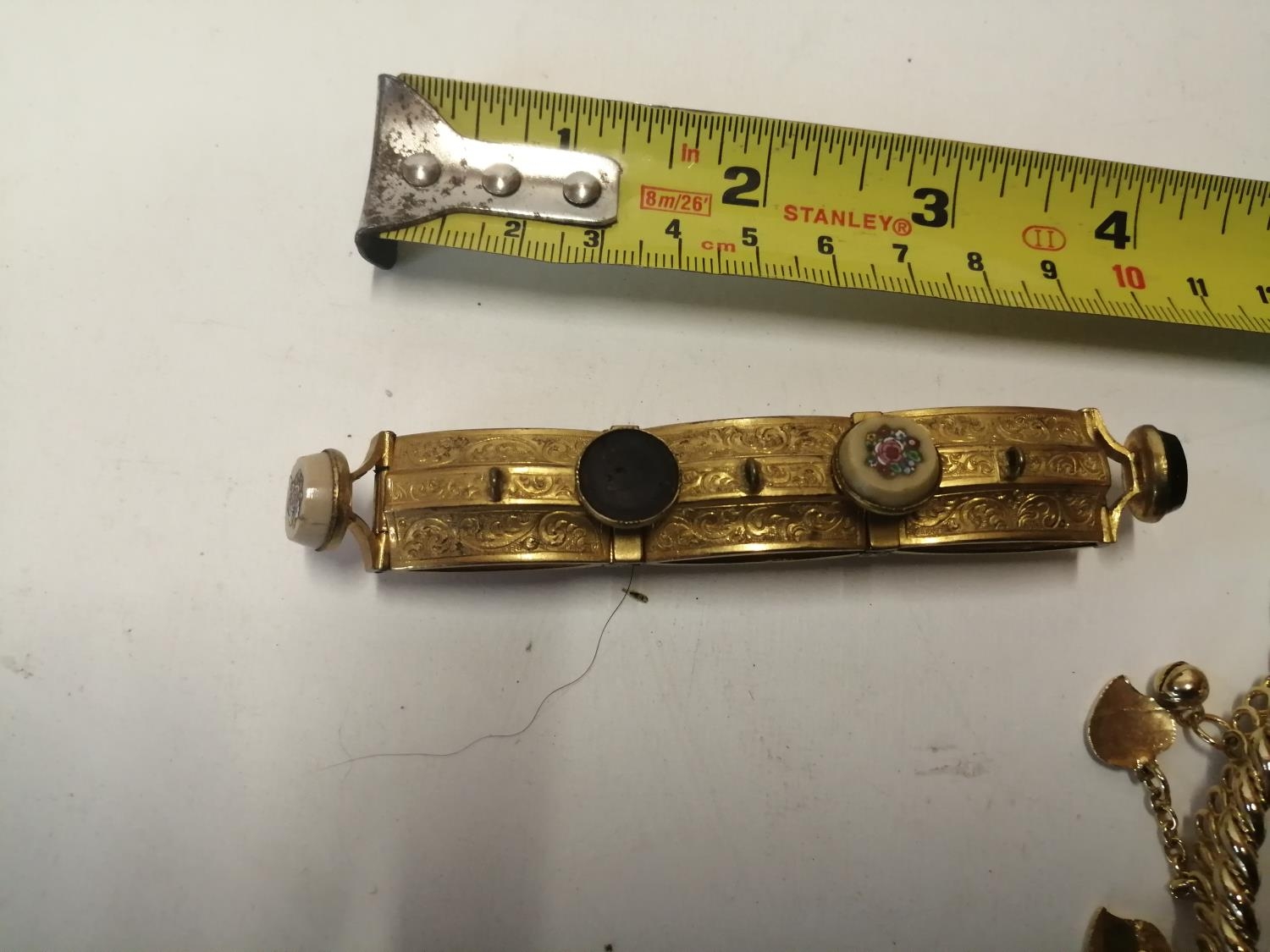 Costume jewellery : vintage gold plated micro mosaic brooch one mosaic missing and other gold plated jewellery