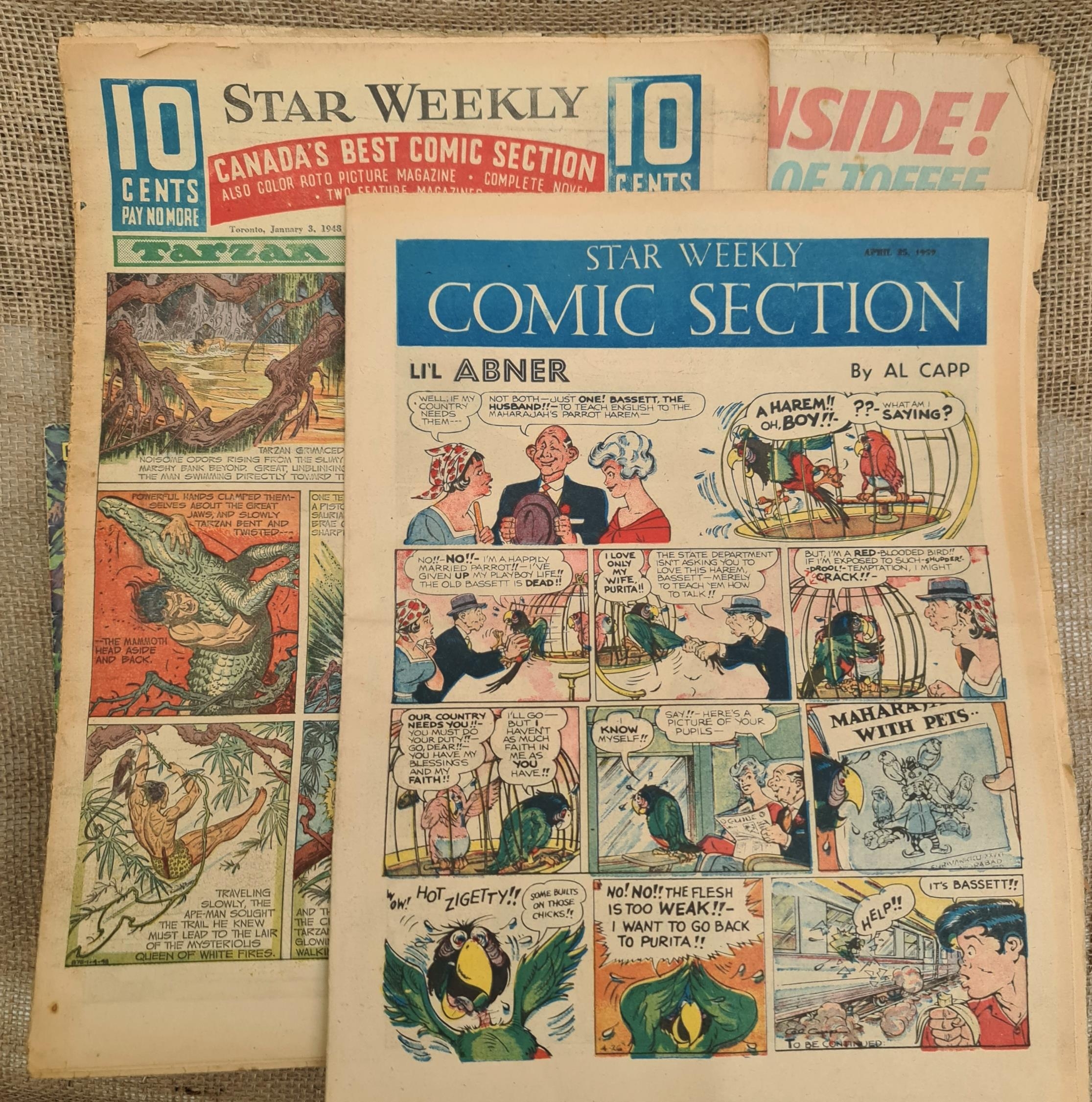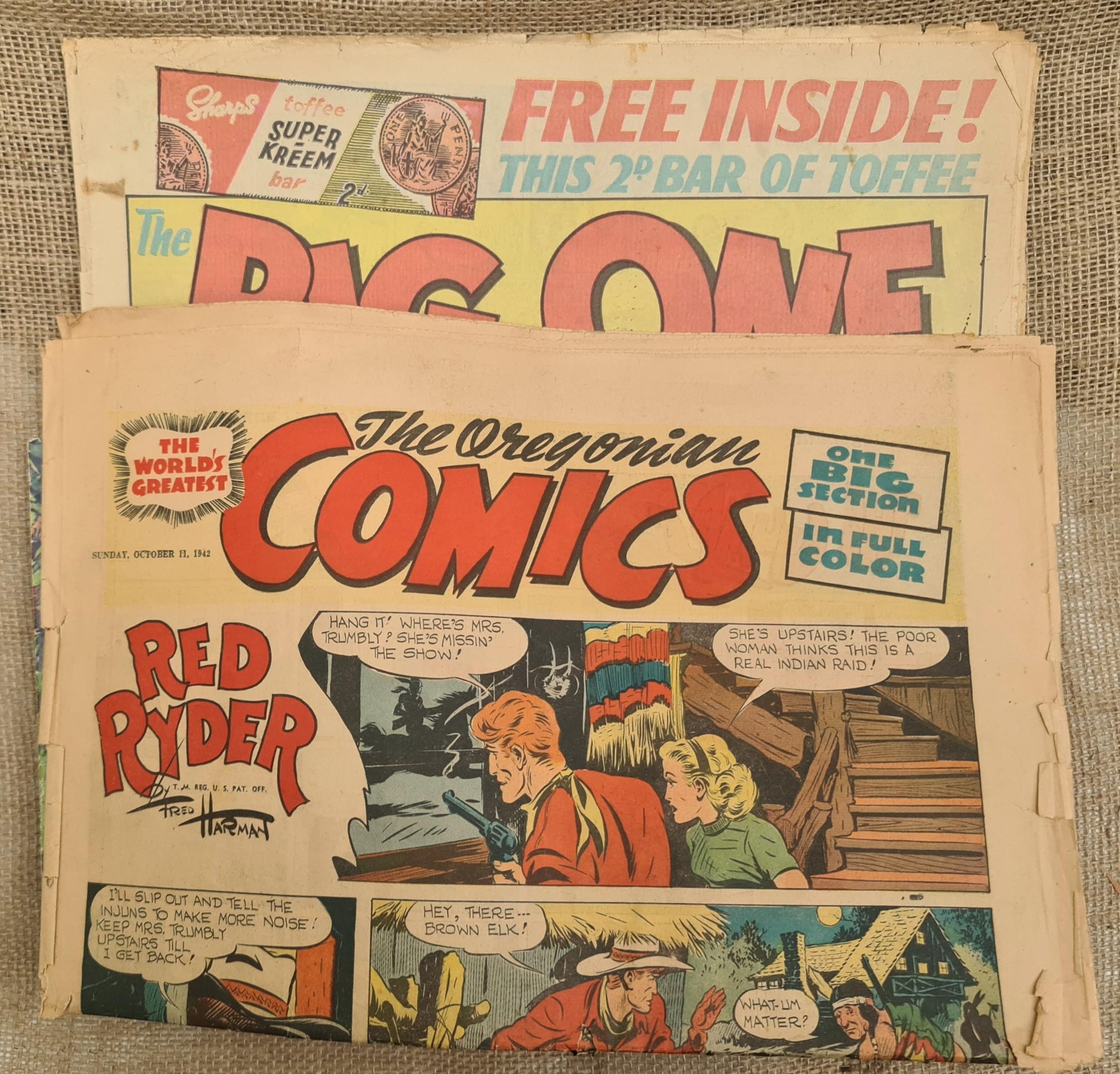 10 x 20th Century Comics or Boys Papers Includes The big One 1964 The Stars and Stripes 1970's Star Weekly 1948 and 1959 Edgar Rice Burroughs 1975 and The Oregonian Comics 1942. Shipping is available. Please ask for a quote before bidding. Where possible we combine shipping costs. Remember, if you are the highest bidder above reserve on this Lot you have bought the item and are legally responsible for the item. Viewing is recommended in either person or via video link. Contact us to arrange. #F09