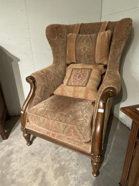 Victorian style mahogany framed upholstered lounge chair (88w cm)