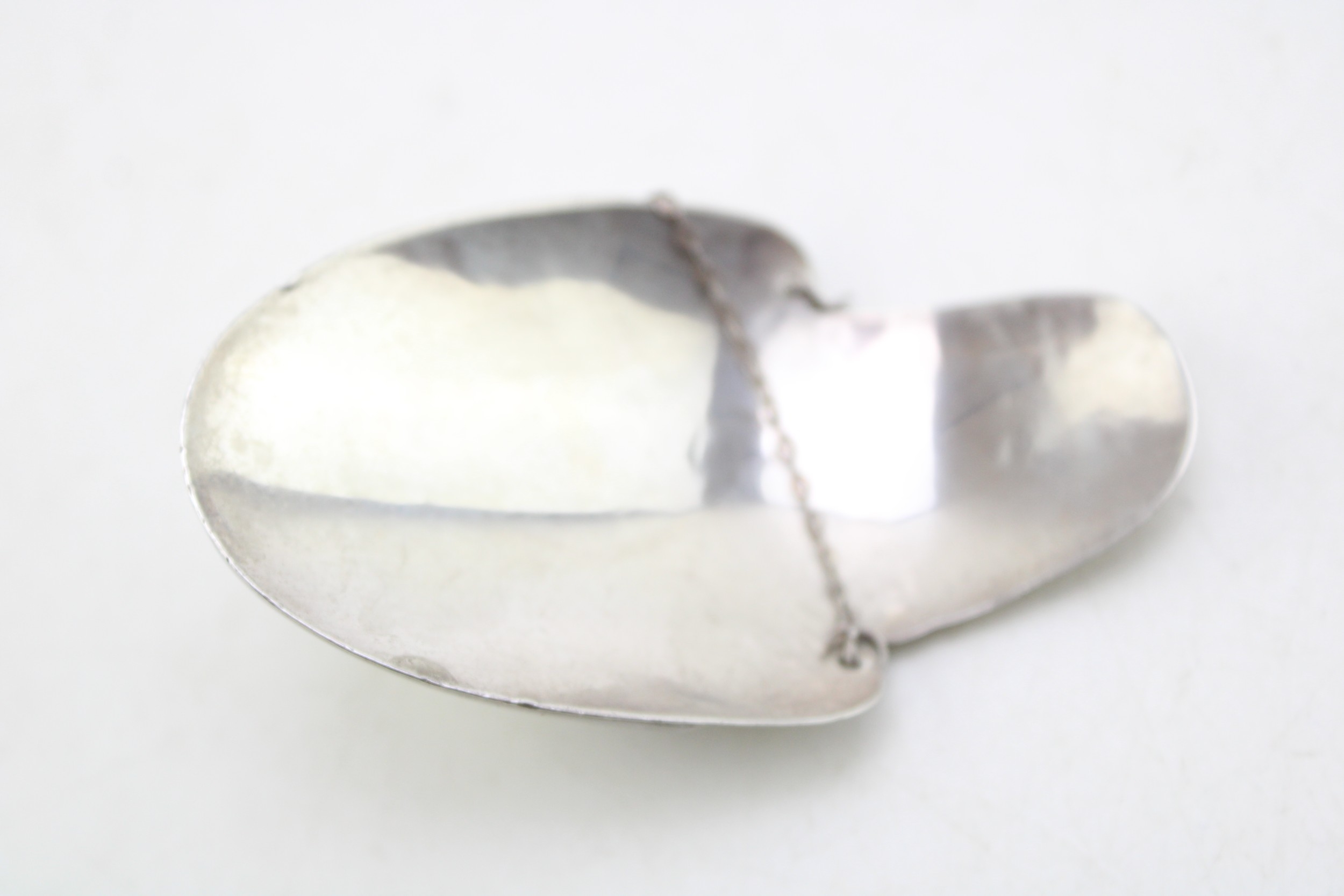 A silver wine bottle drip catcher, likely for claret, of simple curved form with fine chain, Hammond, Turner & Sons, Birmingham 1917, 0.56toz, 17.4g.