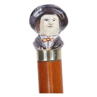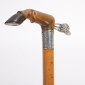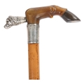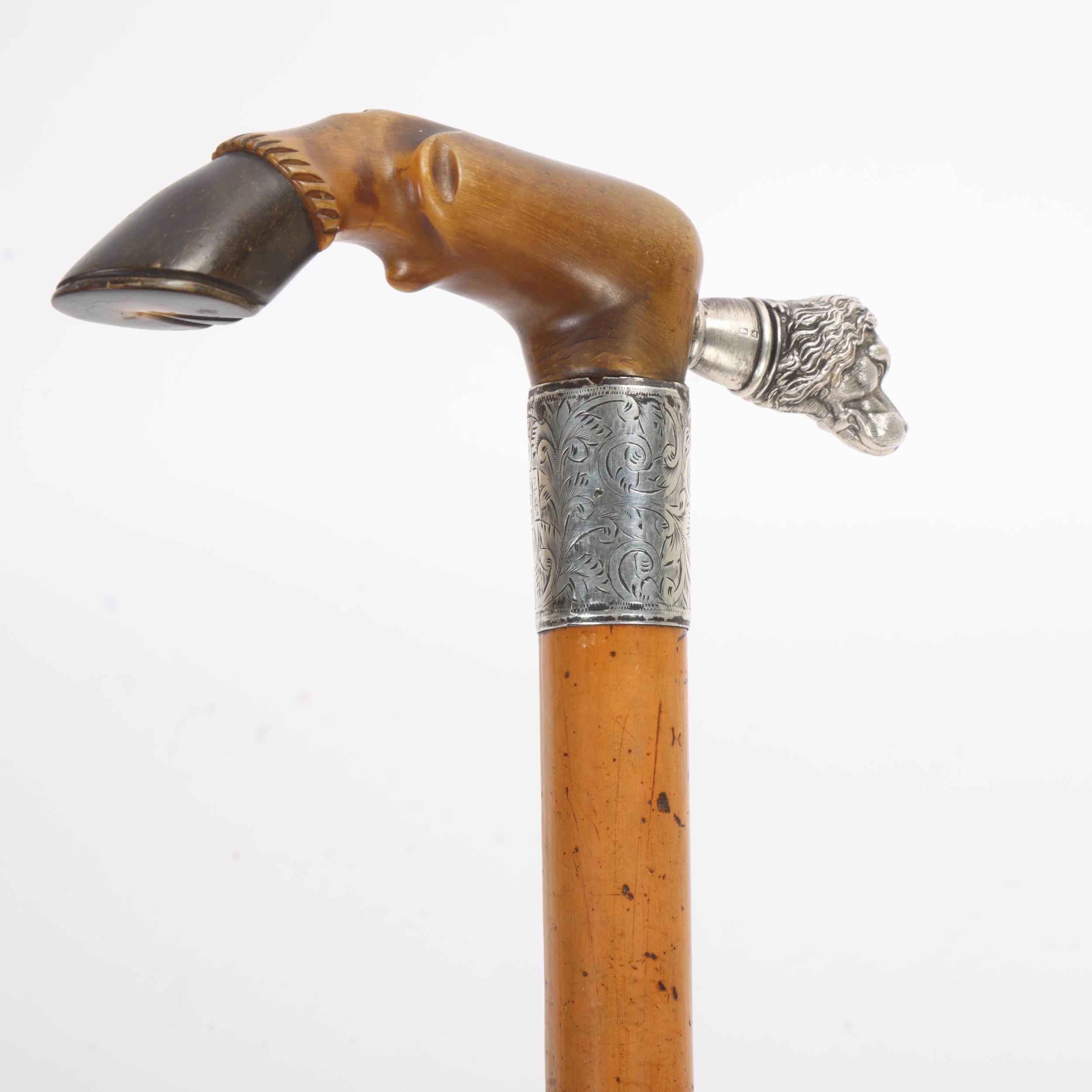 An Edwardian silver and horn-handled horse hoof and hound design walking cane, with Malacca shaft, hallmarks Birmingham 1903