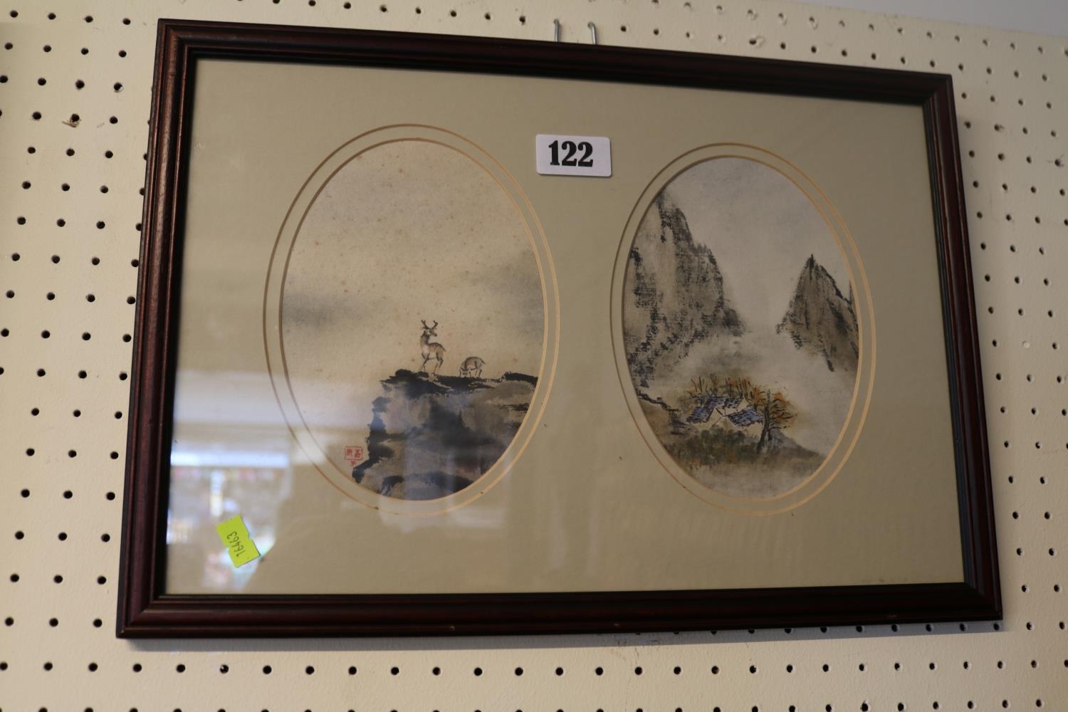 Framed Japanese Watercolour depicting Rocky Outcrops